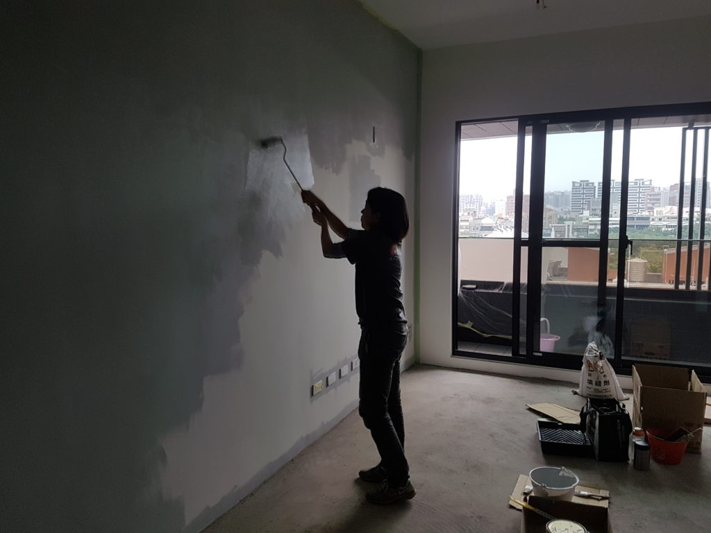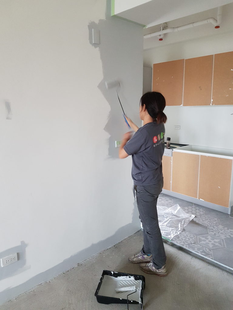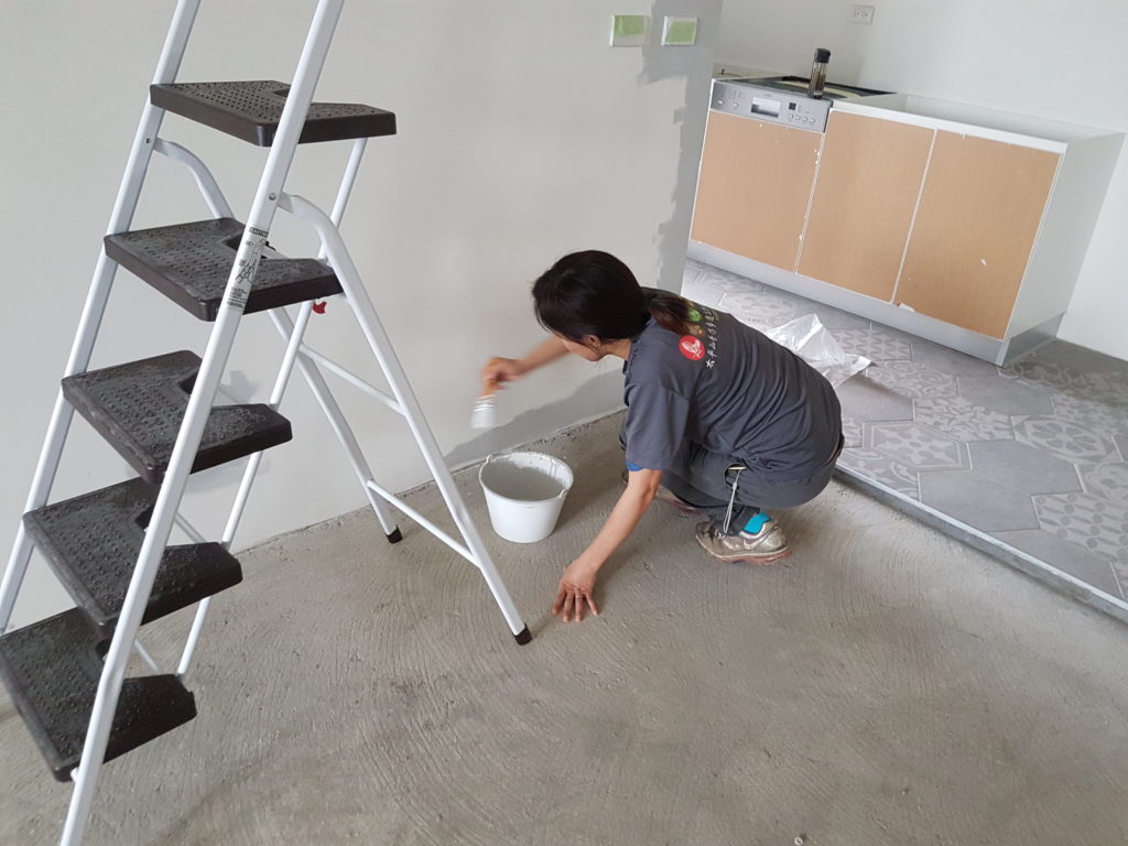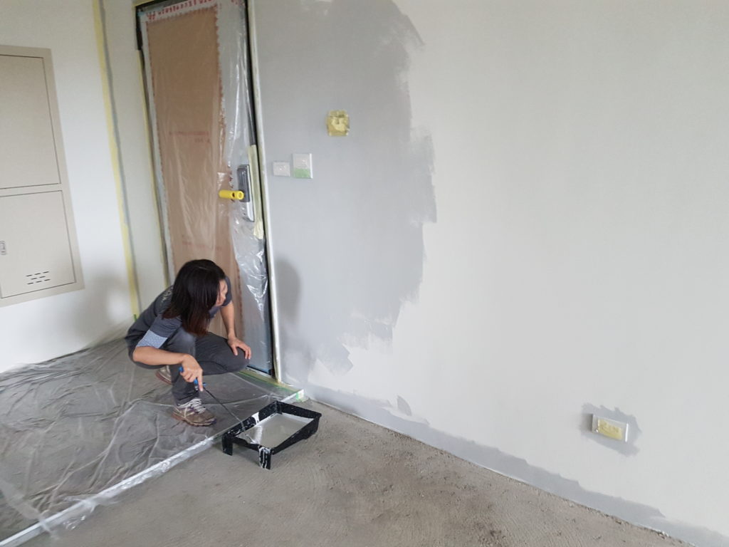 Filling the gaps was not too difficult but it took some time and effort to do it well. Once the kitchen floor was done we could paint the walls that we wanted in another color than the standard white. I’ve painted some walls before so I sort of knew what I was doing, and Yini learned quickly.