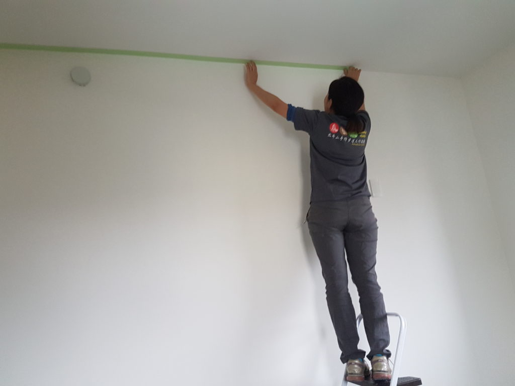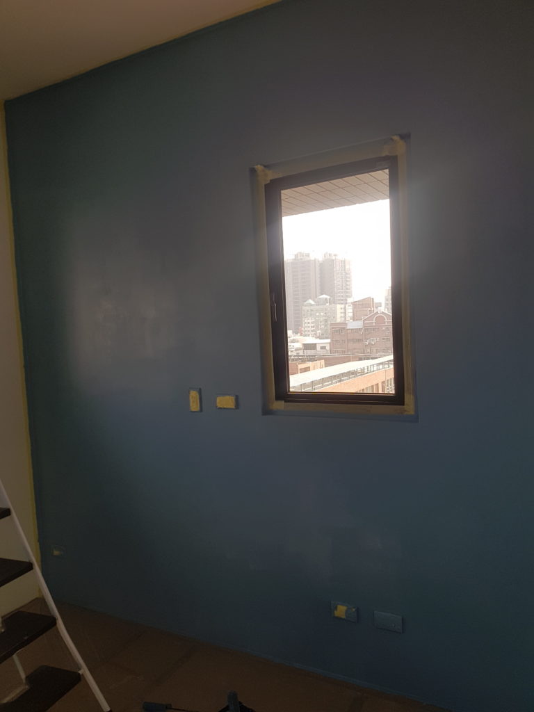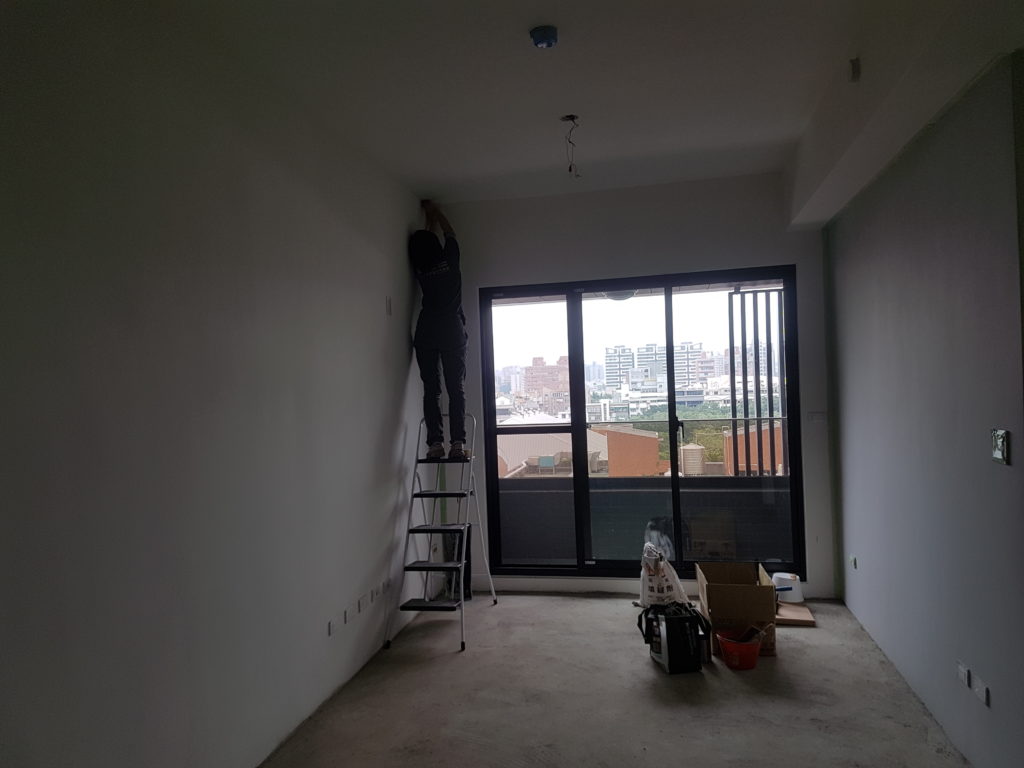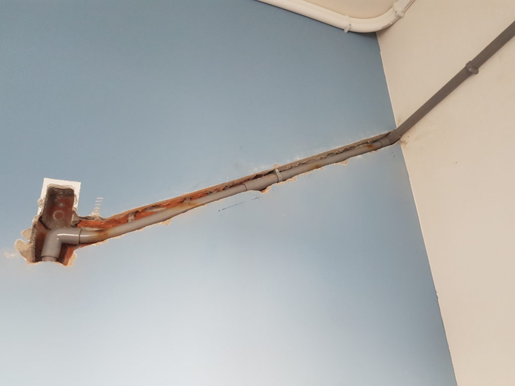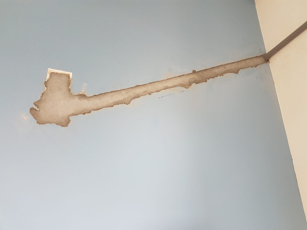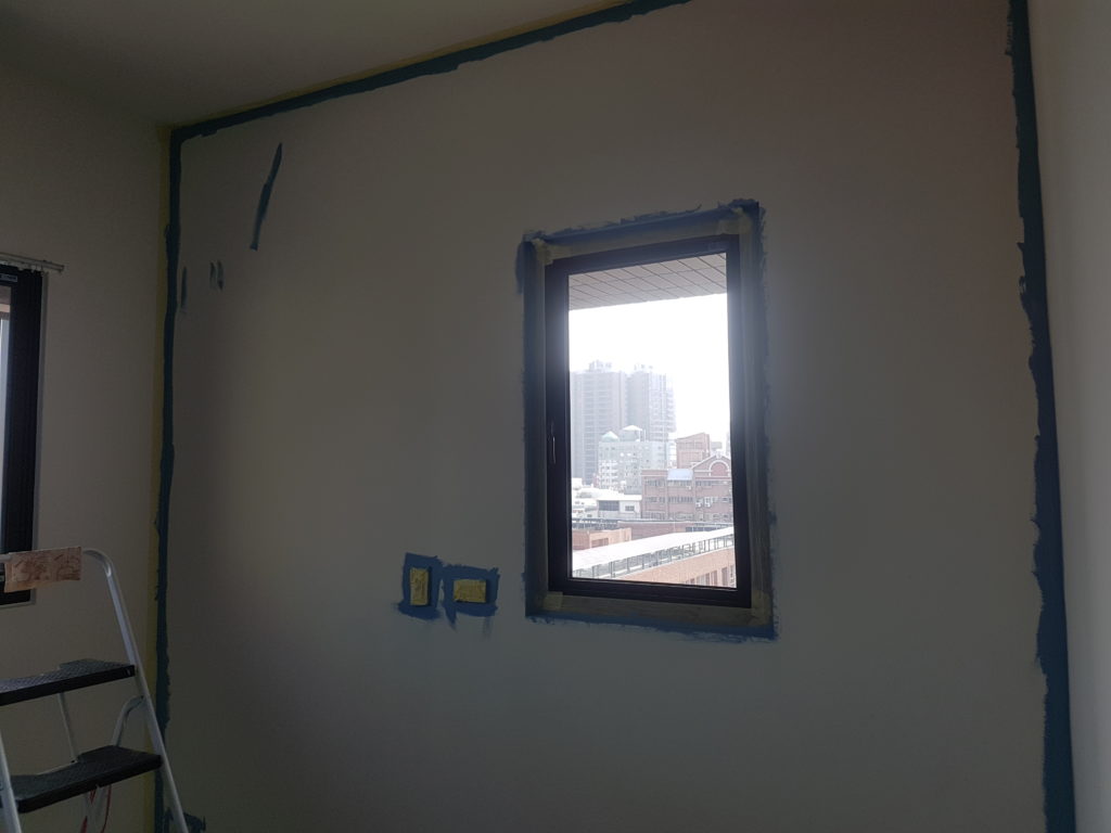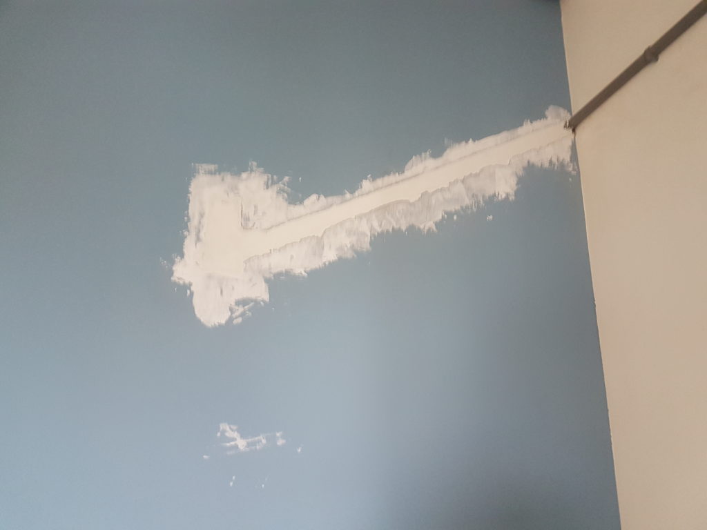 After the AC was in place all the major work was done, but we still had lots of small things to do like installing the lights and filling in and painting over all the little marks made during floor and AC installation. I did most of this stuff on my own while Yini was at work so I don’t have a lot of pictures. There is one thing I can show you though. The guys installing the AC cut a channel in the bedroom wall to hide the condensation drainage pipe. Of course they filled it in with cement afterwards but it wasn’t completely flush with the rest of the wall so I had to cover it with putty then sand it down to make it flush.