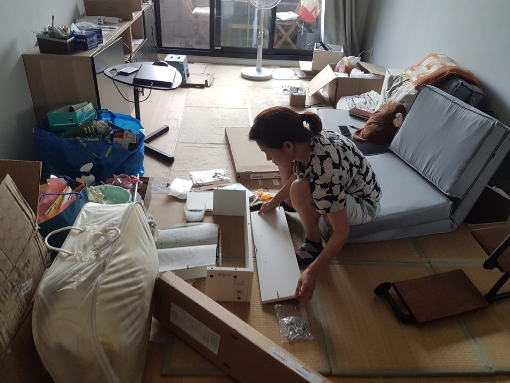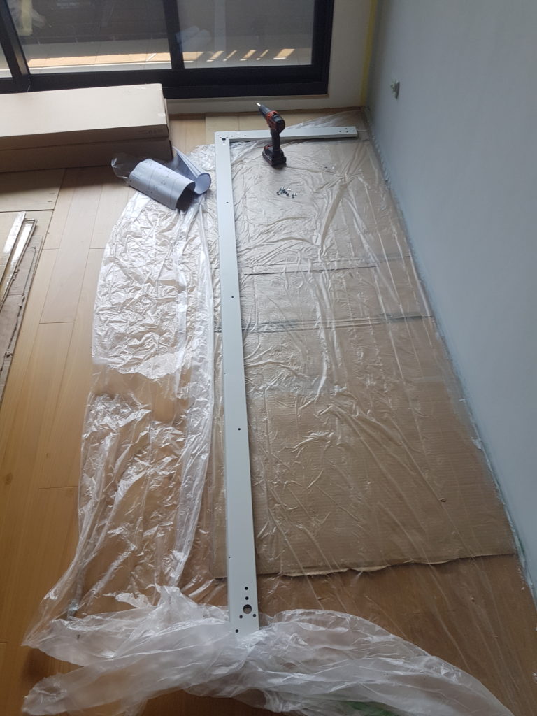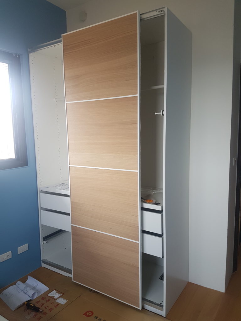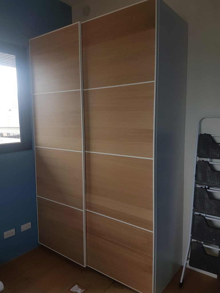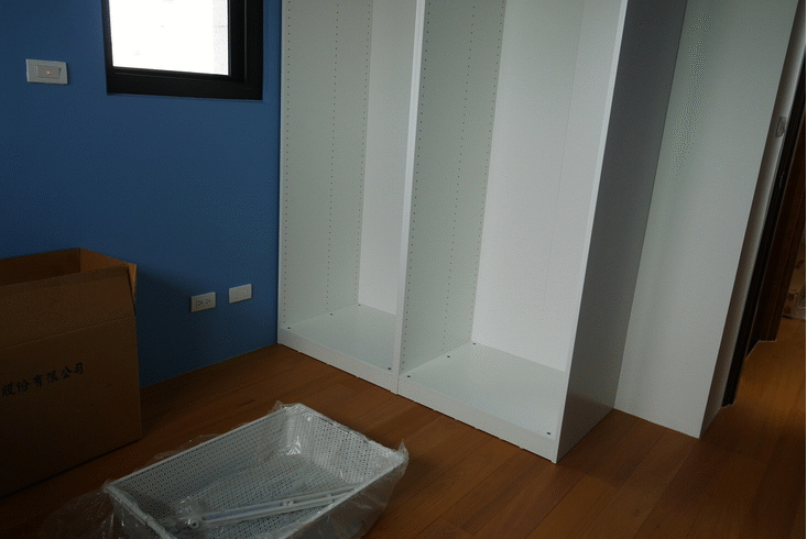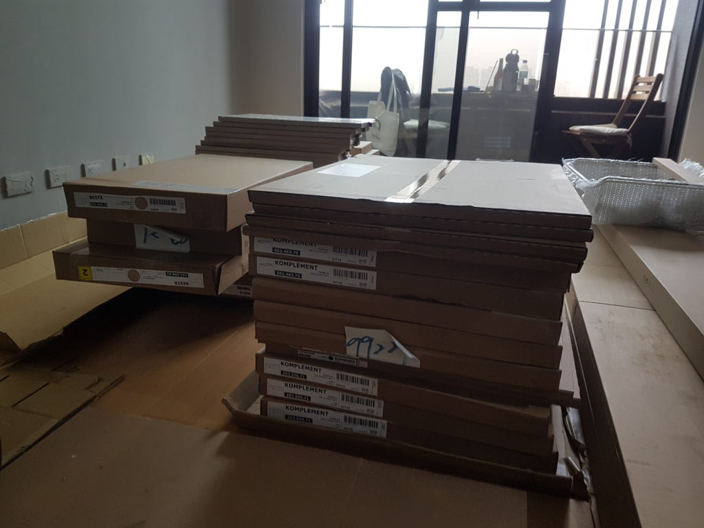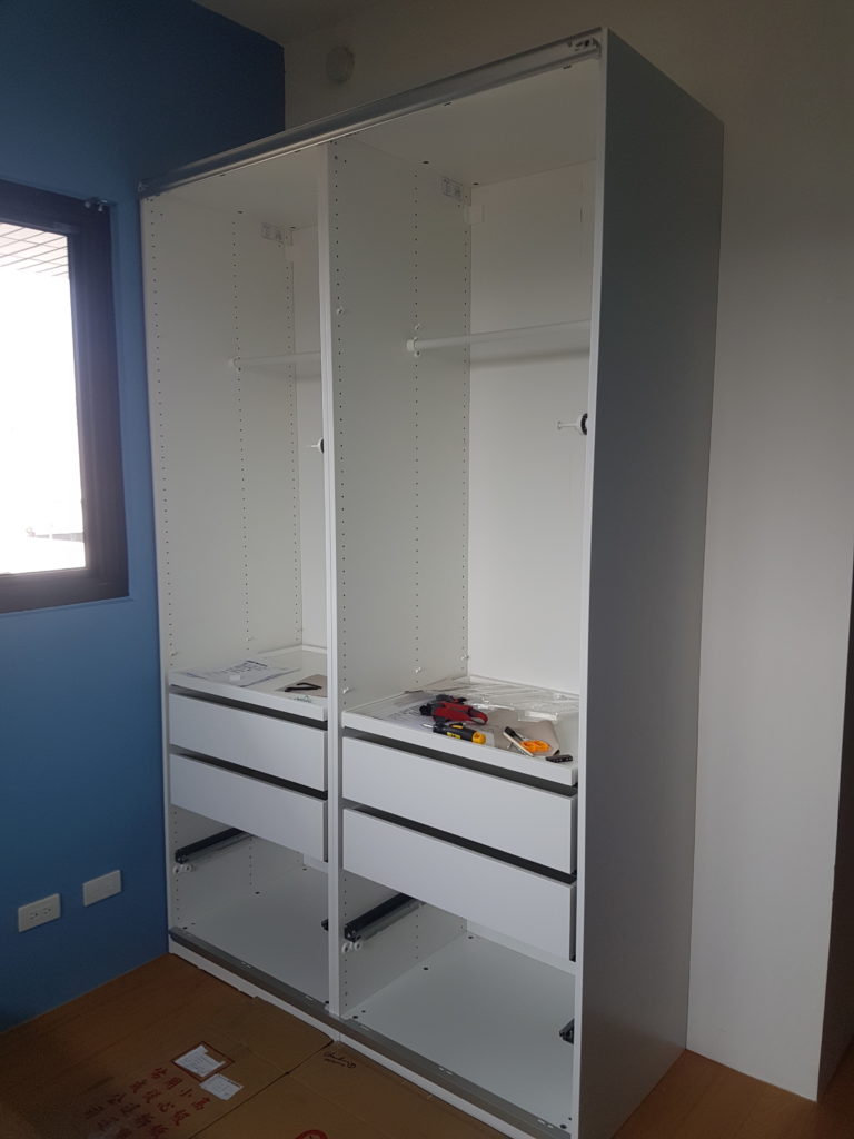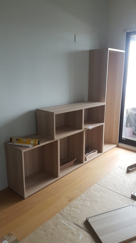 Once we had the custom furniture it was time for the part I was most looking forward to: assembling IKEA furniture, starting with the wardrobe. I built the frames while Yini was busy assembling the drawers.