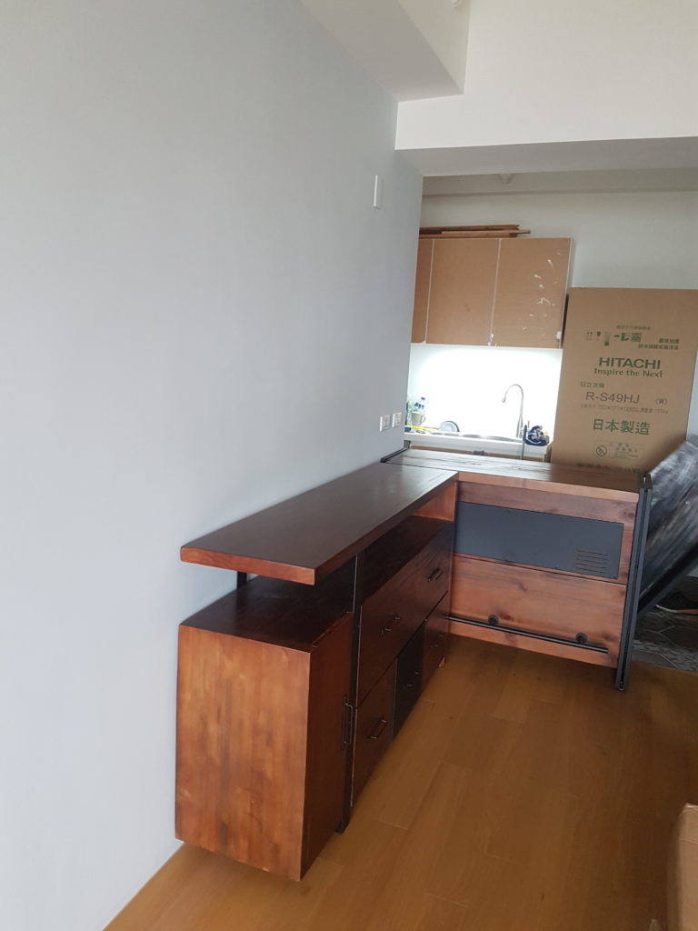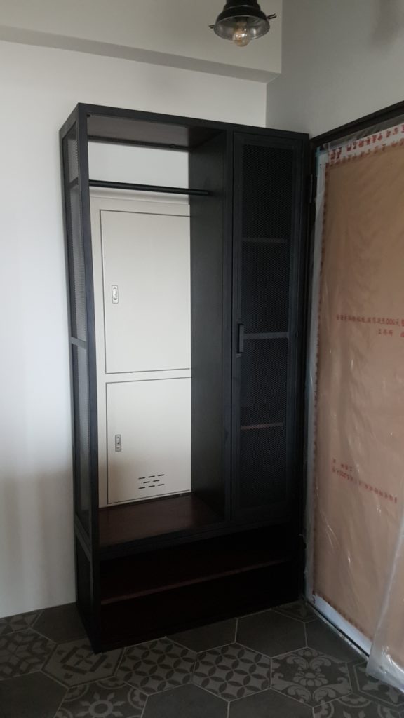 Once all those small tasks were done it was time for furniture. The apartment isn’t very big so we wanted to utilize the space as well as possible. The trickiest area was the corner by the entrance door (behind the door when it’s open). The problem was that the electrical cabinet with all the circuit breakers and such is right there and we need to leave that accessible for maintenance purposes. We simply couldn’t find any commercially available furniture that would fit into that space; they would either be so wide that they blocked the cabinet, or so deep that the entrance door couldn’t be opened fully.