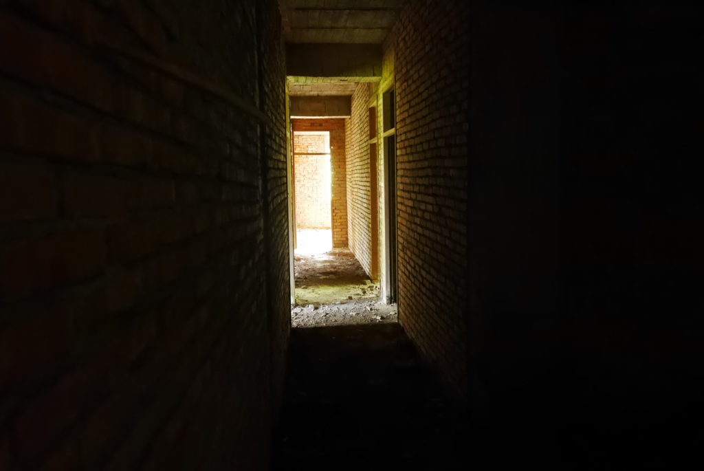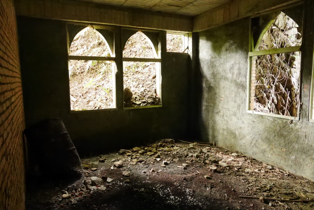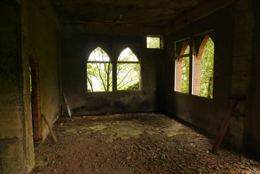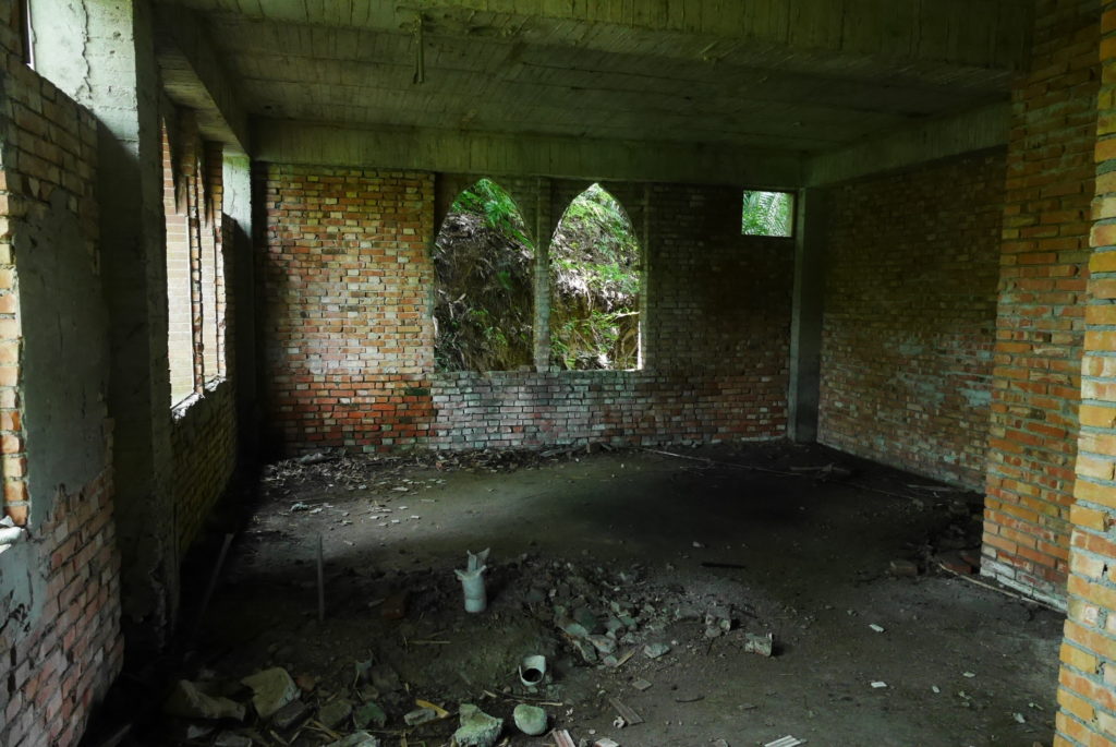 I entered the building and started exploring. I quickly realized that this building was never finished, a lot of the walls were just unpainted bricks and the floors raw concrete, and not a single stick of furniture inside. My guess is that the park became abandoned while construction was still going on. The place was also remarkably light and airy with big open windows letting in the sun light. This made it far less creepy than the hotel we explored last time. The only thing that was scary was the bats living inside. Most of the rooms inside were more or less the same, so my guess is that this was also meant to be a hotel or perhaps dormitory.