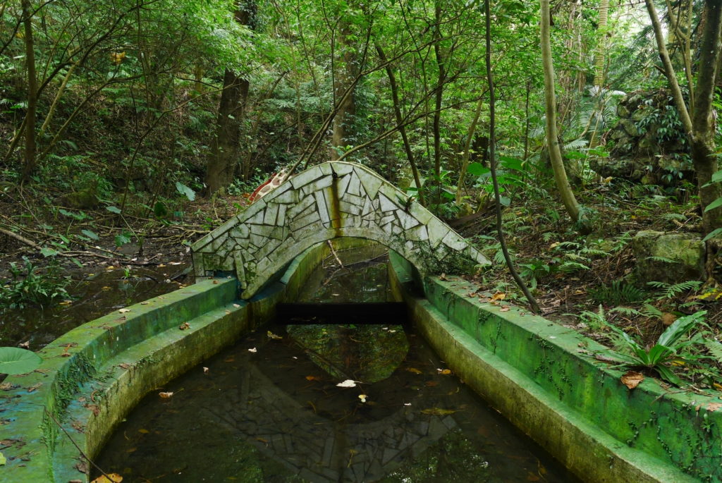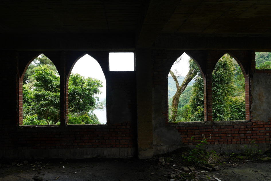 Once I had explored this unfinished hotel, I checked out the surroundings a bit. Just around the corner was an old suspension bridge. The bridge itself is gone but the pillars remain.
