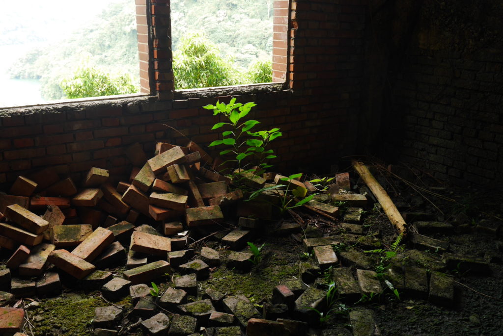 On one of the top floors the ground was covered in damp earth with lots of little plants growing in it.