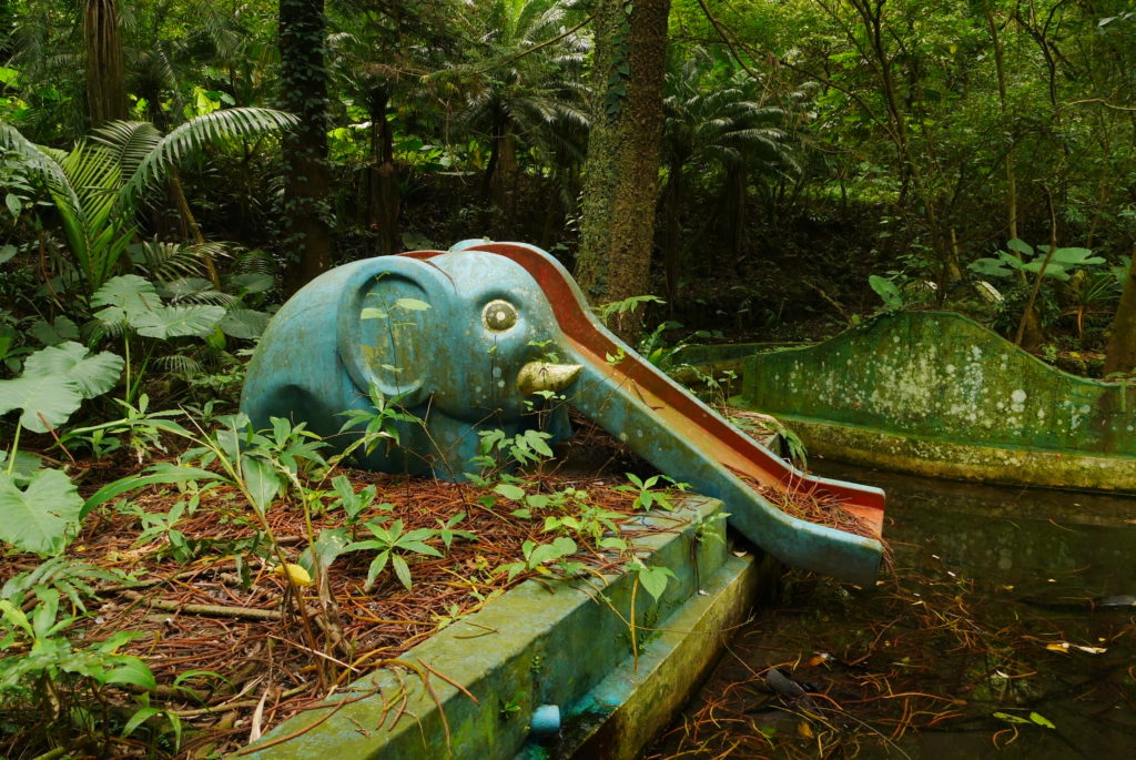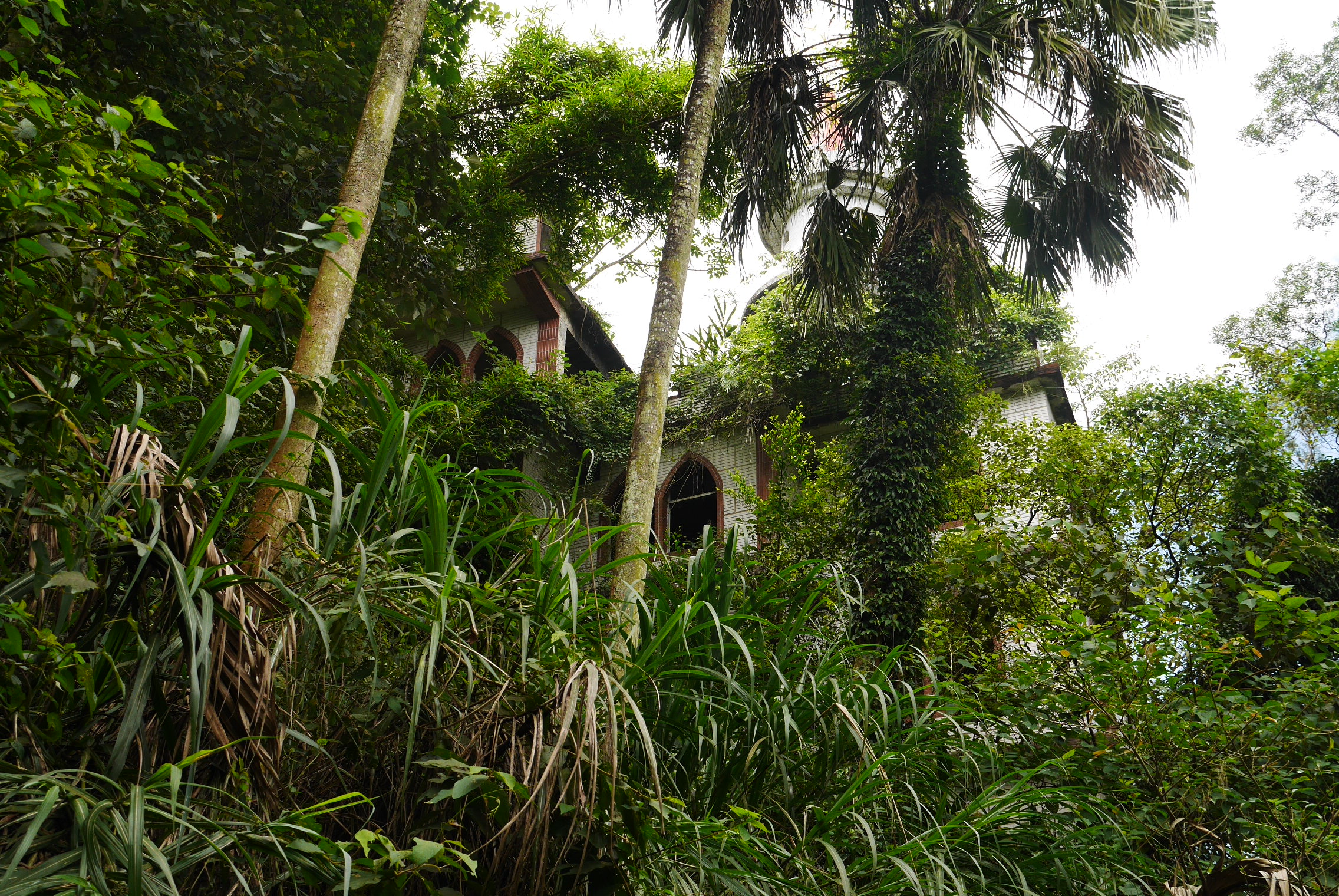 Last year we explored an old hotel in the abandoned amusement park temple (which I later found out is called Buddha World). When we went there we thought the hotel was the last unexplored building, but we spotted another castle-like structure out in the jungle. That time we weren’t able to go explore it so I had to make do with a couple of pictures taken from a distance. This weekend we’ve finally taken the time to come back so I could take a closer look.