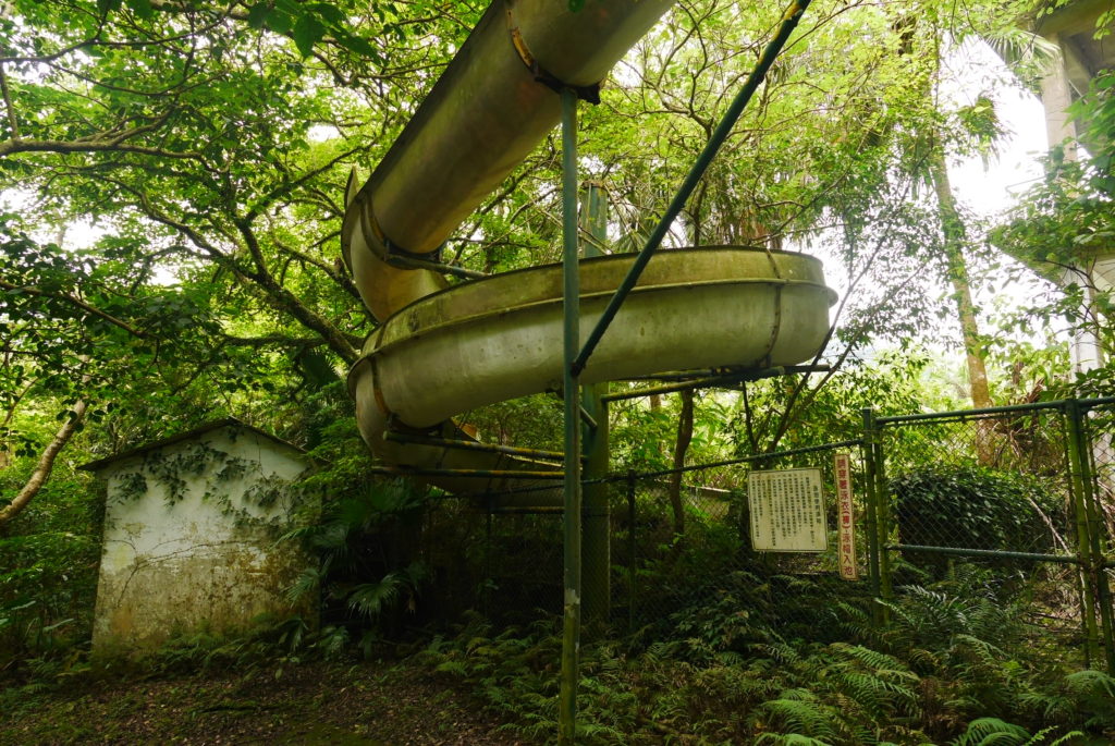 Further down the road I had expected to see the supports for the water slide that we saw last time. They were indeed there, what I hadn’t expected was the little children’s pool just next to it. I always think that colorful children’s playthings that become abandoned are extra fascinating, so that was a nice surprise.