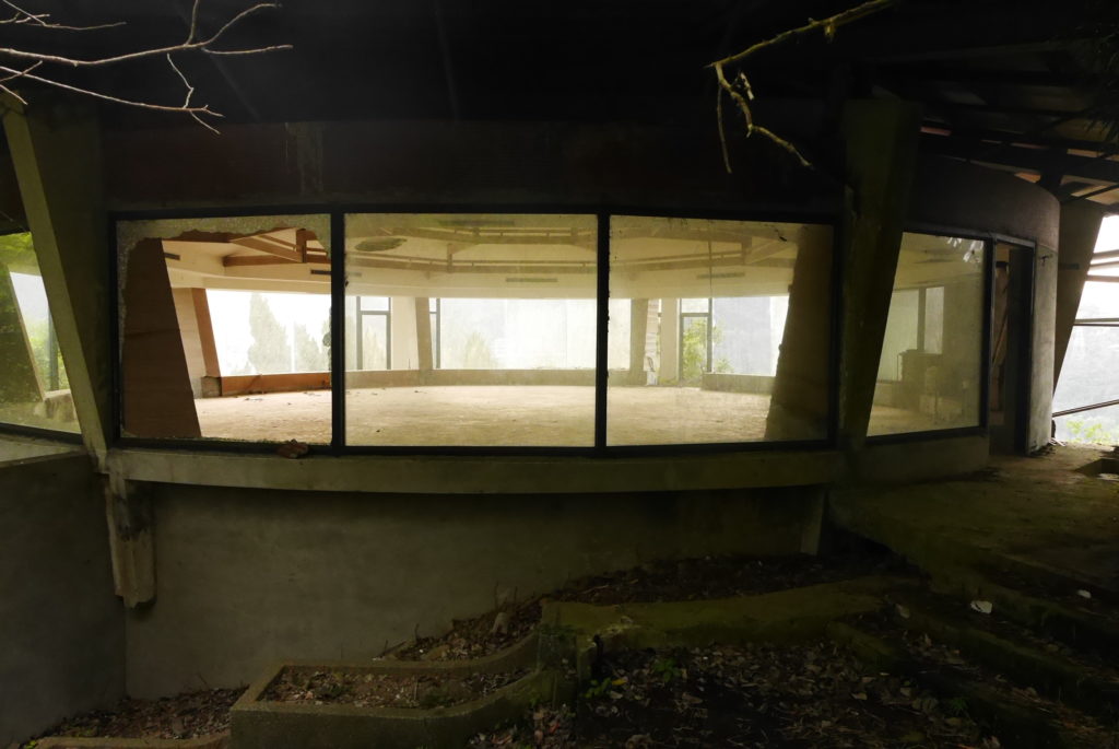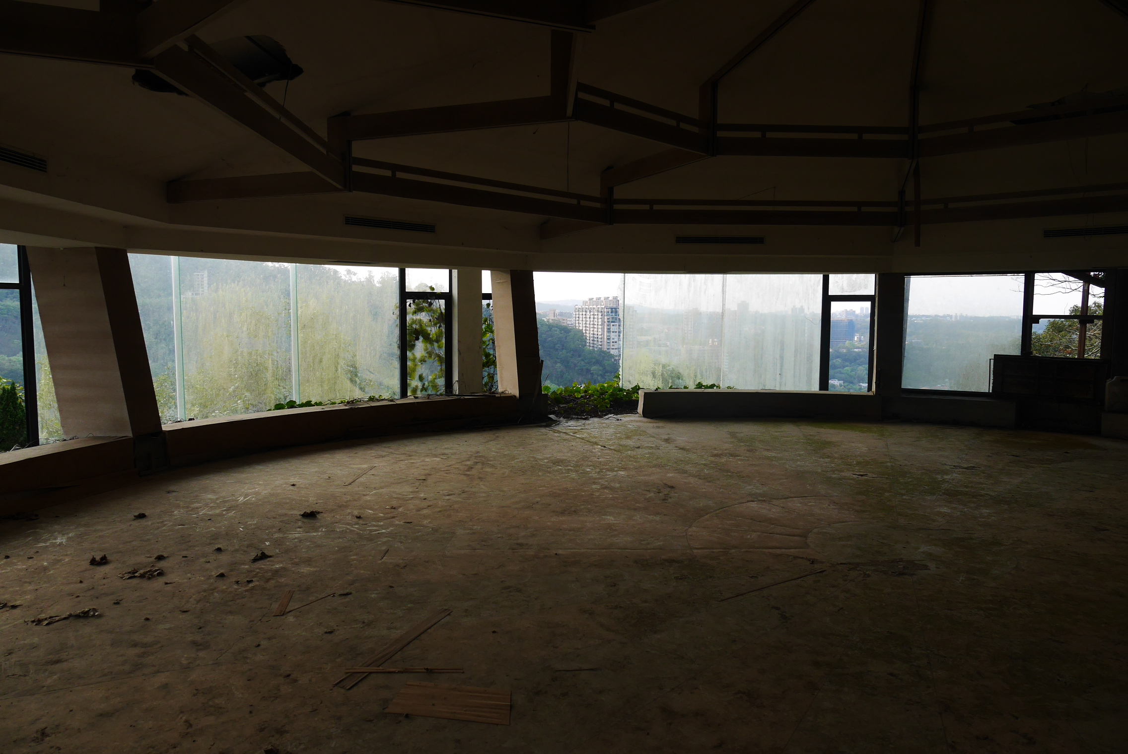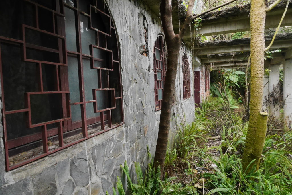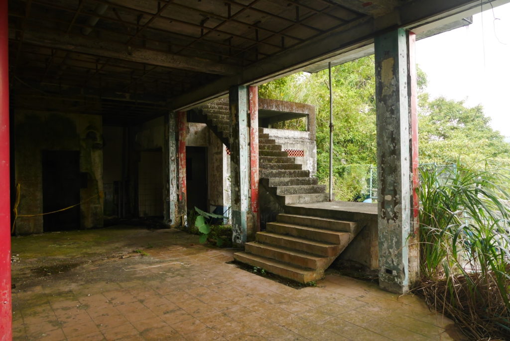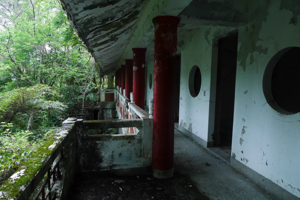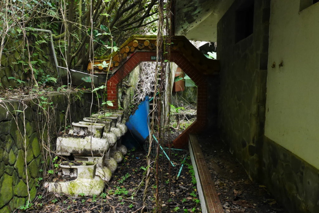 At this point I had explored every part of the actual hotel area. However, there is one part left that’s not really part of the hotel; right behind the Chiang Kai Shek statue you can see some big windows, but there’s no way to reach those rooms from within the hotel area. To get there you have to go back to the little parking lot in front of the main building then take some small stairs down. Unfortunately these stairs are behind a construction fence and with the hikers passing by on their way to the trail, this might be hard to get to. I went for a ride in the nearby area looking at some other stuff then came back later in the afternoon. By that point all the hikers had left and I could easily hop the fence without being seen.