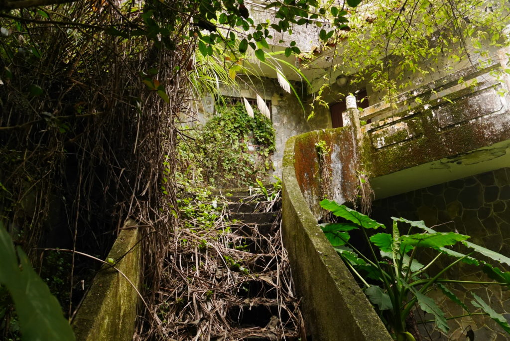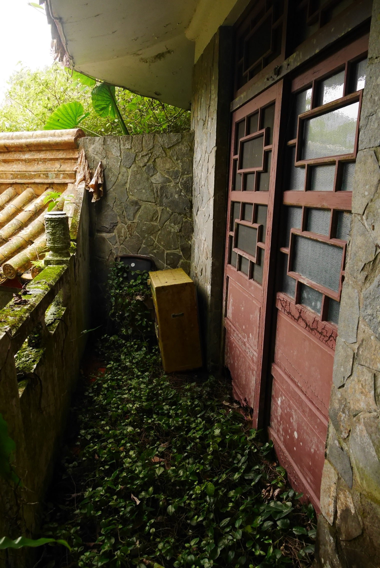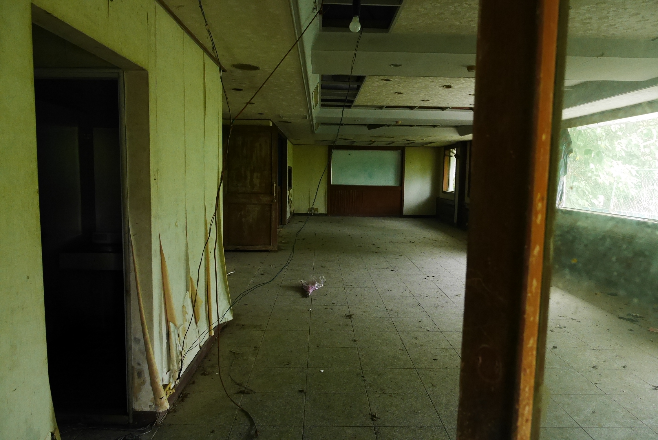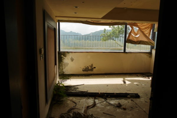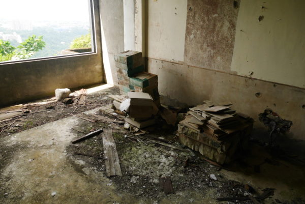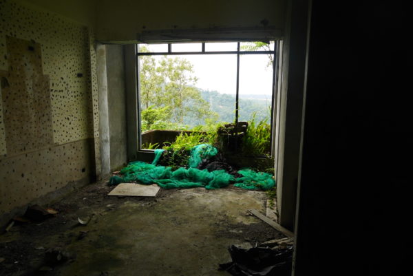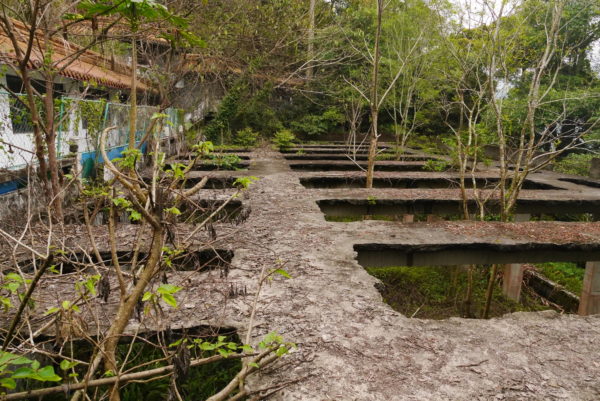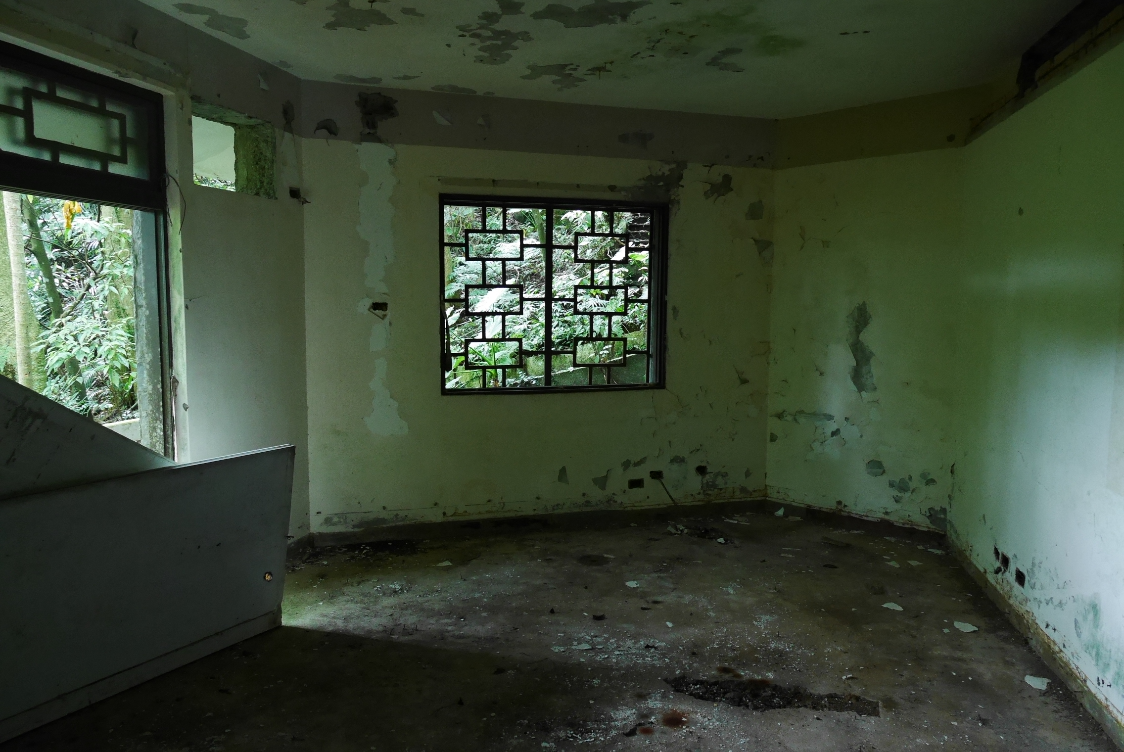 At this point I had explored every part of the actual hotel area. However, there is one part left that’s not really part of the hotel; right behind the Chiang Kai Shek statue you can see some big windows, but there’s no way to reach those rooms from within the hotel area. To get there you have to go back to the little parking lot in front of the main building then take some small stairs down. Unfortunately these stairs are behind a construction fence and with the hikers passing by on their way to the trail, this might be hard to get to. I went for a ride in the nearby area looking at some other stuff then came back later in the afternoon. By that point all the hikers had left and I could easily hop the fence without being seen.