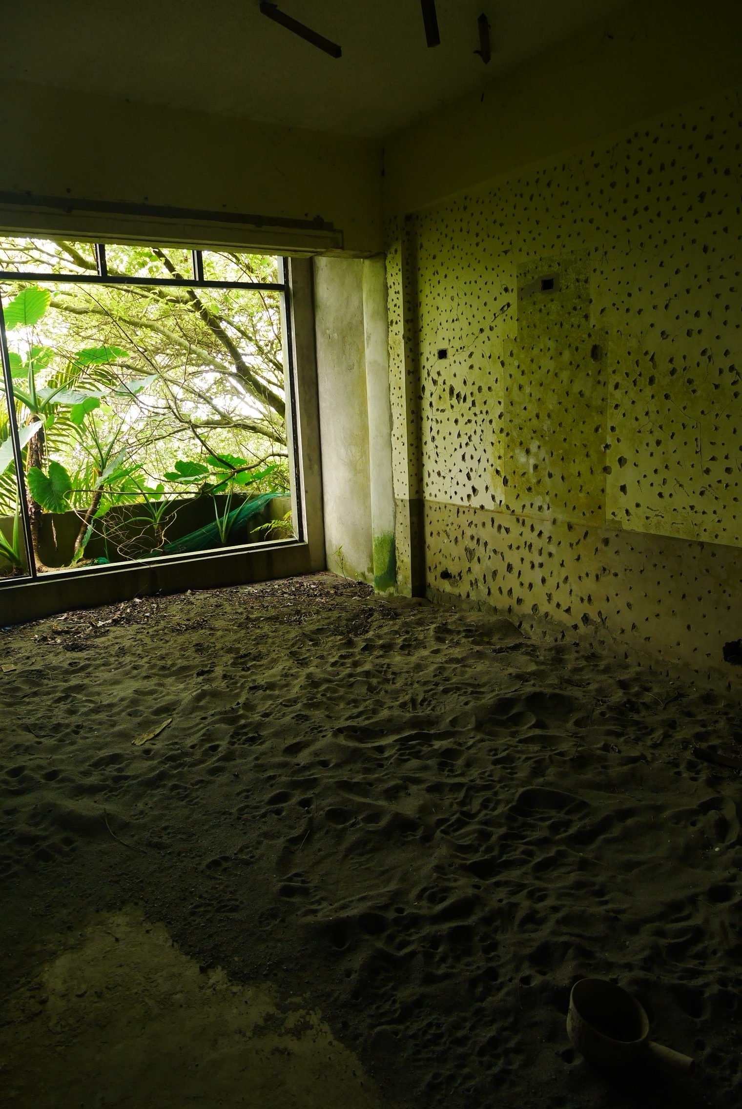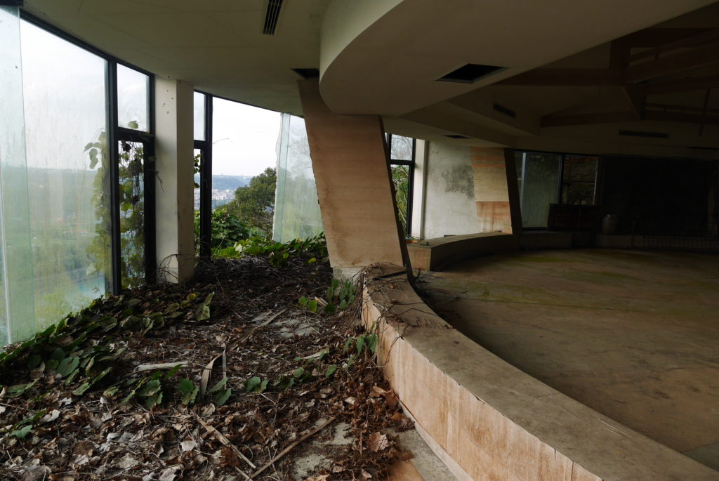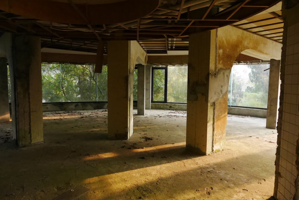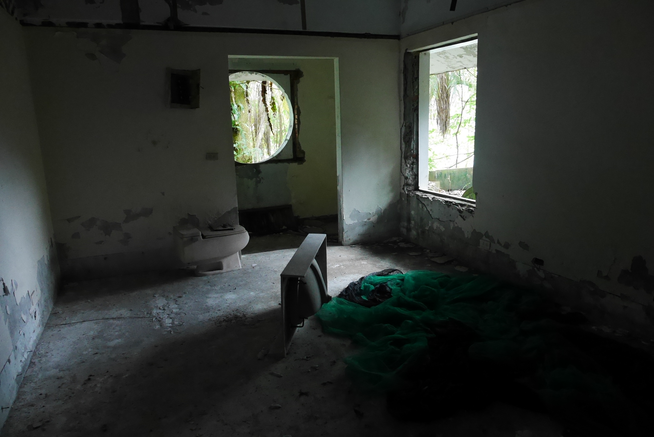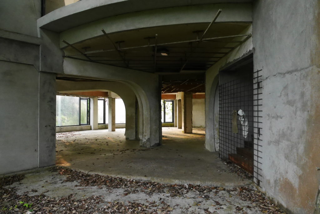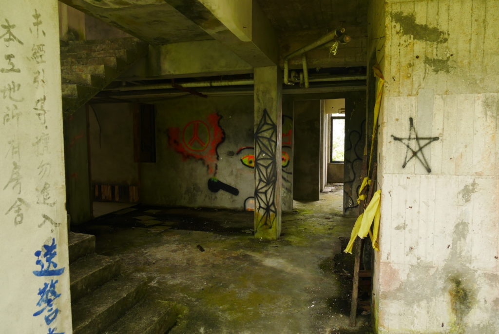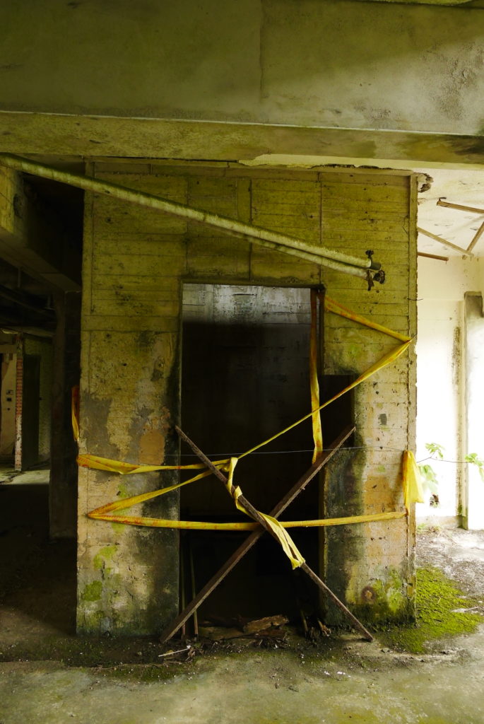 At this point I had explored every part of the actual hotel area. However, there is one part left that’s not really part of the hotel; right behind the Chiang Kai Shek statue you can see some big windows, but there’s no way to reach those rooms from within the hotel area. To get there you have to go back to the little parking lot in front of the main building then take some small stairs down. Unfortunately these stairs are behind a construction fence and with the hikers passing by on their way to the trail, this might be hard to get to. I went for a ride in the nearby area looking at some other stuff then came back later in the afternoon. By that point all the hikers had left and I could easily hop the fence without being seen.