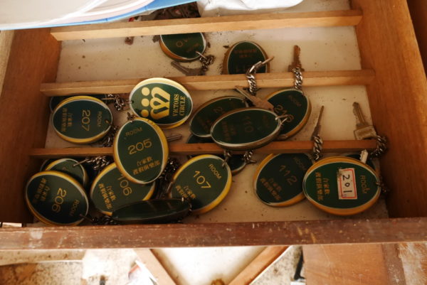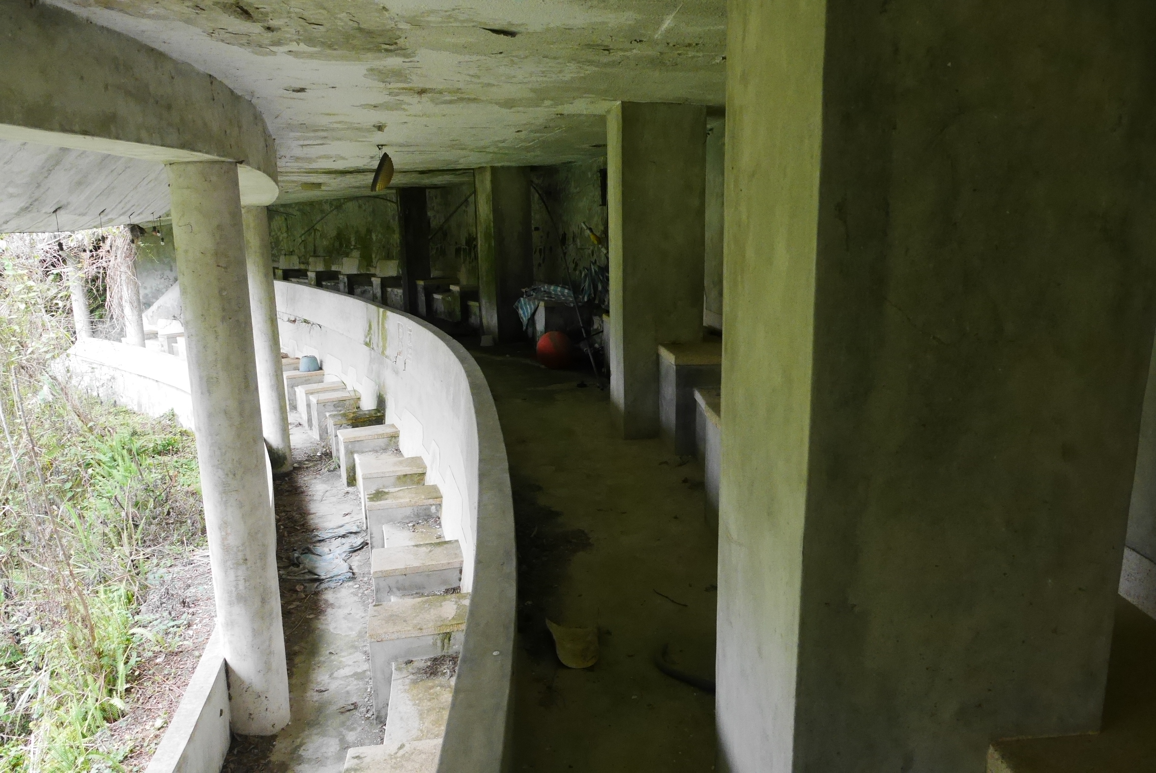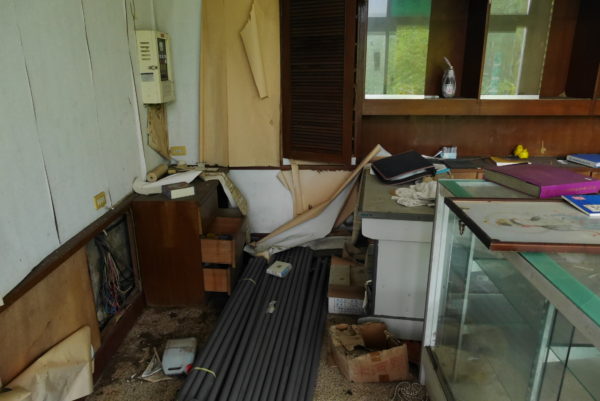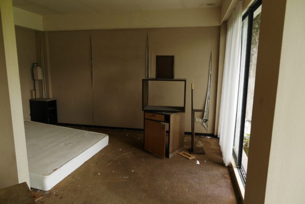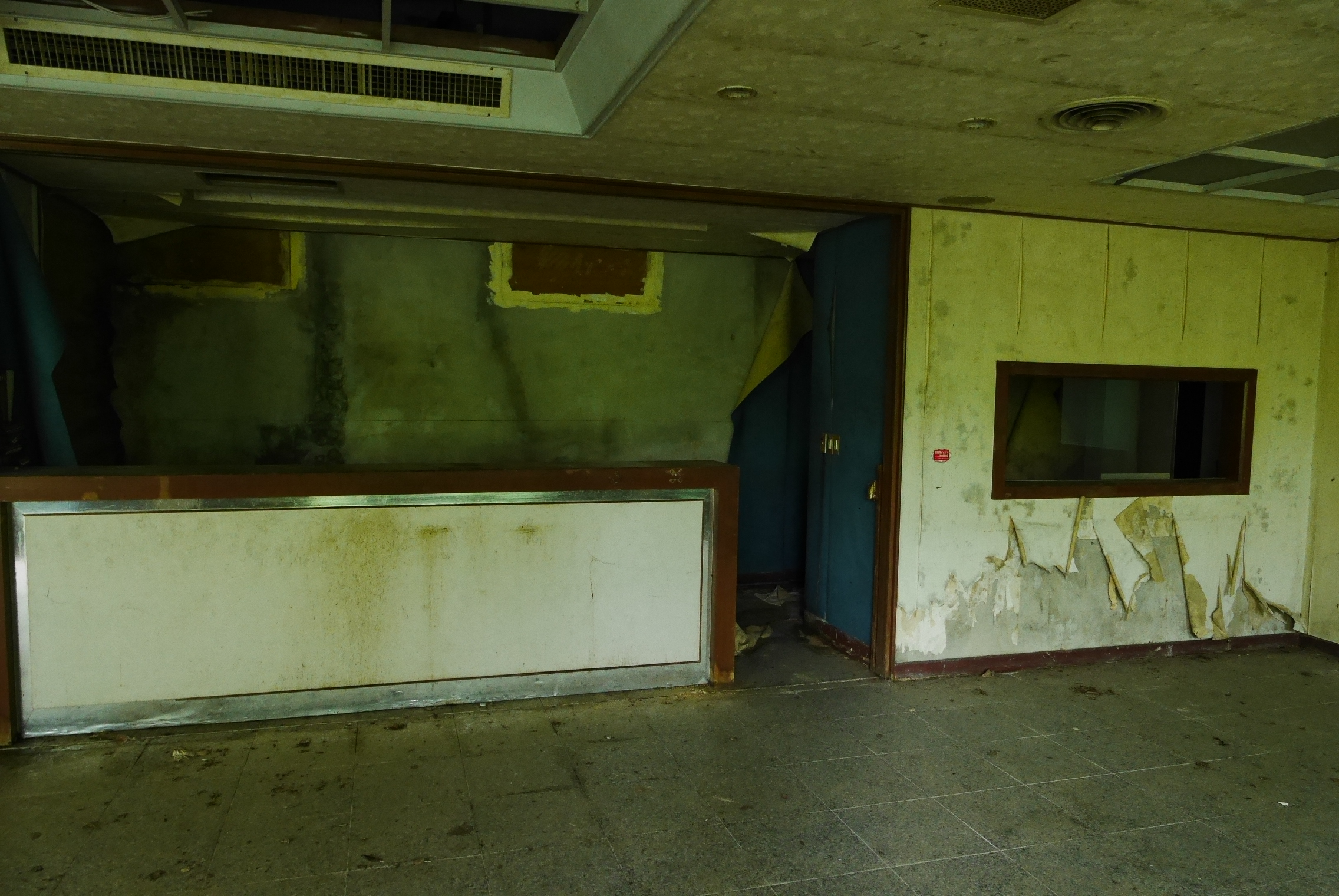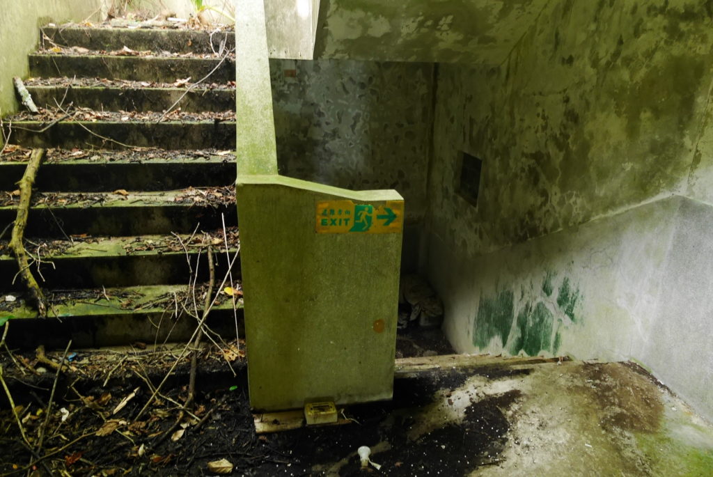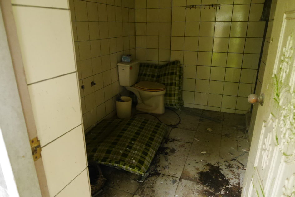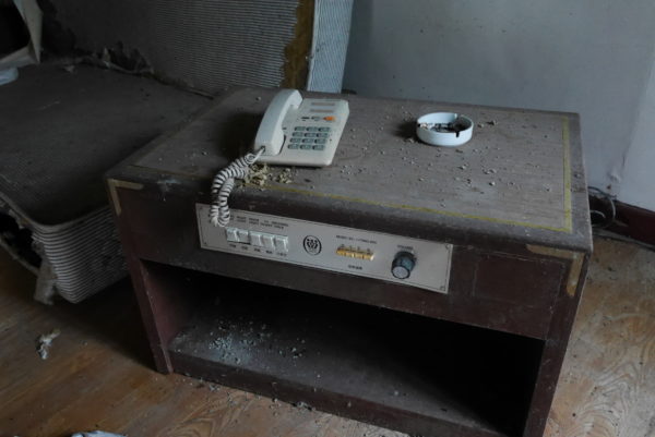 At this point I had explored every part of the actual hotel area. However, there is one part left that’s not really part of the hotel; right behind the Chiang Kai Shek statue you can see some big windows, but there’s no way to reach those rooms from within the hotel area. To get there you have to go back to the little parking lot in front of the main building then take some small stairs down. Unfortunately these stairs are behind a construction fence and with the hikers passing by on their way to the trail, this might be hard to get to. I went for a ride in the nearby area looking at some other stuff then came back later in the afternoon. By that point all the hikers had left and I could easily hop the fence without being seen.