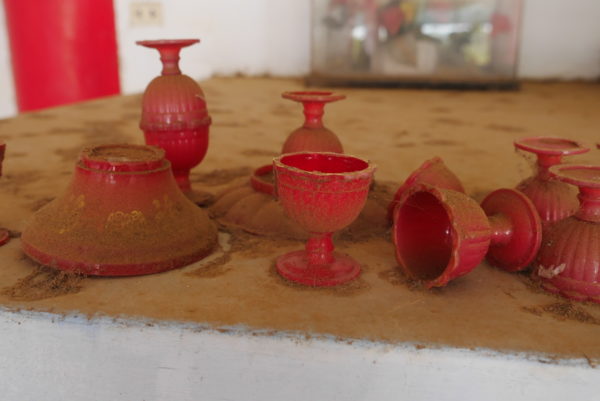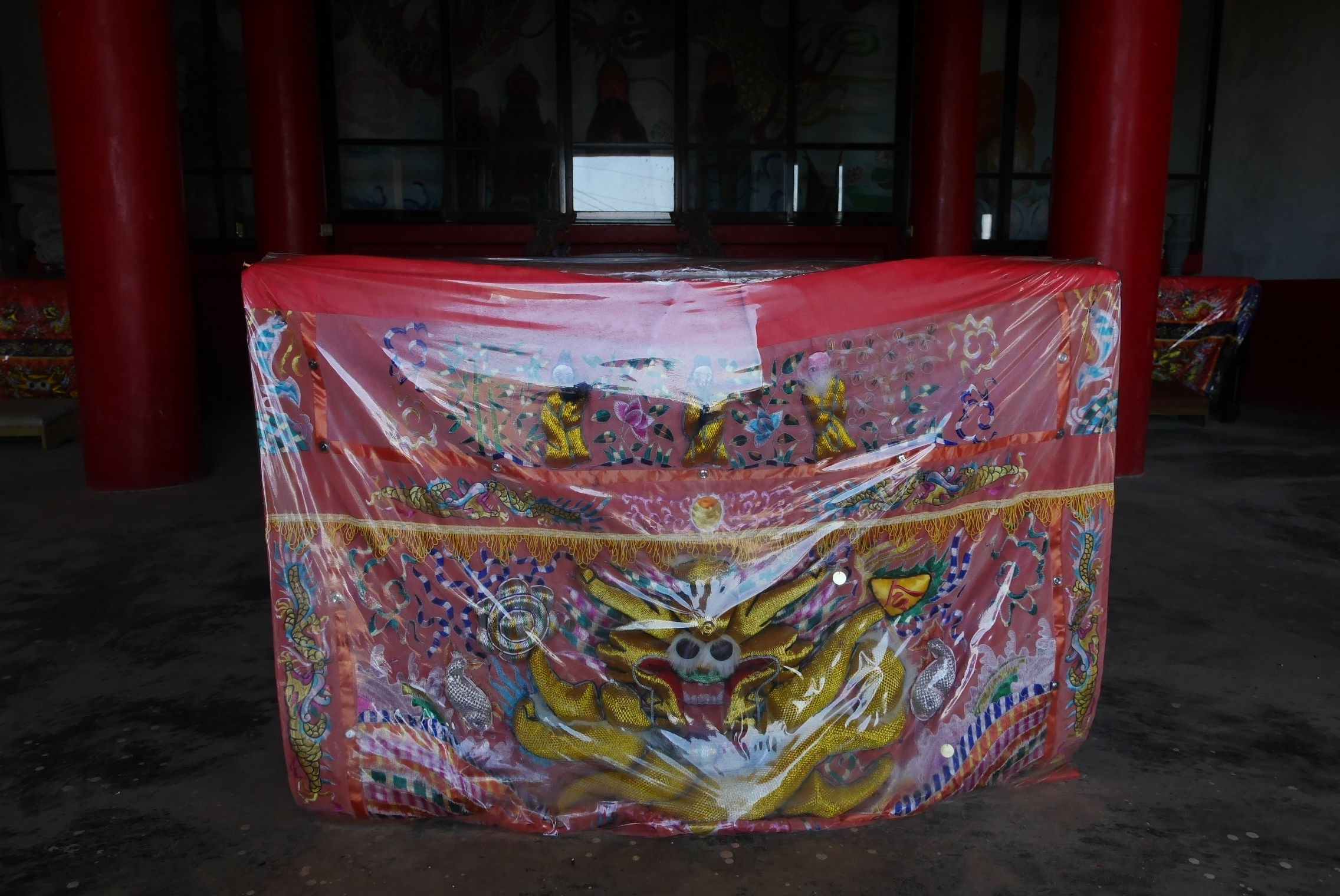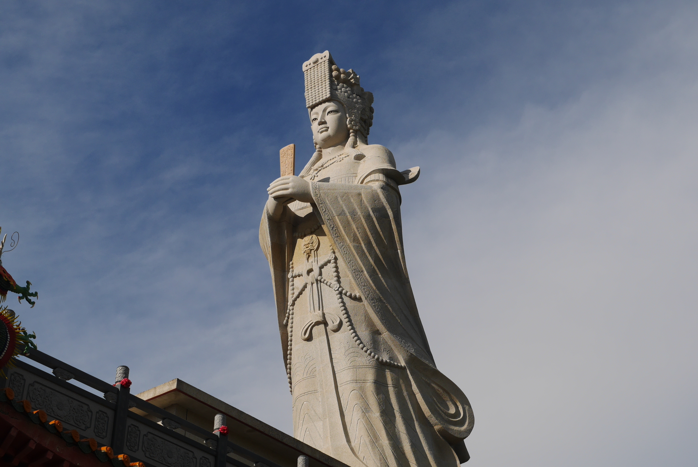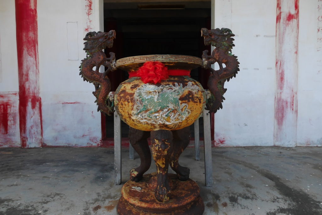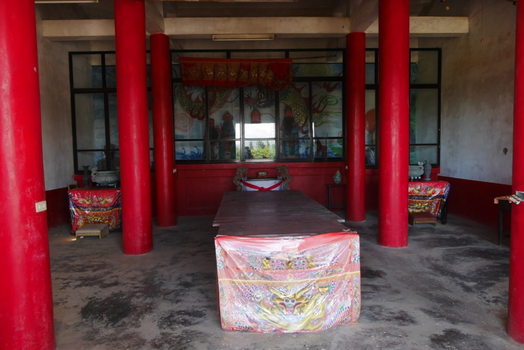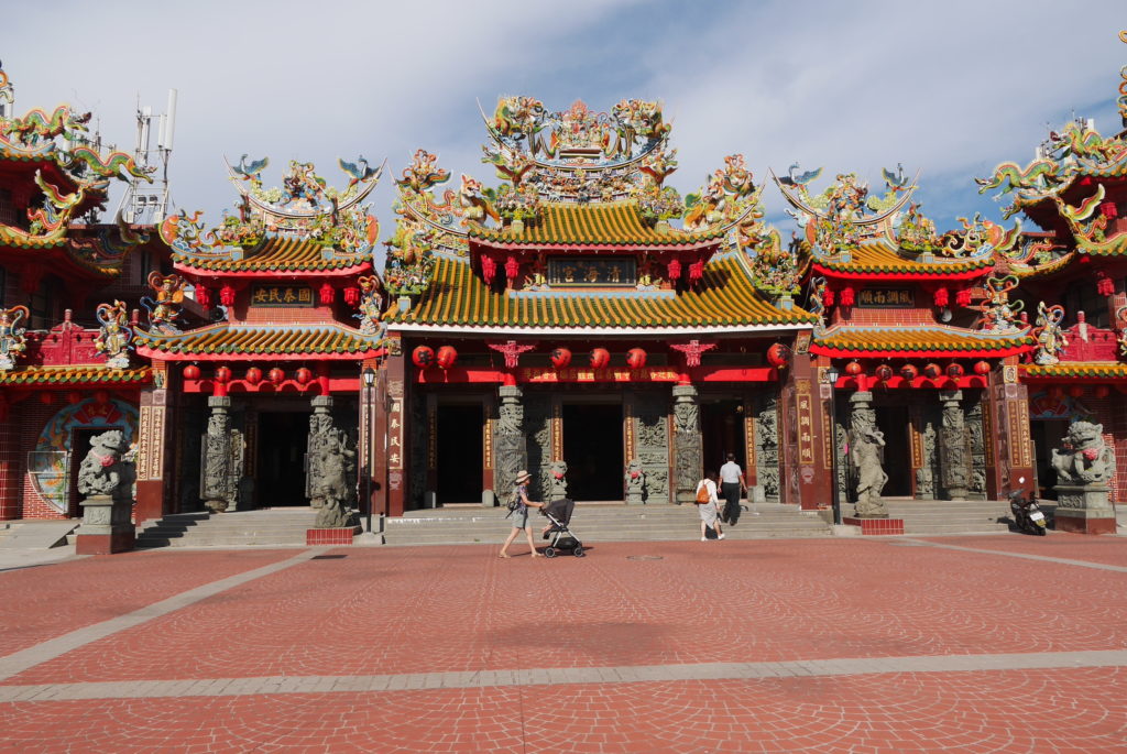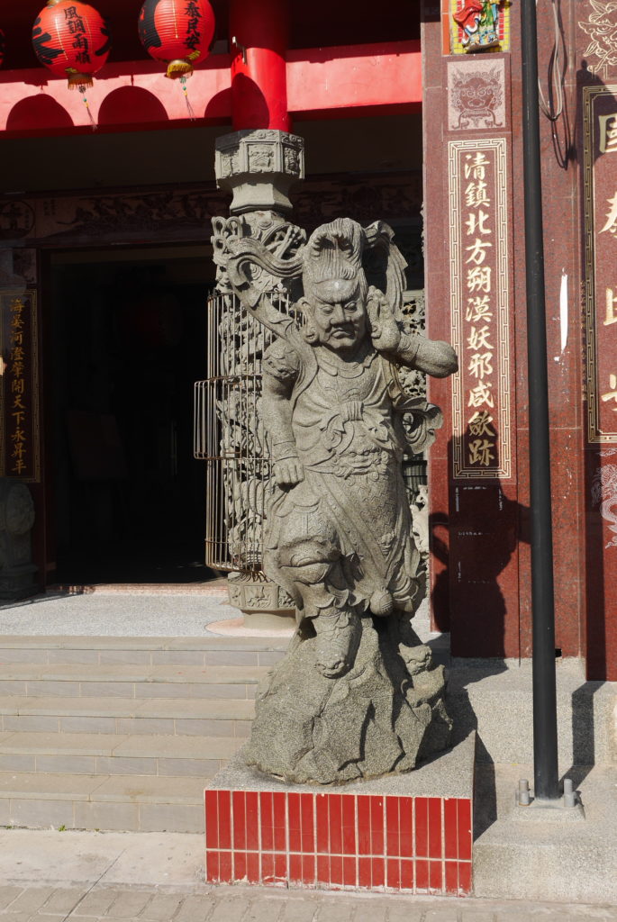 There wasn’t much more to see in the abandoned temple but since we had time we checked out a few other places in the area. There are several (not abandoned) temples nearby. Two of them house famous statuettes of the goddess Mazu that get carried from one temple to the next during certain festivals. This could be fun to see but we came at the wrong time. We only visited the smaller of them and the temple itself wasn’t particularly impressive. We did however stumble on a third, less famous, temple that was much bigger and had a giant statue of the goddess Mazu behind it. This was very impressive especially since we didn’t expect it.