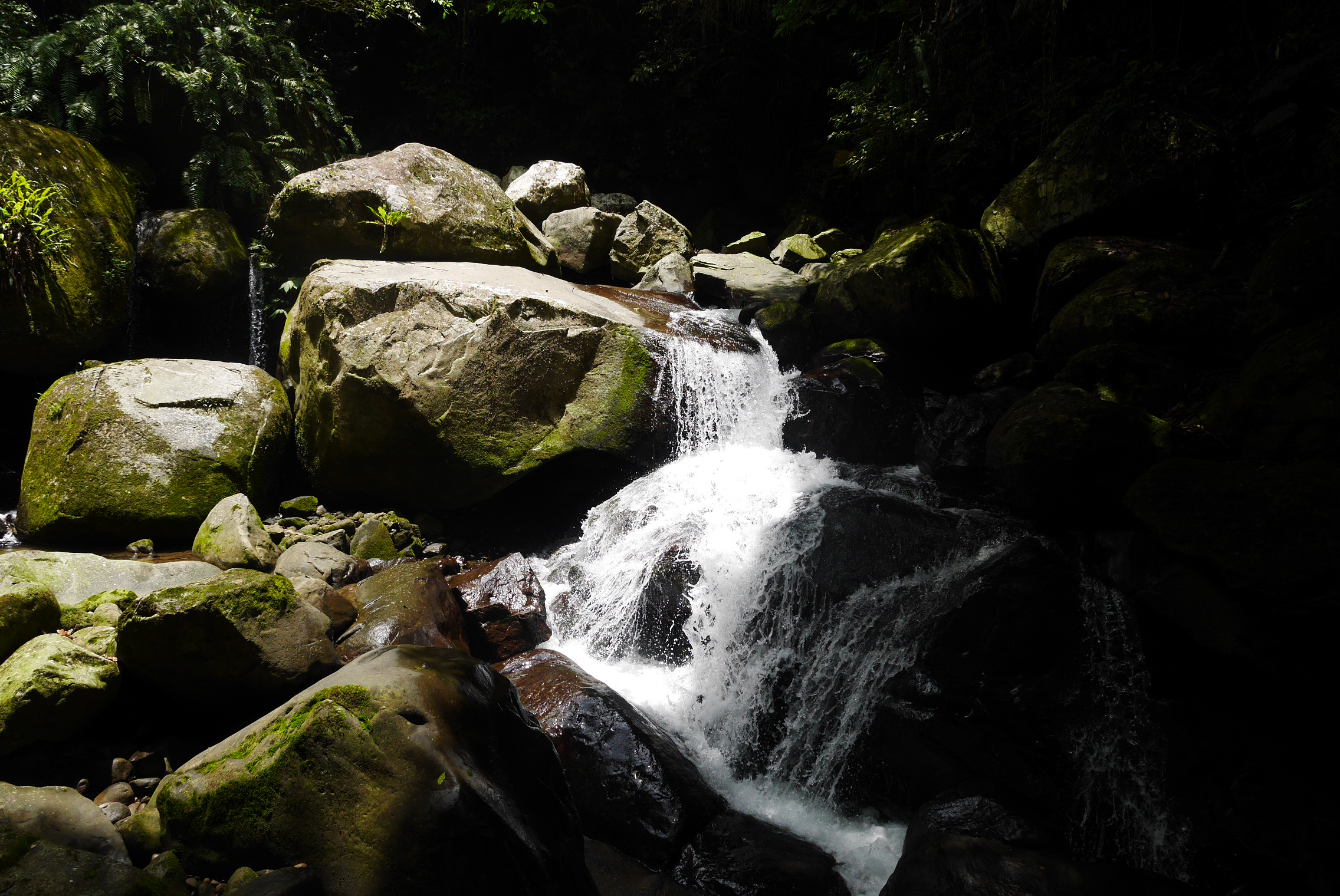 The trail itself starts with a set of steep stairs but after that it’s pretty smooth walking. After about a kilometer or two you get to a gazebo where the trail splits into two. If you are hiking the Matai trial you go straight from here, but like I said, because I was carrying the baby we took the branch down to the waterfall. There me and the wife took turns climbing around and exploring the waterfall while the other took care of the baby. The reason part of the map looks like a pile of spaghetti is because I forgot to turn off the tracking while clambering around.