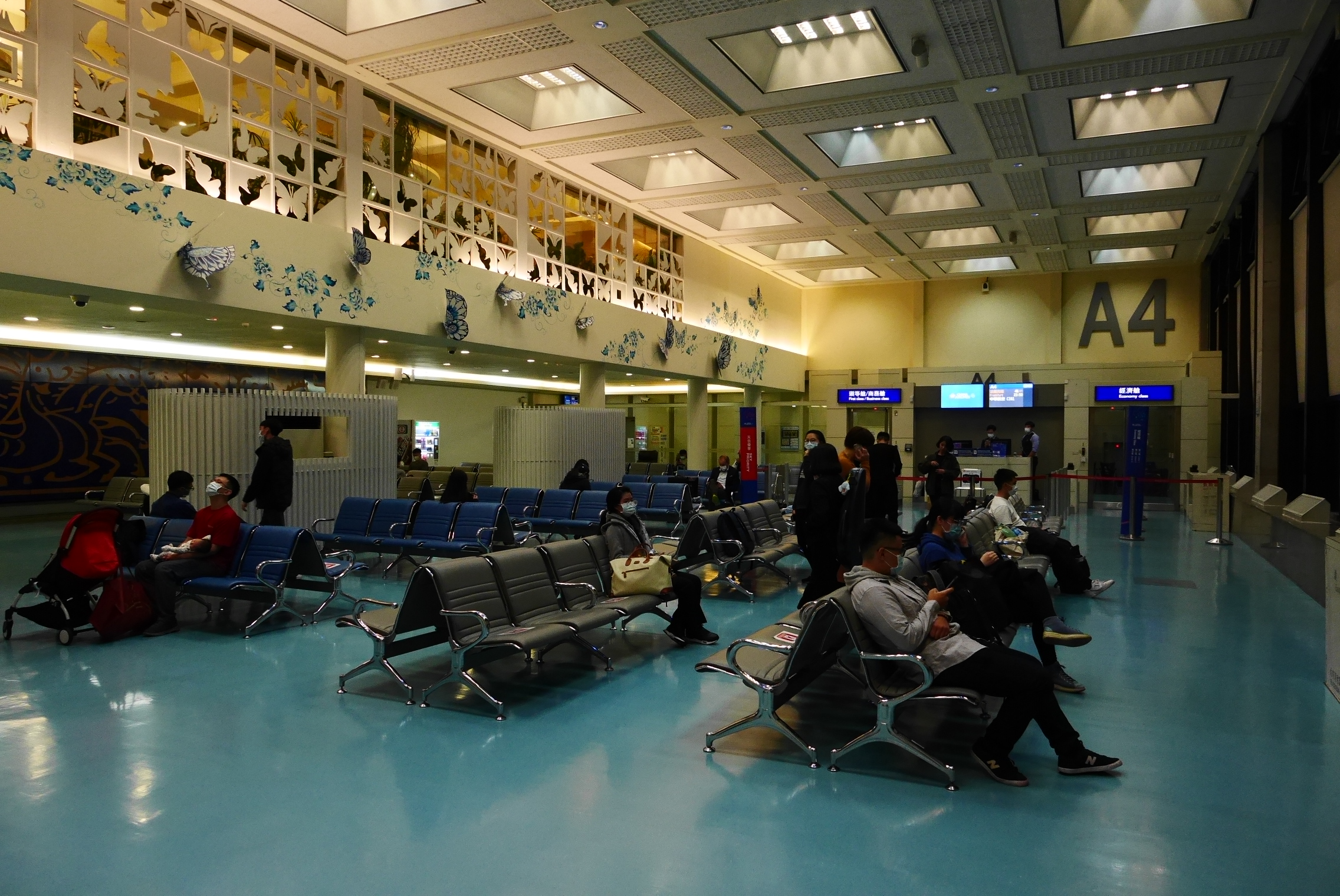 About an hour before boarding I was finished taking photos and took a seat by the gate. As I sat there more and more people showed up as if they had been hiding somewhere while I was walking around. All in all there were far fewer people taking the flight than there normally would be, but not quite as few as I had expected. While sitting there waiting I noticed that some of the people took different precautions ranging from a simple mask and perhaps some gloves, to some really serious setups including full body suit, gloves, hair net, mask and goggles. Knowing that I was flying out from Taiwan, one of the safest countries in the world when it comes to Covid 19, I opted to only wear the mask as required by flight safety regulations. Not sure what I will do when flying back, I have prepared a lot of equipment in case I need it.