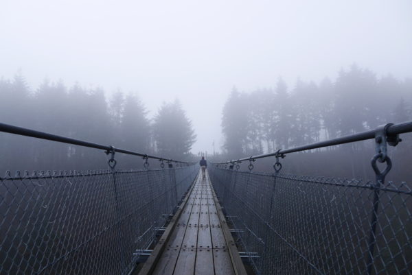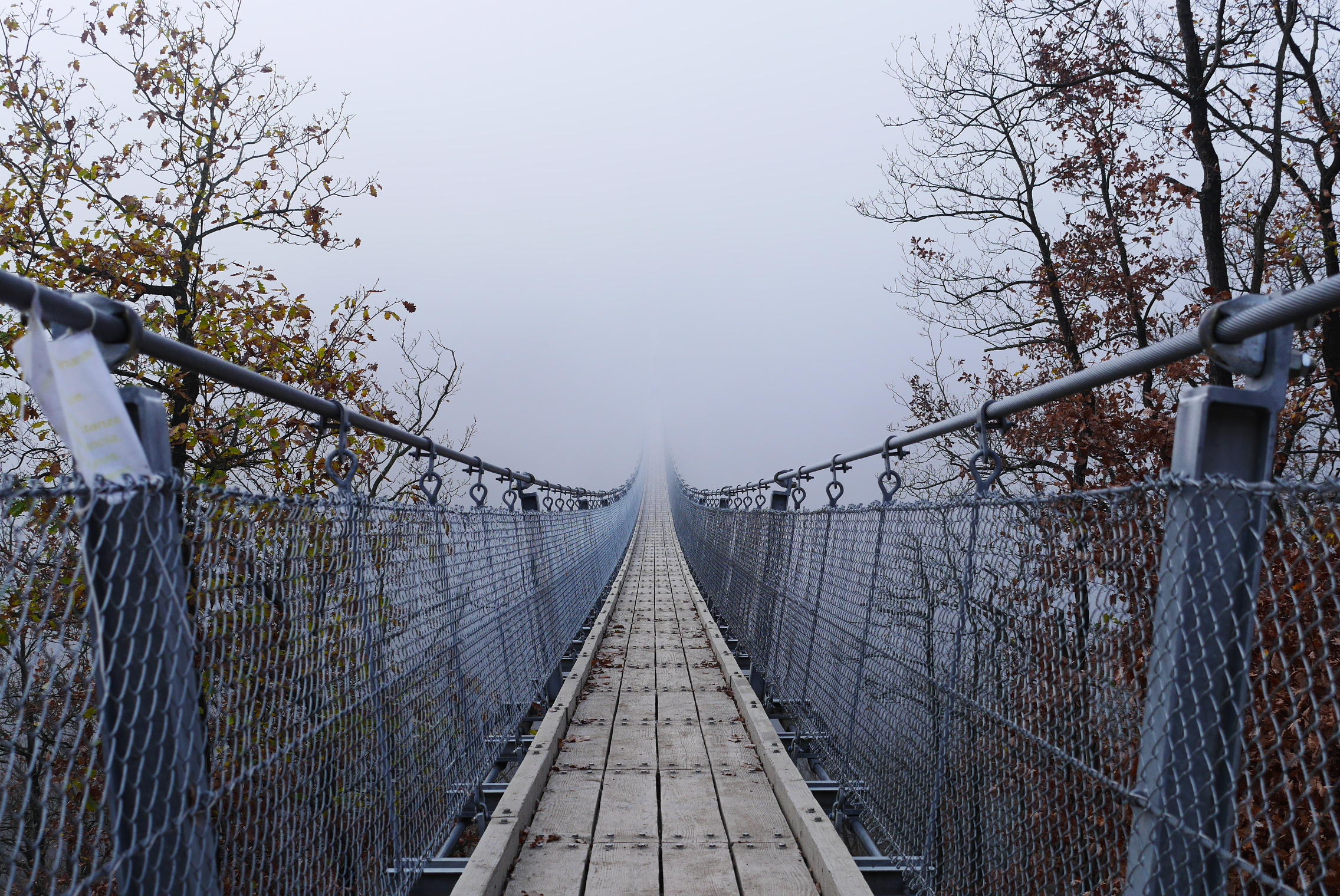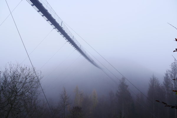 One of my Taiwanese colleagues is very interested in European history. He found two rather famous castles not too far from each other, both close to the river Moselle, Cochem Castle and Burg Eltz. Another colleague pointed out that one of Germany’s longest suspension rope bridges is in the same area. It was a bit of a drive to get there but the possibility of visiting three tourist sites in one day was too good an opportunity to pass up. We had a bit of bad luck with the weather that day so when we arrived at the Geierlay Suspension Bridge it was foggy, so we didn’t see as much as we hoped. That said, I still liked it and I believe you can get some really great views on a clear day.