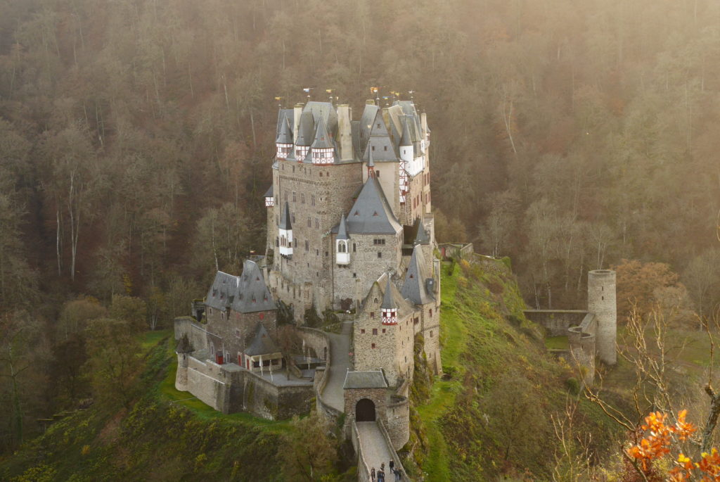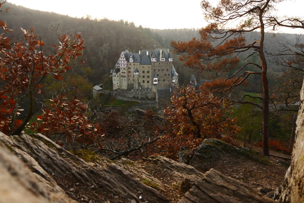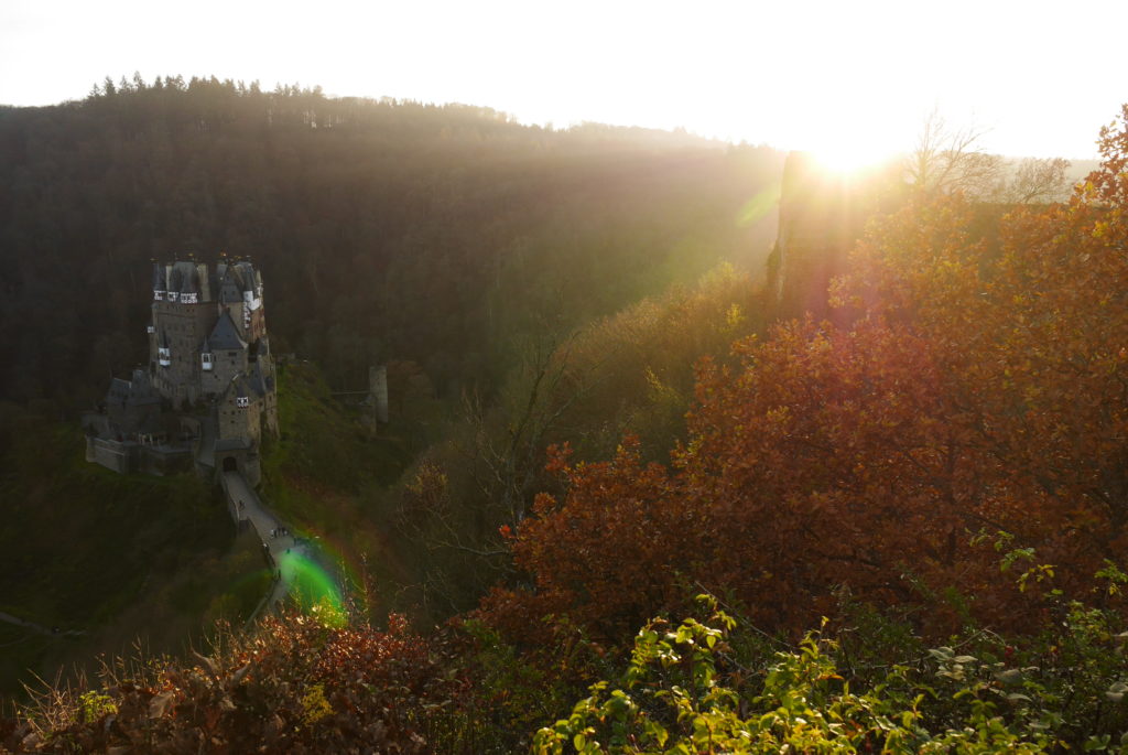 When we got to Eltz the weather had cleared up, the low afternoon sun lighting up the castle and the forest around it. The castle is surrounded my forest clad mountains the rise up around it on all sides, as if it was built at the bottom of a bowl. This makes it more special than Cochem and other hilltop castles. As we were there in late autumn, many of the trees had already lost their leaves, but I think this place could look really beautiful in the summer. In my opinion, neither Cochem castle or Eltz castle is really worth visiting just on its own, but the fact that they are so close together makes for a pretty good day trip; add to that the Geierlay suspension bridge (on a clear day) and you’ll have a really nice little tour.