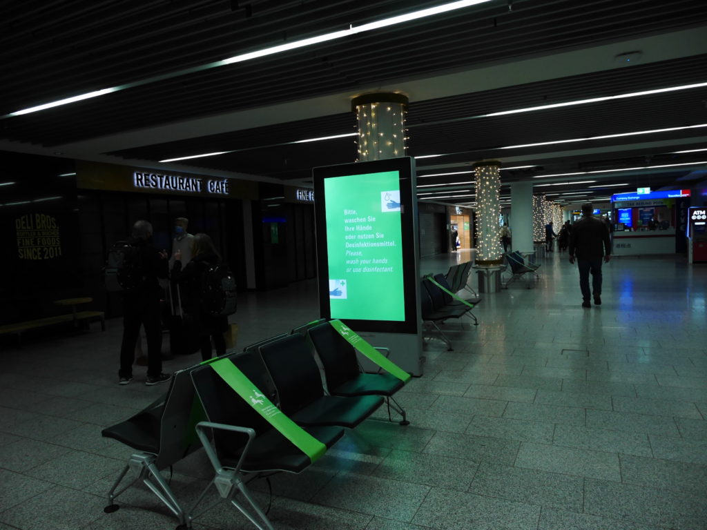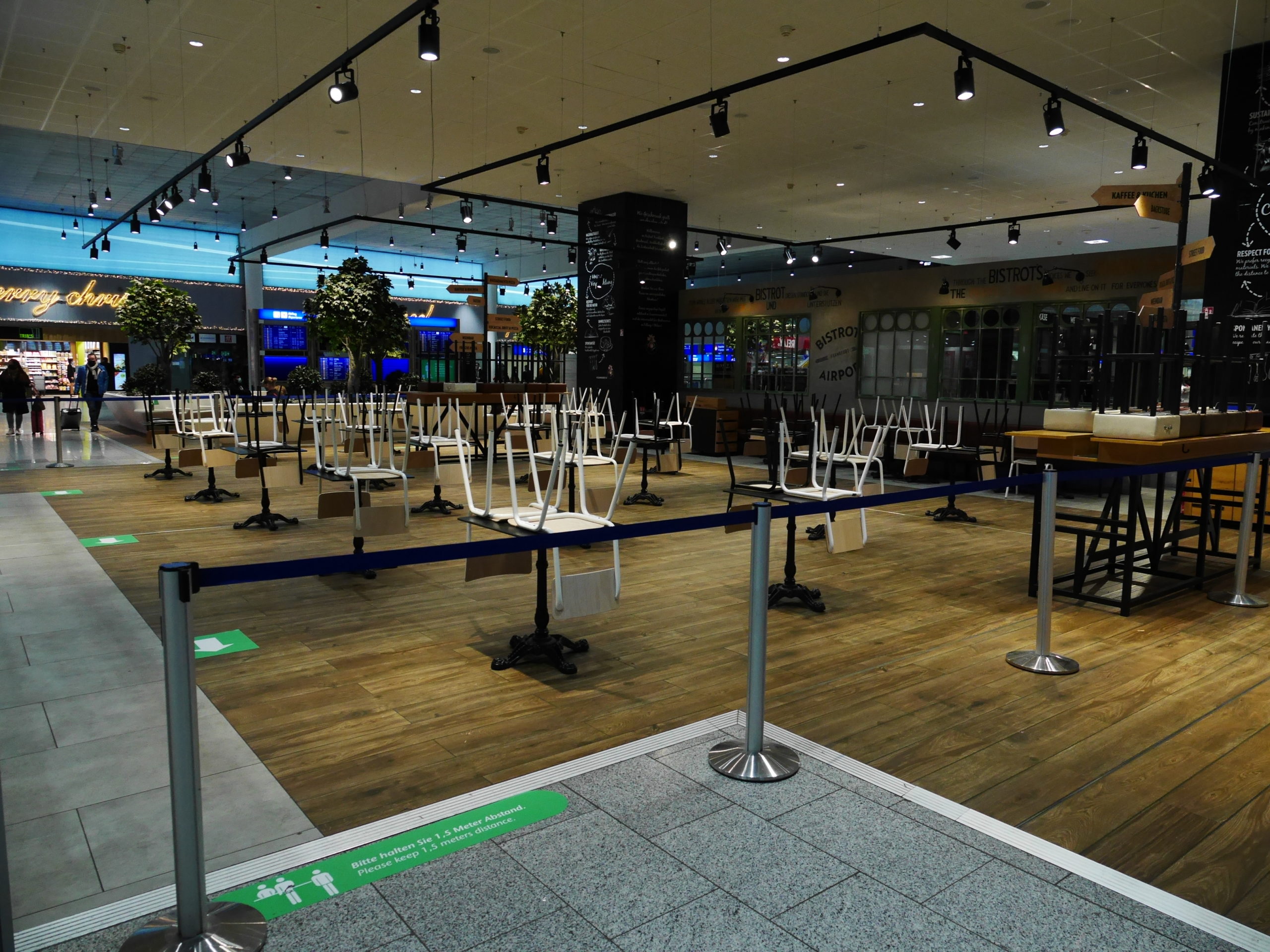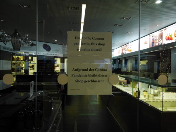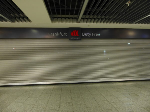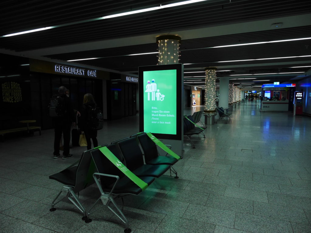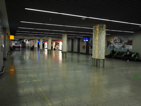 In my last post I mentioned that the experience at Frankfurt airport was more or less normal. This time however, it was markedly different. The place wasn’t quite as empty as the airport in Taipei, but a lot of stores were closed, and there were definitely fewer people around than normal. I also noticed that many cafes and restaurants had social distancing measures in place, with tables spaced out or seats blocked off, but they were completely closed now, likely due to the new regulations. To give a better feeling for what it was like, here are some photos I took while walking around: