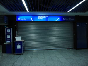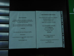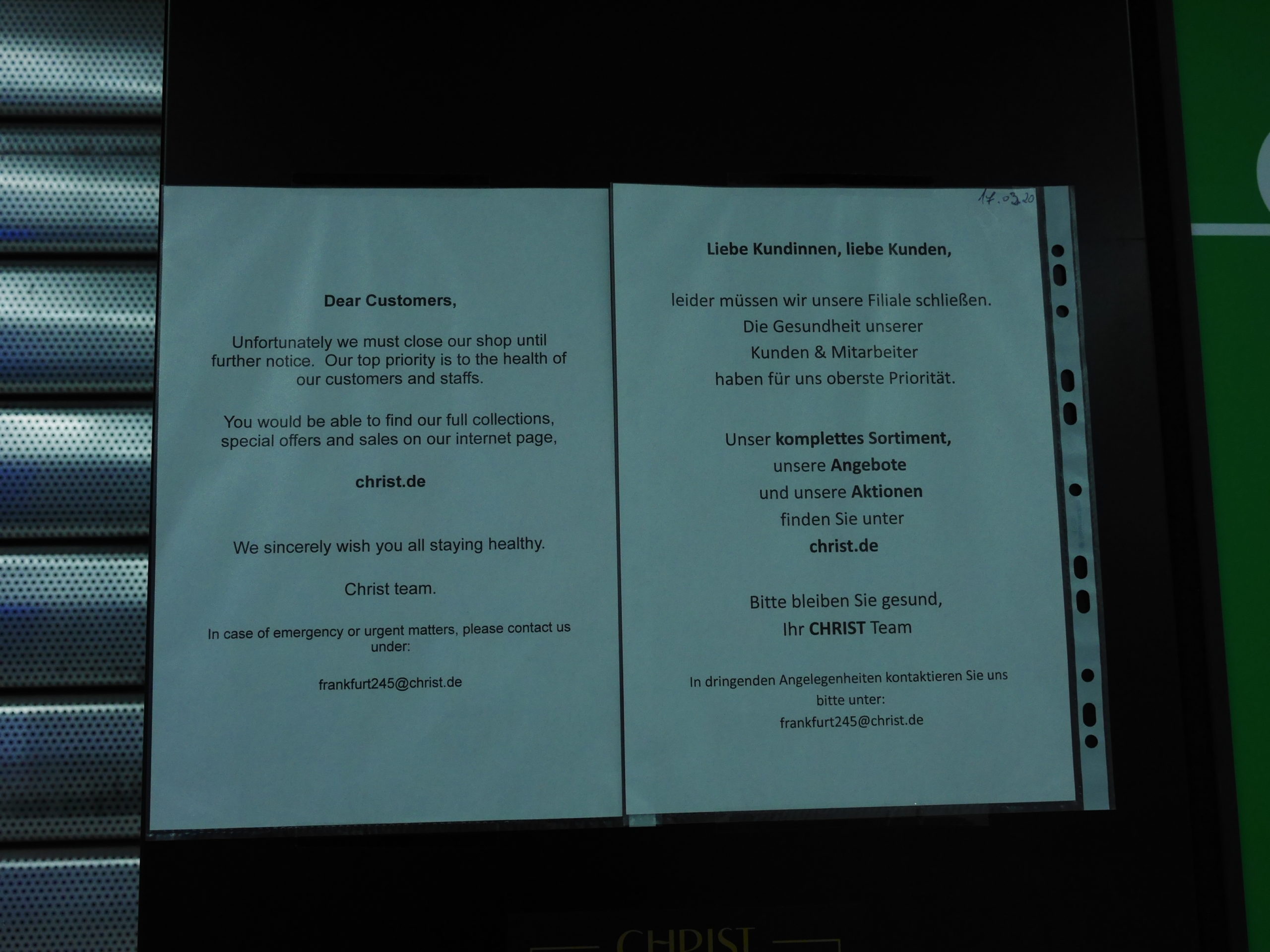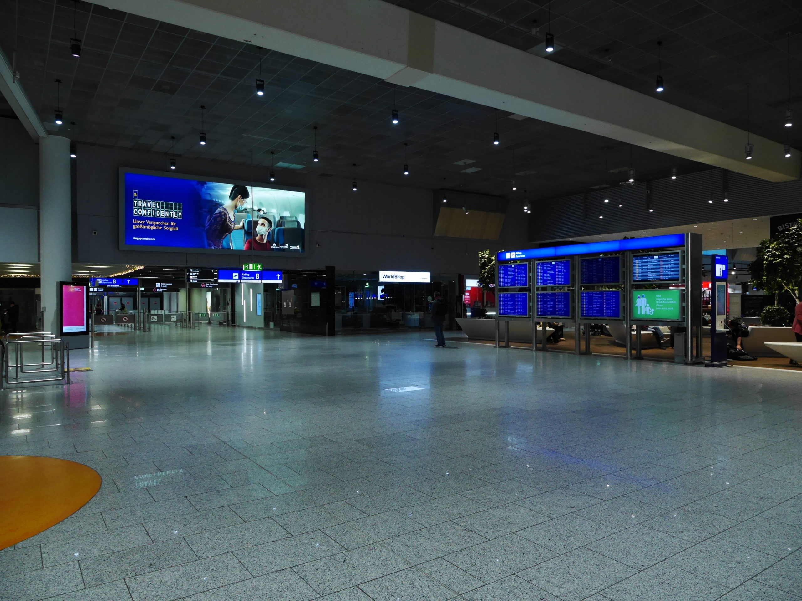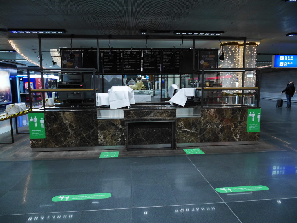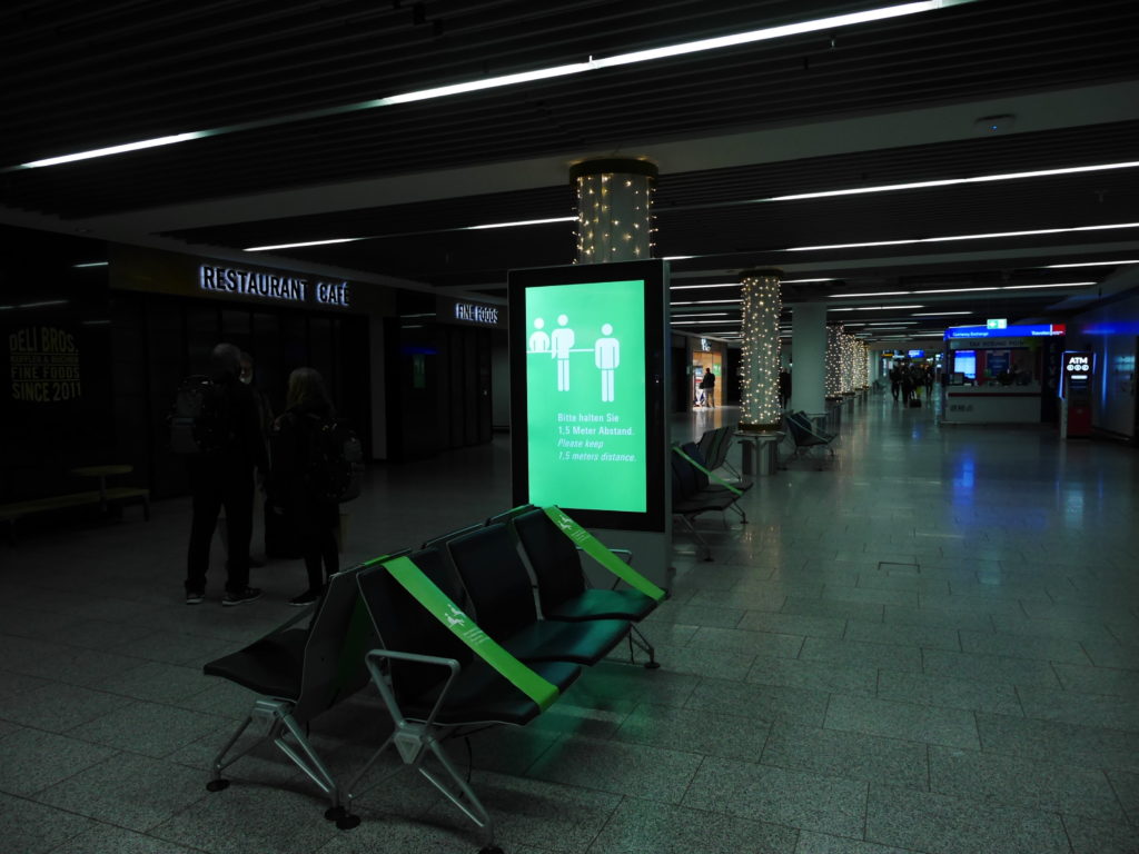 In my last post I mentioned that the experience at Frankfurt airport was more or less normal. This time however, it was markedly different. The place wasn’t quite as empty as the airport in Taipei, but a lot of stores were closed, and there were definitely fewer people around than normal. I also noticed that many cafes and restaurants had social distancing measures in place, with tables spaced out or seats blocked off, but they were completely closed now, likely due to the new regulations. To give a better feeling for what it was like, here are some photos I took while walking around: