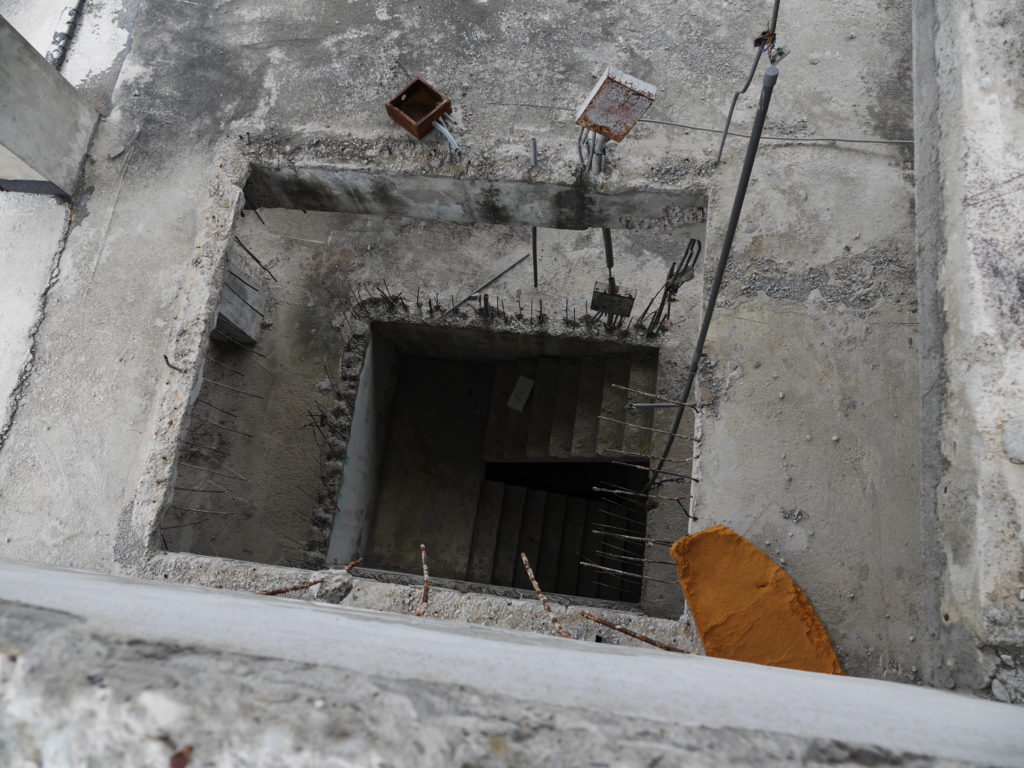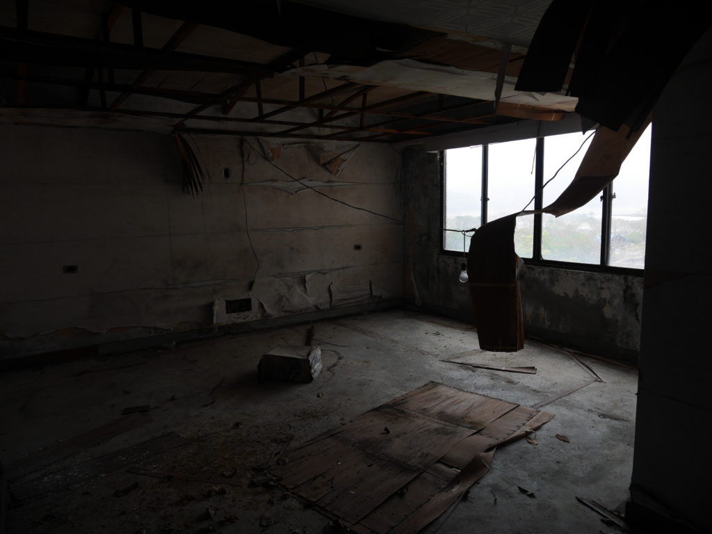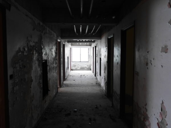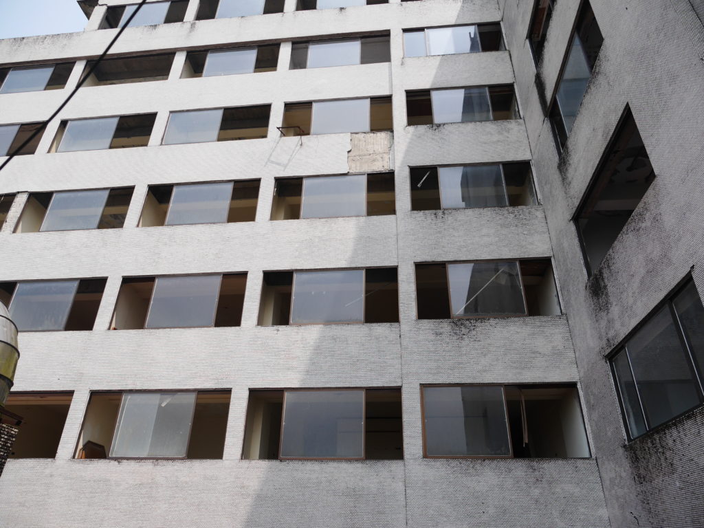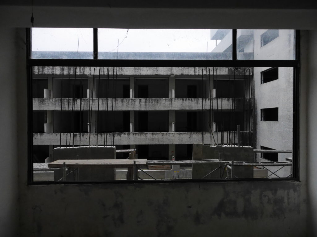While exploring we quickly noticed that one part of the building was under construction, or at least it had been before the place became abandoned. We thought the people on the lower floors might be working there so we avoided it for the most part, but I did snap one photo from a room facing the construction site. As you can see there is plenty of incomplete concrete construction with rebar poking out from it.