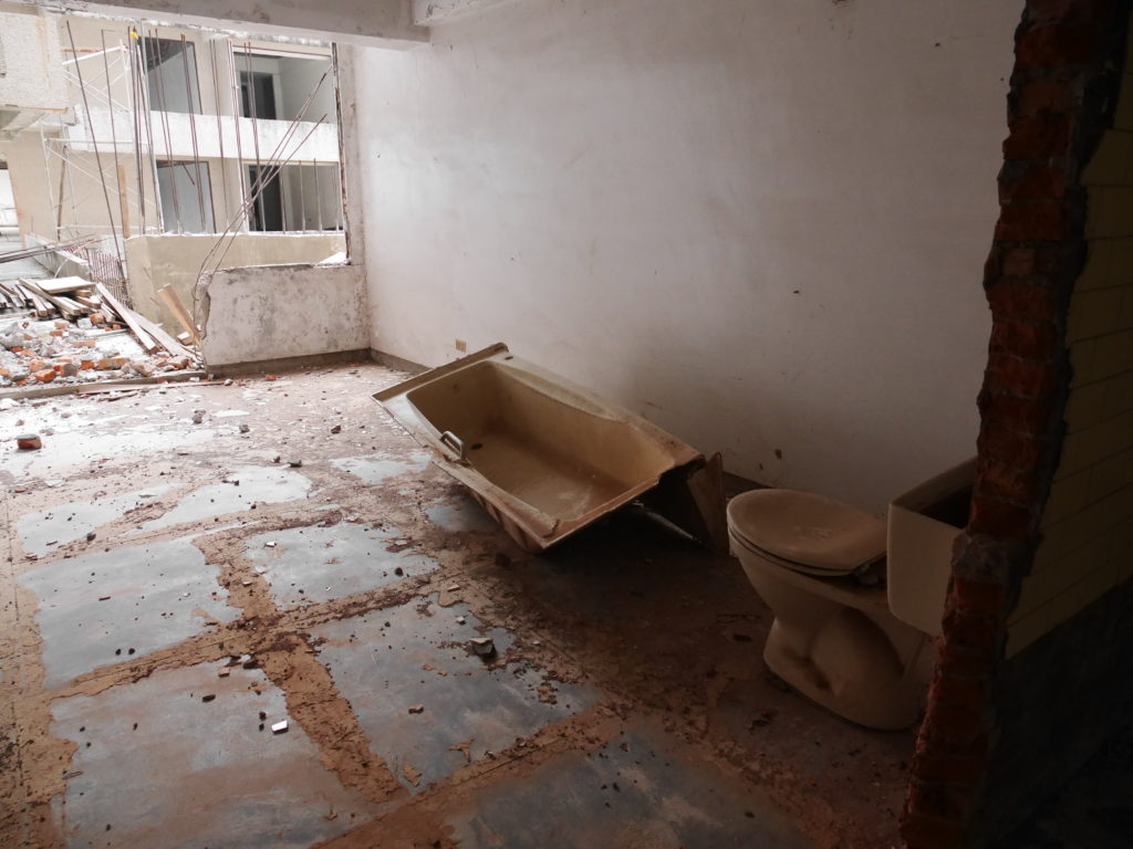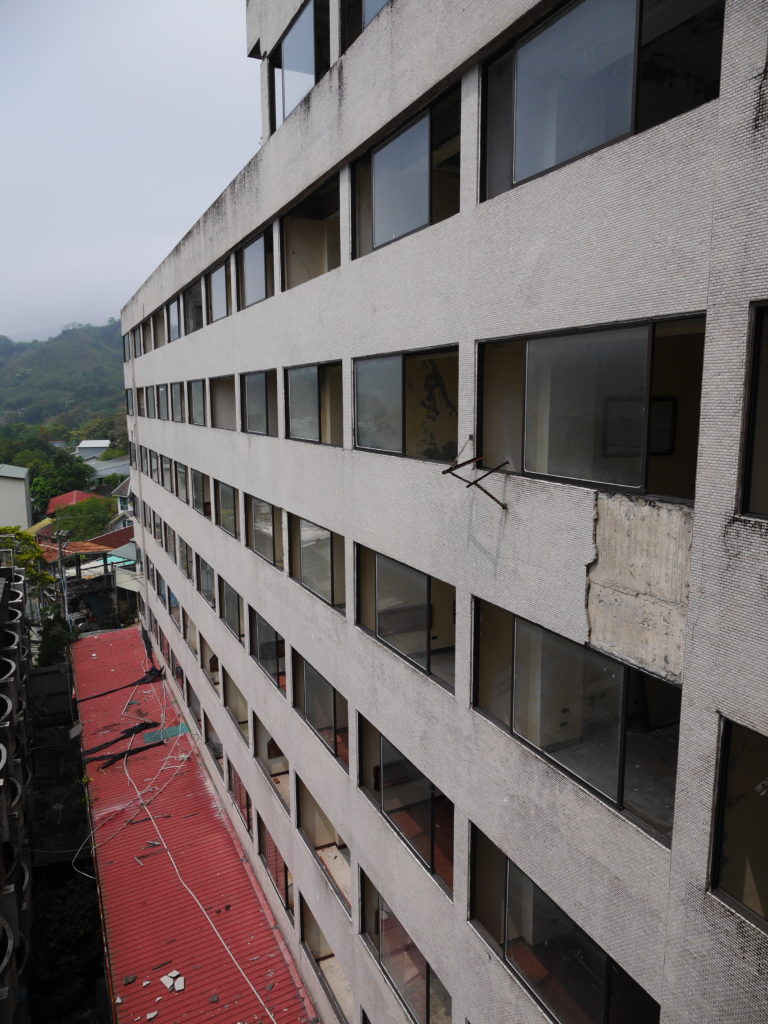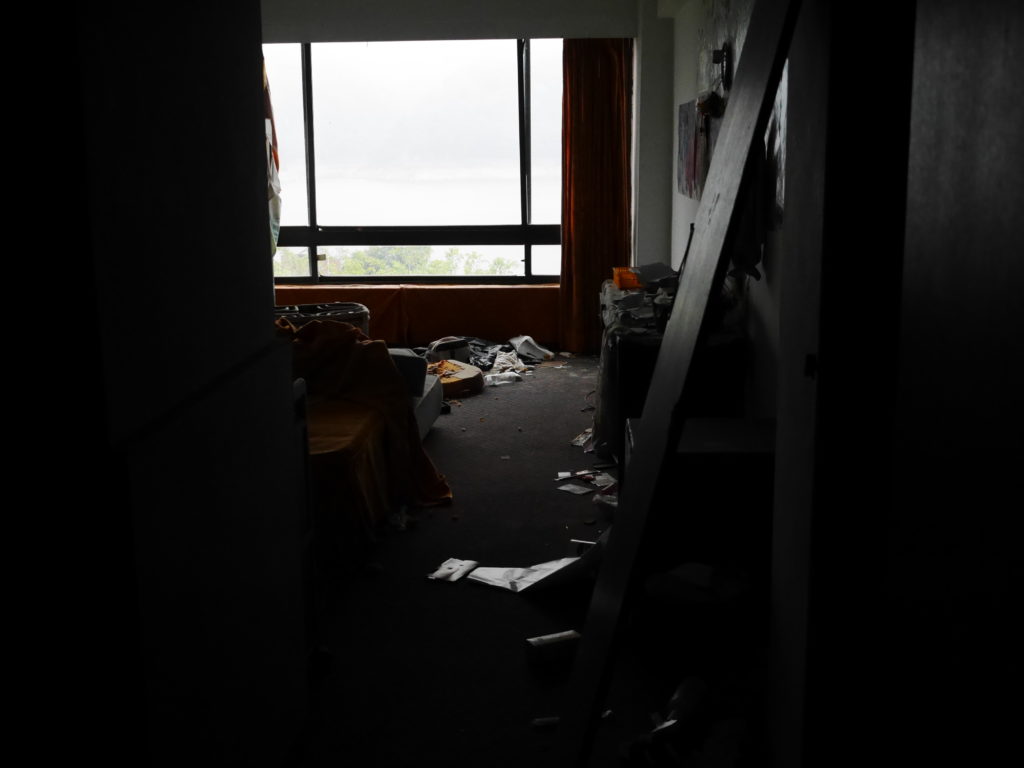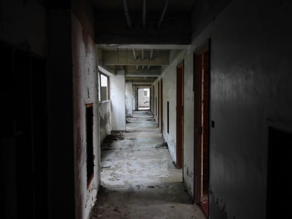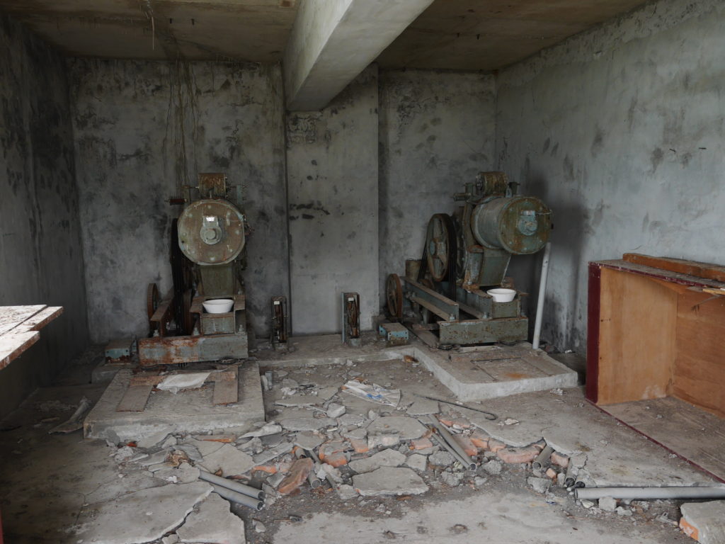 While exploring we quickly noticed that one part of the building was under construction, or at least it had been before the place became abandoned. We thought the people on the lower floors might be working there so we avoided it for the most part, but I did snap one photo from a room facing the construction site. As you can see there is plenty of incomplete concrete construction with rebar poking out from it.