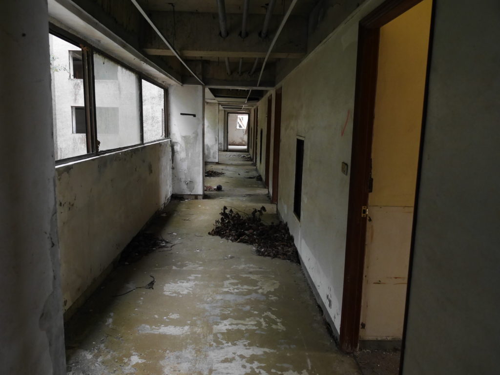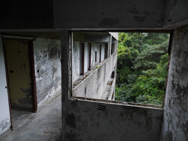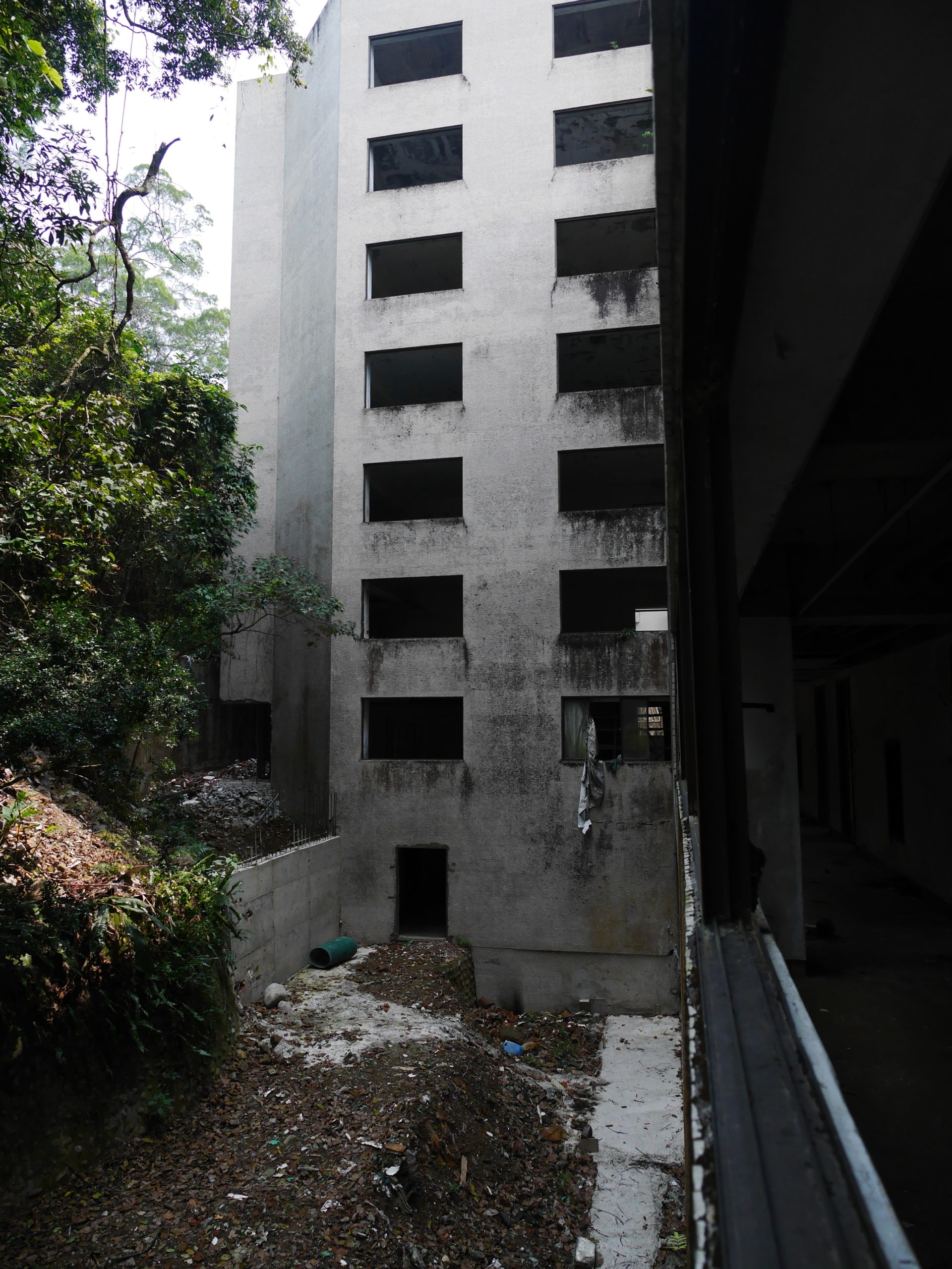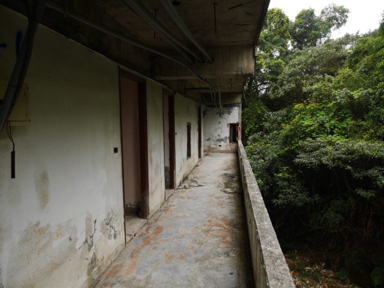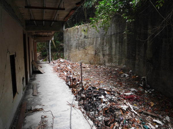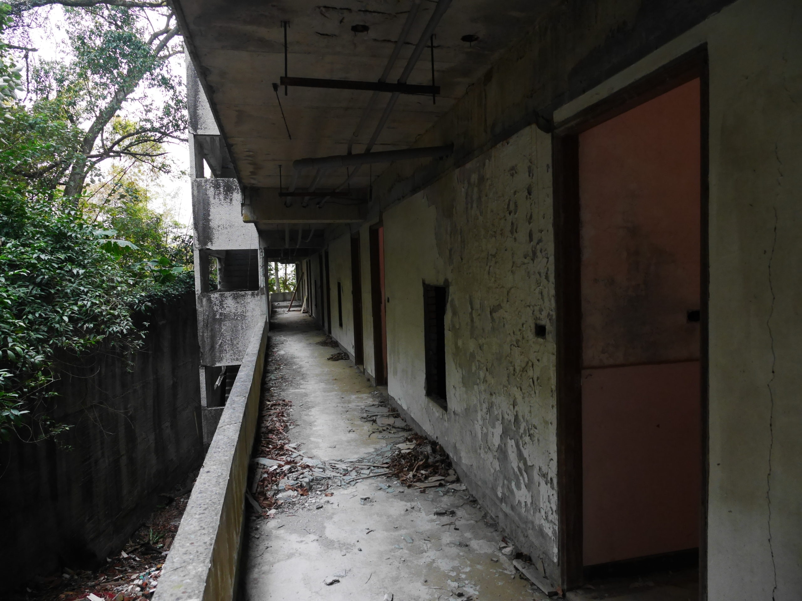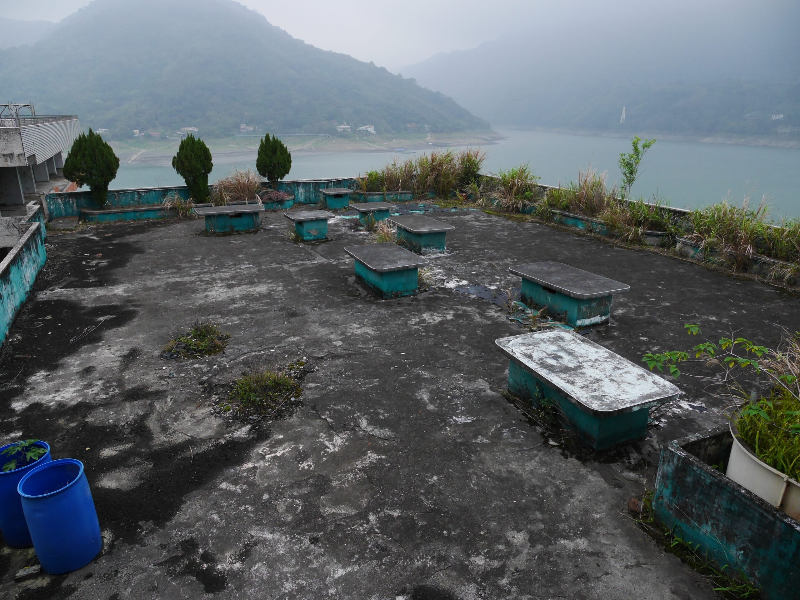 The hotel in question lies a couple of kilometers east of the Shimen dam at a place called the Amuping Marina. I stupidly failed to note down the name of the hotel but it’s the largest building in the area and on Google Maps it looks like it is called 阿母坪薑母紅糖包 or Amuping Ginger Brown Suger Bun. Before I start posting pictures I have to mention that the hotel, at time of writing, is only partially abandoned. There seems to be a group of people who have occupied the first two floors of one wing of the building and taken up residence in the old guest rooms. It also seems like they are doing some kind of construction/renovation work in the building, but if they are, it’s going extremely slowly. Whatever the exact situation, there was some activity in the eastern, lakeside wing of the hotel. Not wanting to disturb the people there for fear they might try to kick us out or maybe even contact the authorities, we stayed clear of this part of the building.