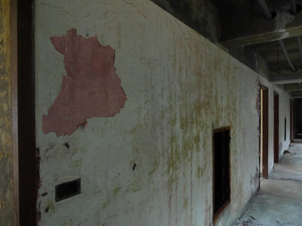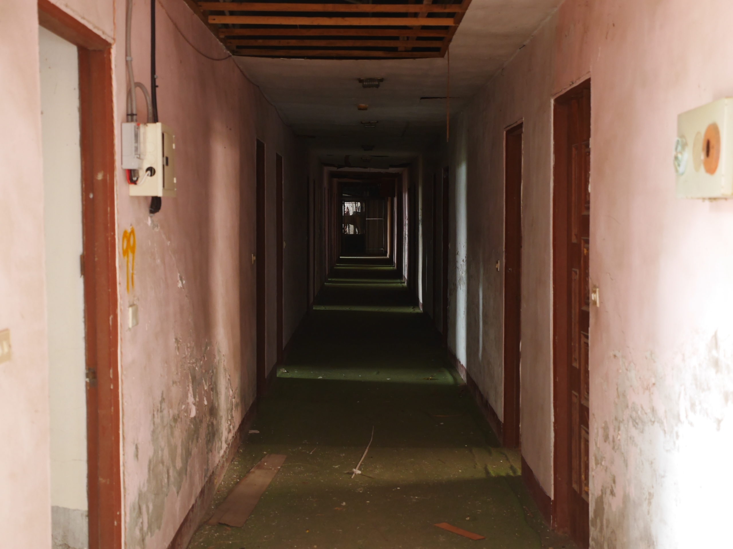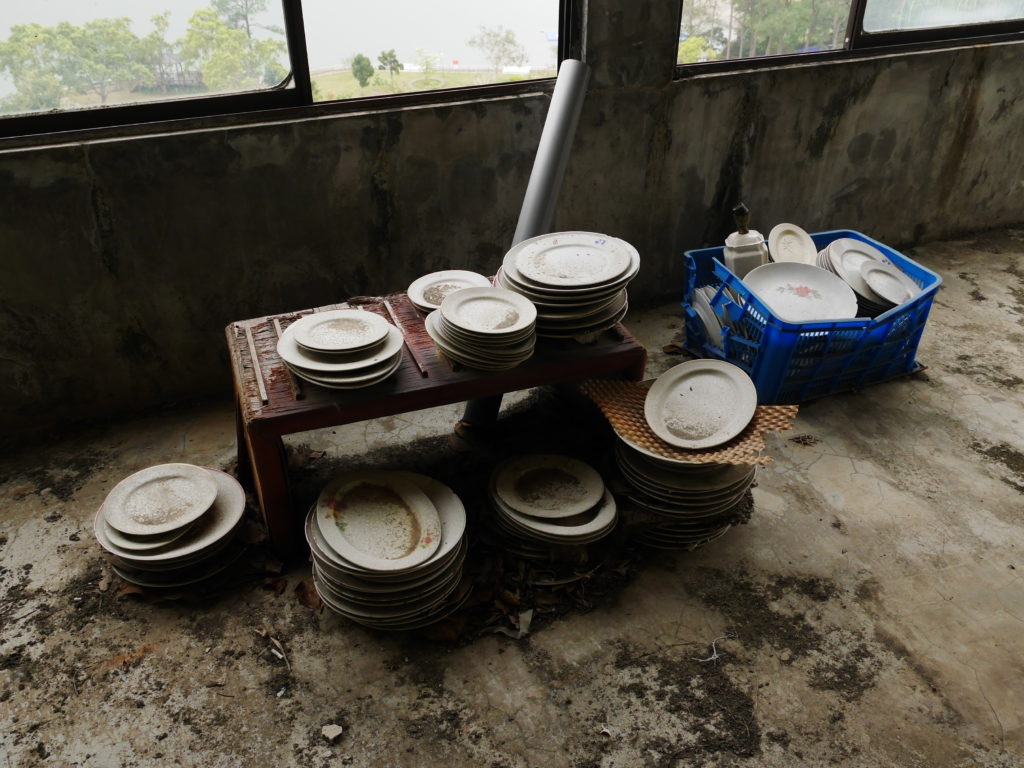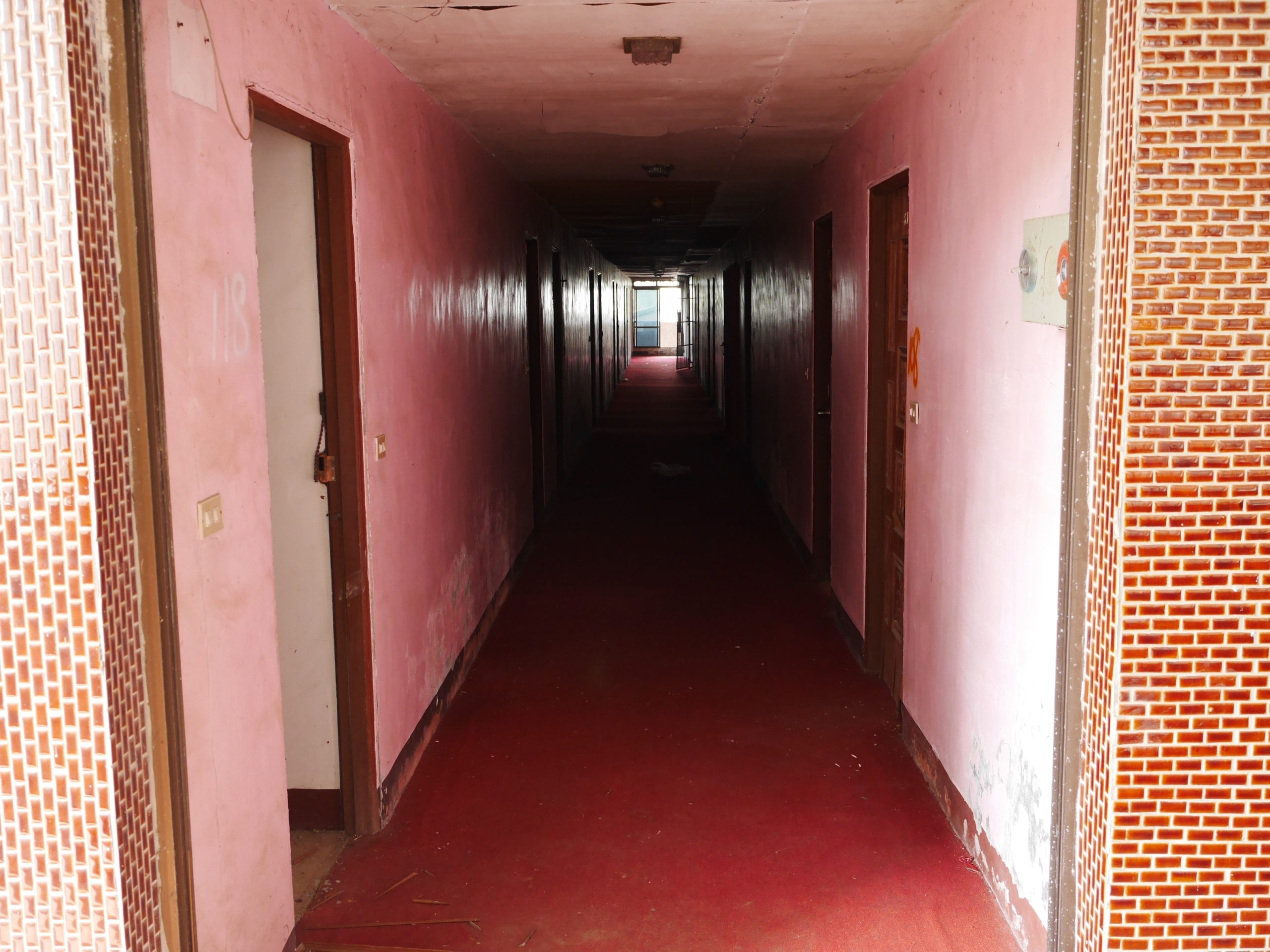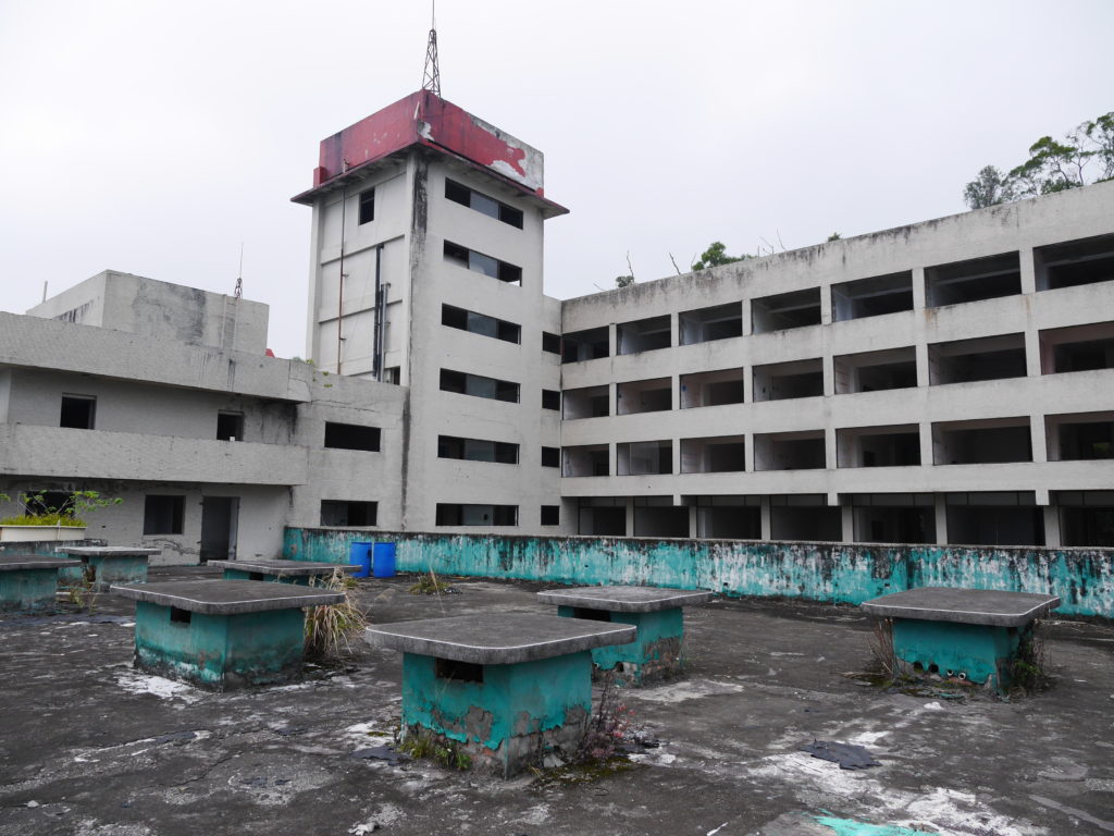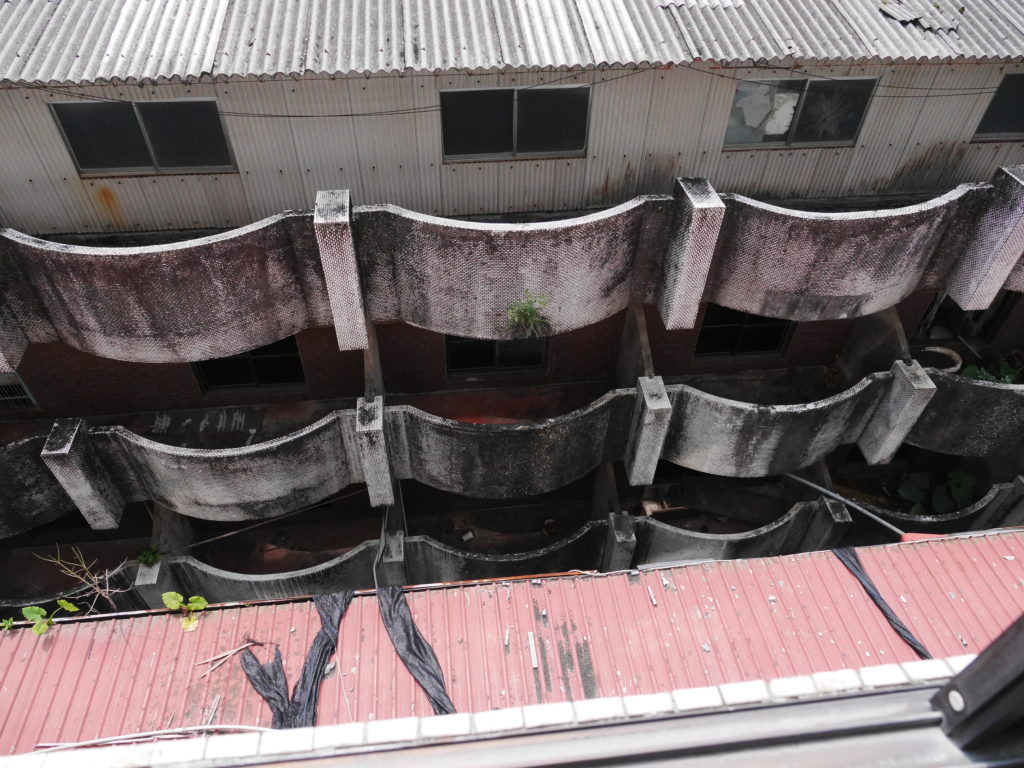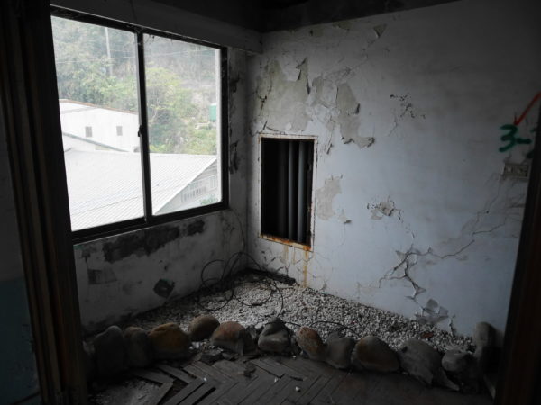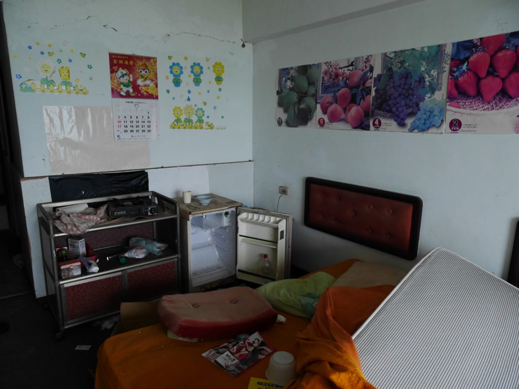 The hotel in question lies a couple of kilometers east of the Shimen dam at a place called the Amuping Marina. I stupidly failed to note down the name of the hotel but it’s the largest building in the area and on Google Maps it looks like it is called 阿母坪薑母紅糖包 or Amuping Ginger Brown Suger Bun. Before I start posting pictures I have to mention that the hotel, at time of writing, is only partially abandoned. There seems to be a group of people who have occupied the first two floors of one wing of the building and taken up residence in the old guest rooms. It also seems like they are doing some kind of construction/renovation work in the building, but if they are, it’s going extremely slowly. Whatever the exact situation, there was some activity in the eastern, lakeside wing of the hotel. Not wanting to disturb the people there for fear they might try to kick us out or maybe even contact the authorities, we stayed clear of this part of the building.