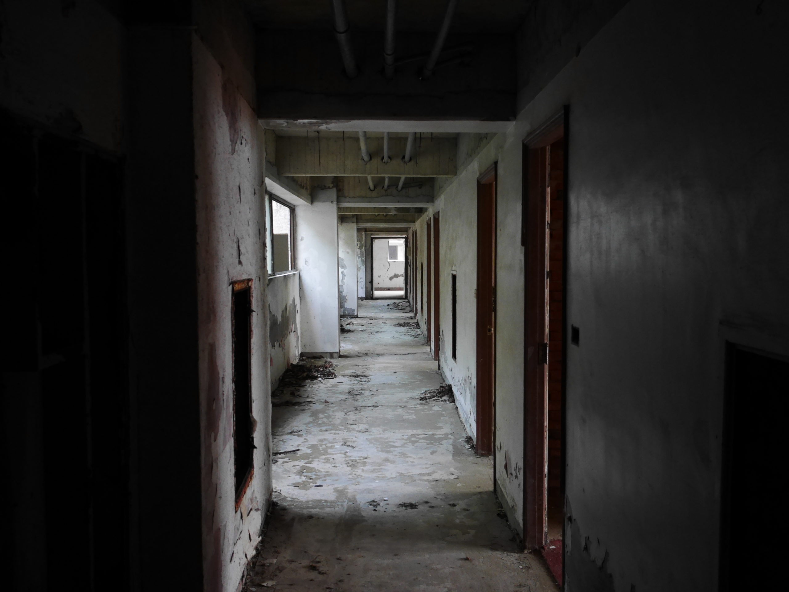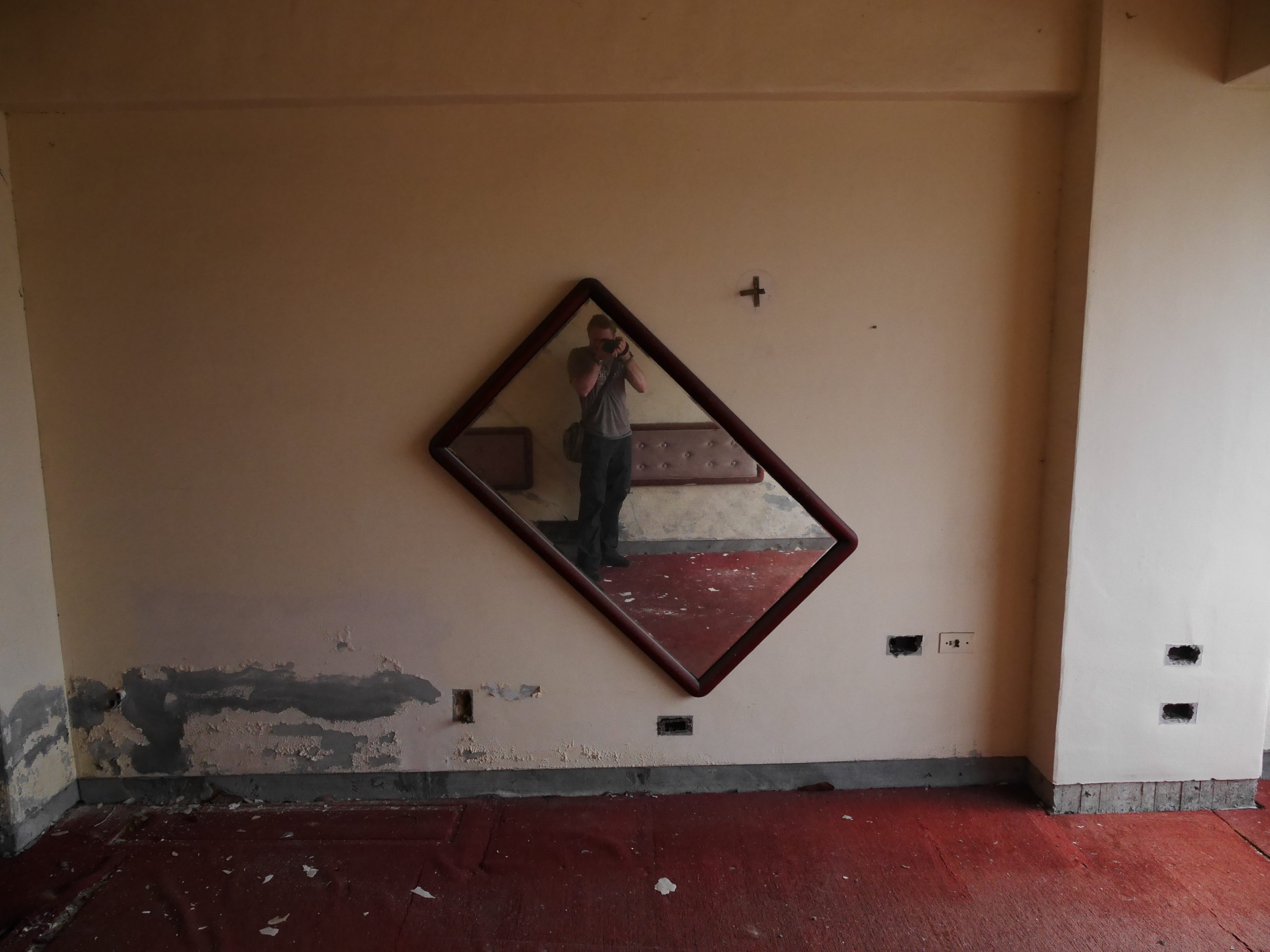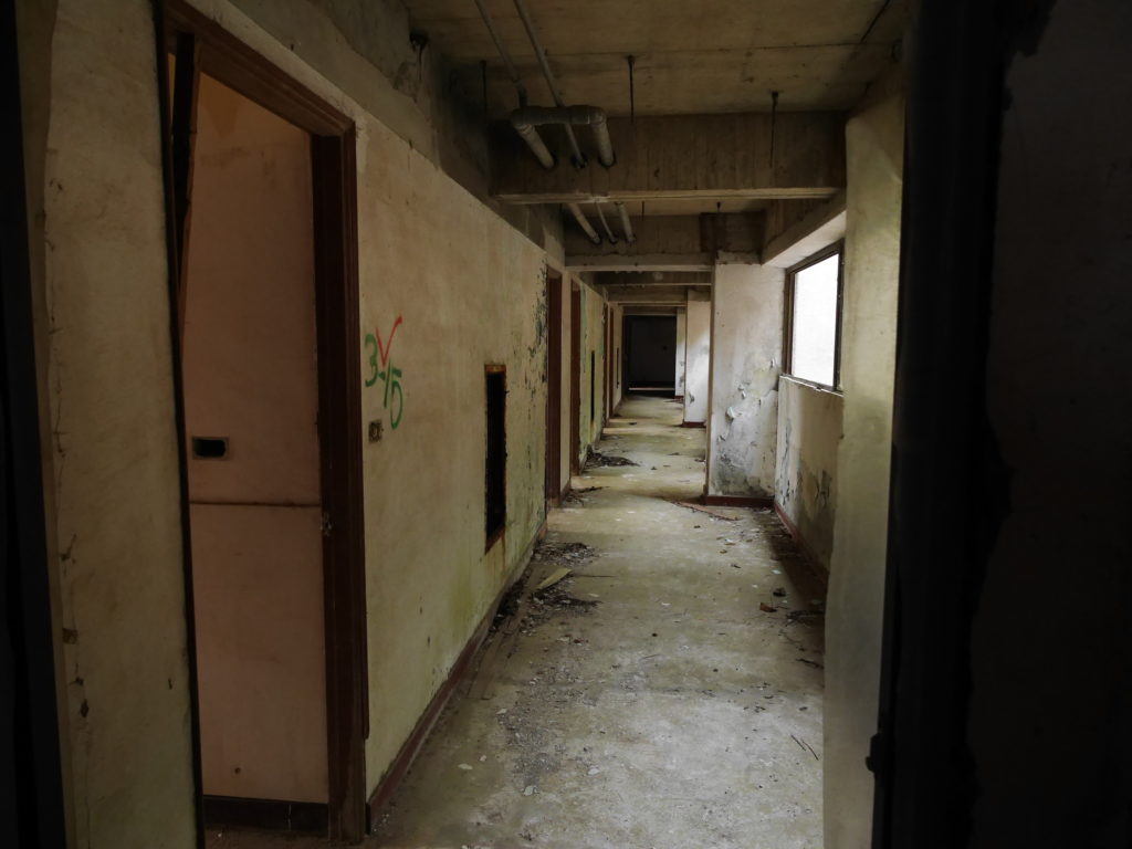 It didn’t take us long to realize that most rooms look more or less like the one above. Normally I would at least look in to each and every one of them but this time it didn’t feel necessary. What surprised me was that the windows in most rooms were whole and I couldn’t see plants growing in any of them. In most abandoned buildings the opposite is true. Once we reached the upper floors we were no longer limited to exploring the inside, but could also look out the windows and get a better view of the outside.