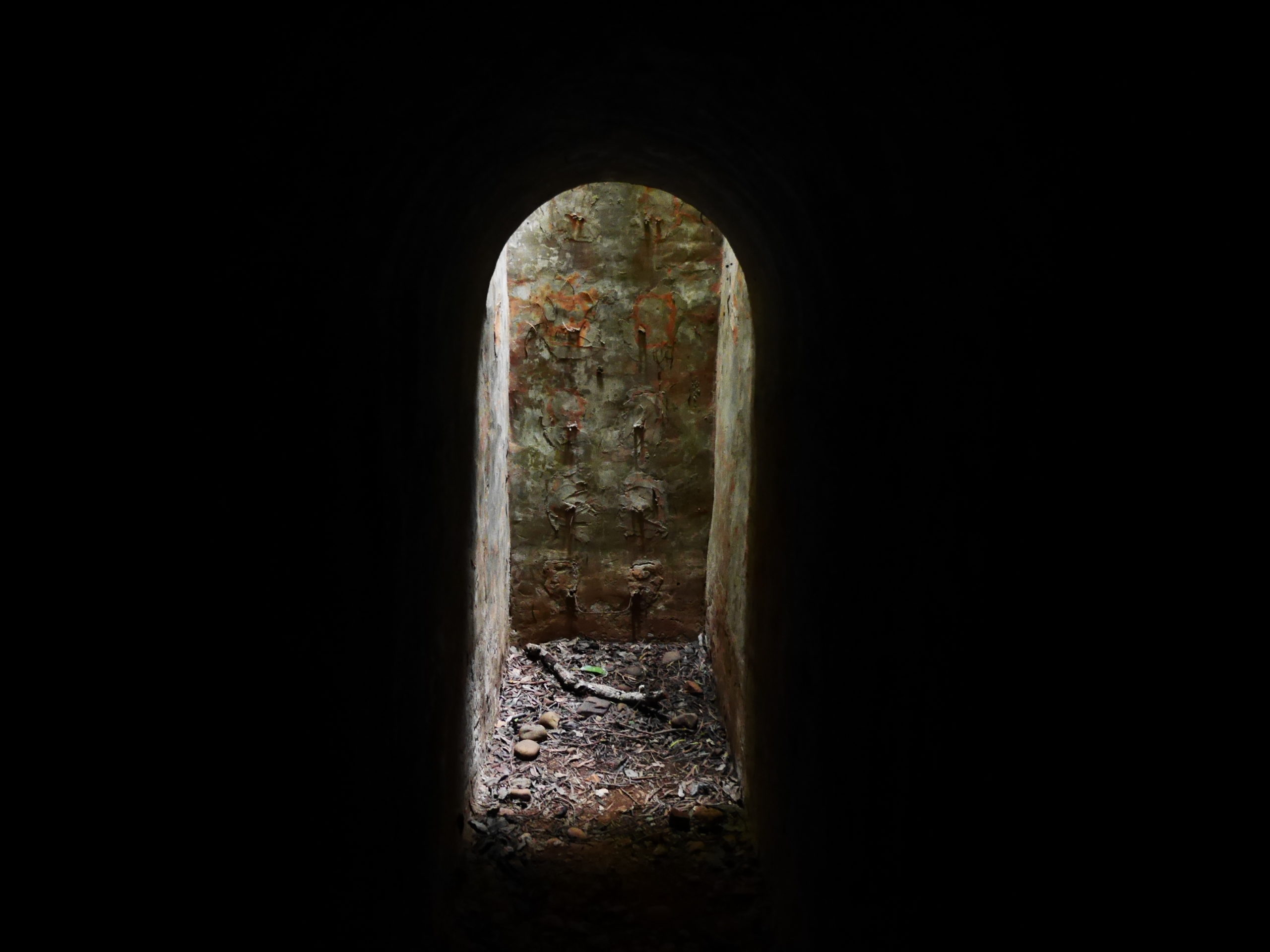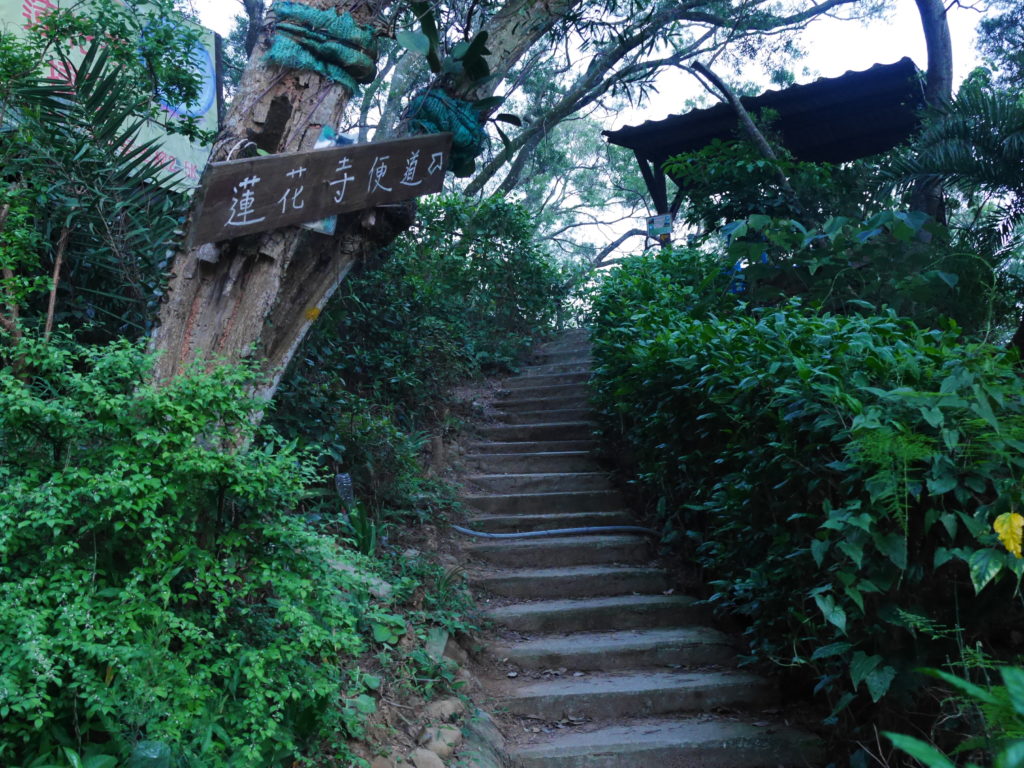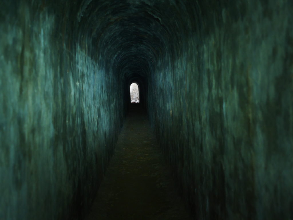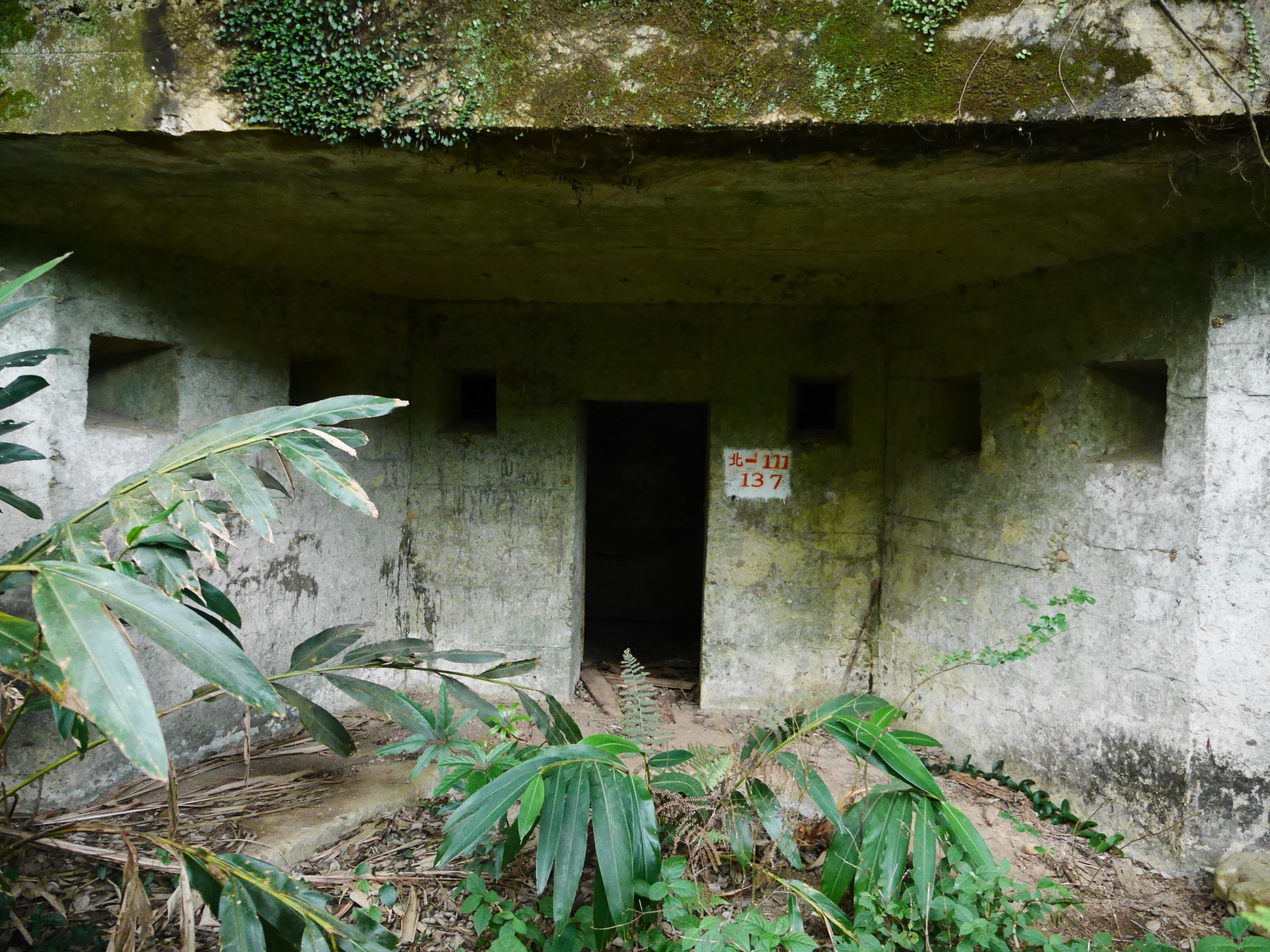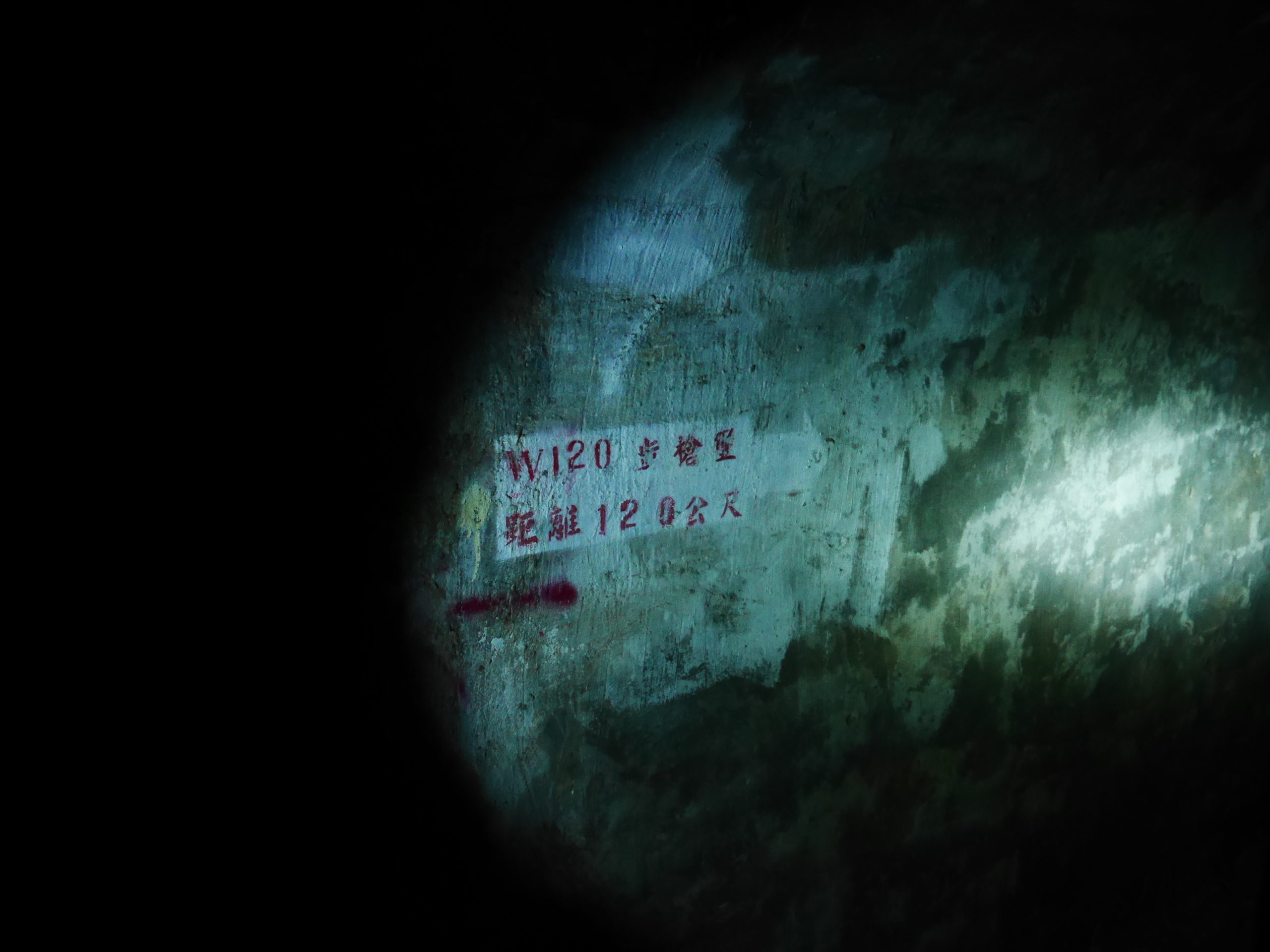 When you reach the cafe turn right and go up the stairs, following the signs towards 蓮花寺. After a climbing for a short distance you should see a large fallen tree by the side of the trail. Just around the corner from the tree, the trail passes by an overgrown bunker, this is the first entrance. You will need to get down on your hands and knees to be able to get in. Inside there is a hole in the center of the room with a ladder on one side, go down this ladder and you are in the tunnels. Quick note before I continue, there’s no light down there, bring a good flashlight and extra batteries, do Not rely on the flashlight function of your phone.