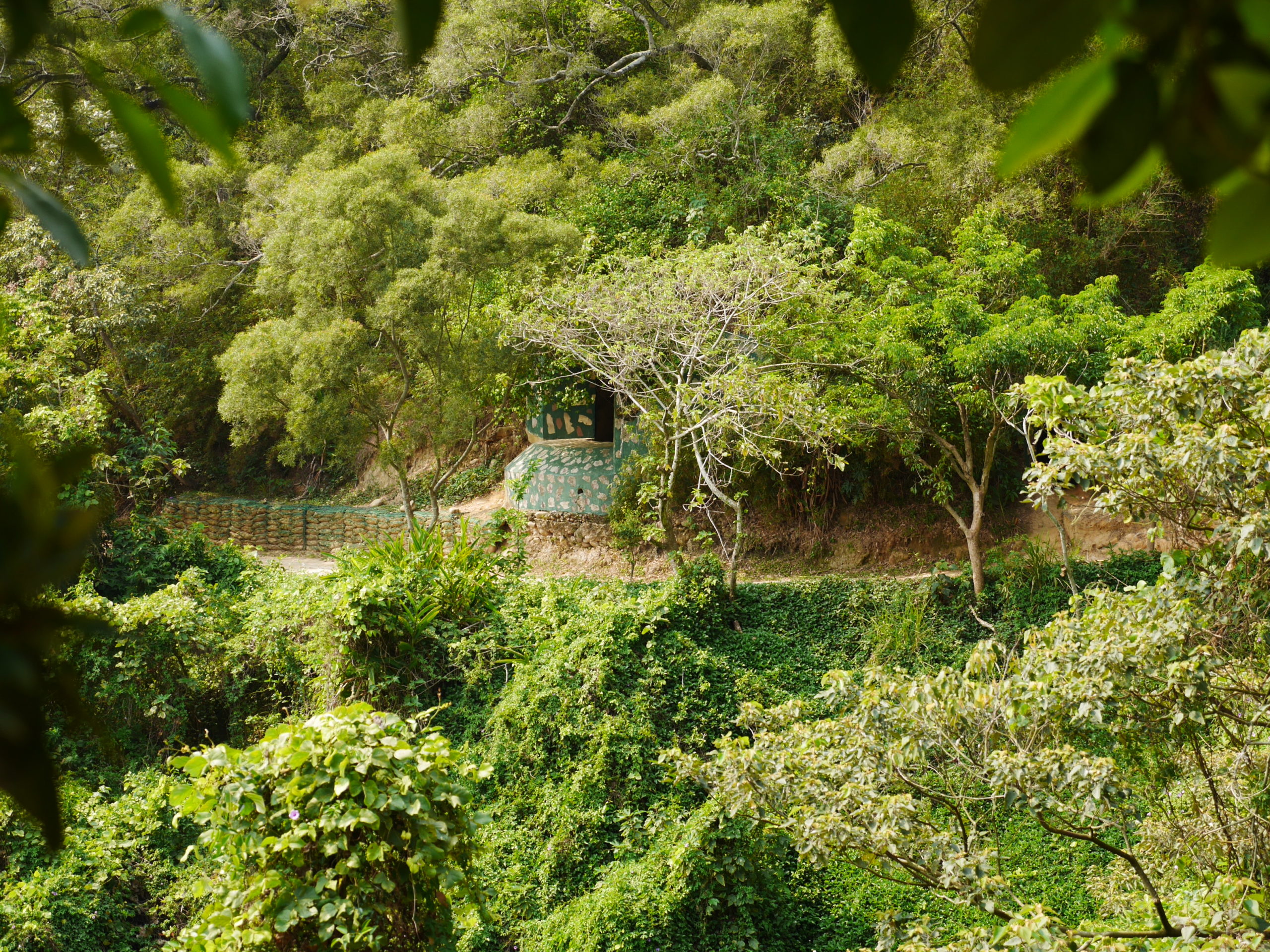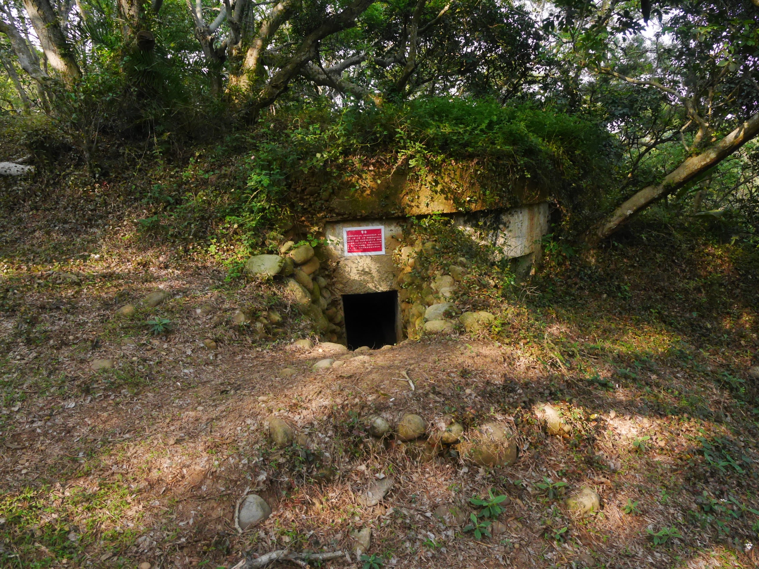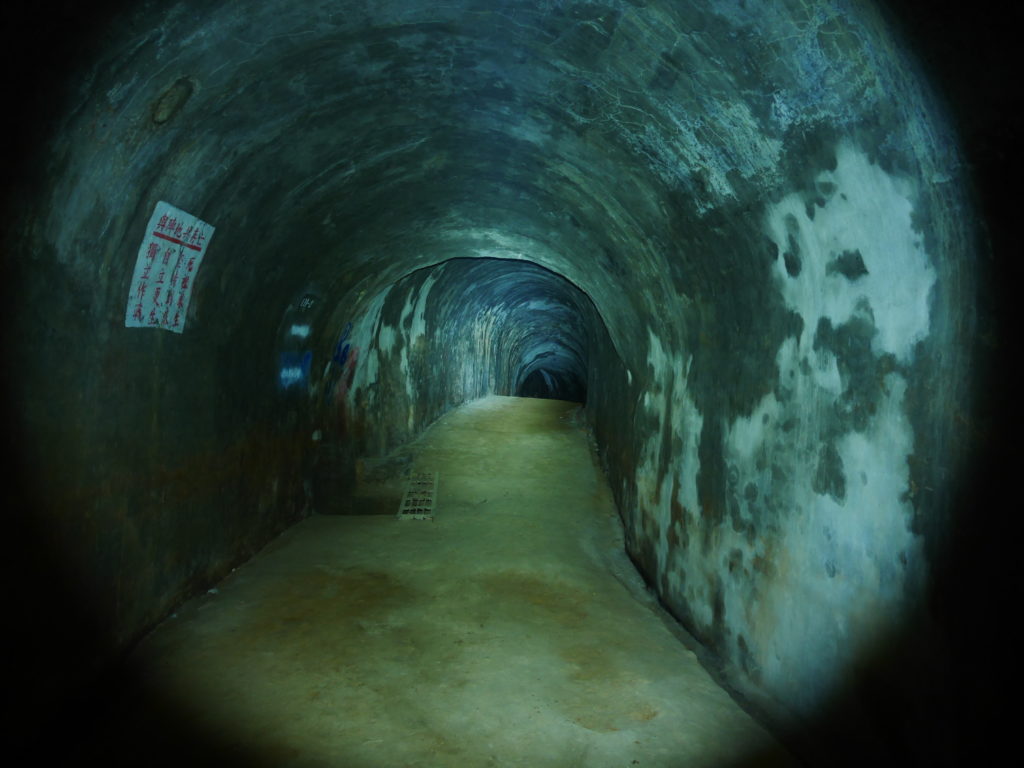 In case you want to explore these tunnels by yourself, perhaps you want to check how well my map matches reality, here’s how to get there. Note that this leads to the two entrances that I know how to find from the outside. Go to the Fengqi Sunset Trail just north of Hsinchu City. Follow the trail for about two kilometers until you reach a viewing platform with several small cafes. If you want to get a guided tour of the tunnels, talk to the owner of the cafe. On the way you will pass by a bunker and a closed-off tunnel entrance. You can explore the bunker but the tunnel connecting it to the rest of the system is blocked. The large, closed-off tunnel is reachable from the inside but you cannot enter here.