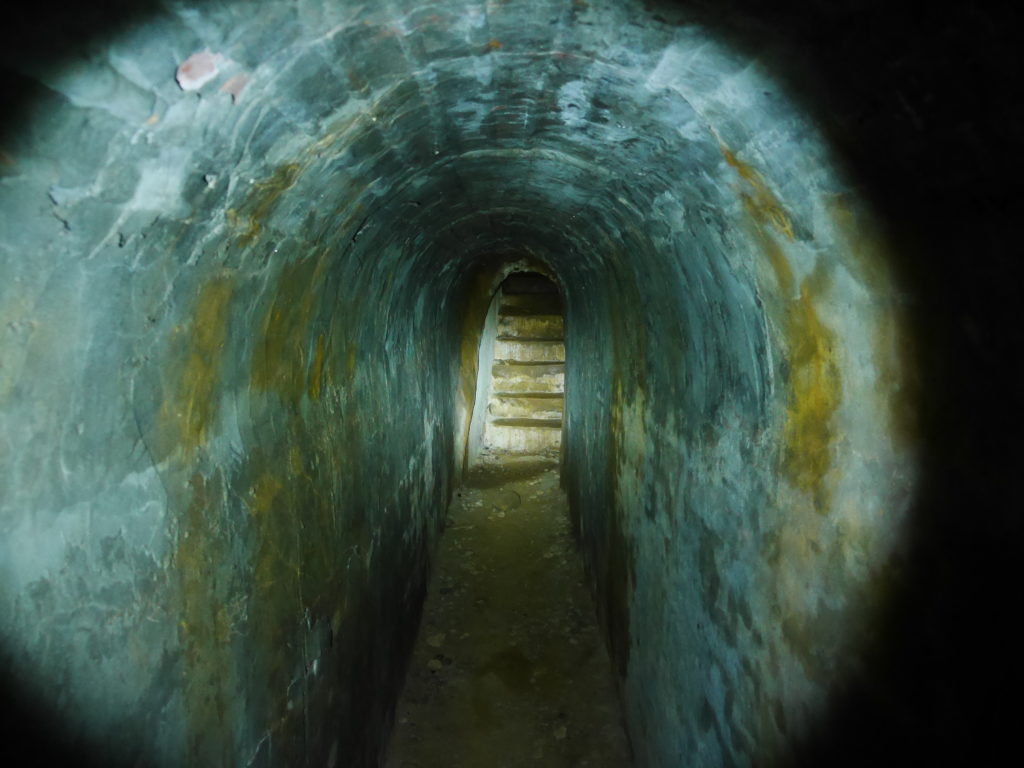 To reach the second entrance (bunker 125) keep following the trail for a few hundred meters, it will eventually reach a set of steep stairs down to another part of the trail. The bunker entrance is right before these stairs, it’s set back a few meter from the trail on the left side. Once your in the tunnel it’s time to take out the map and start exploring.