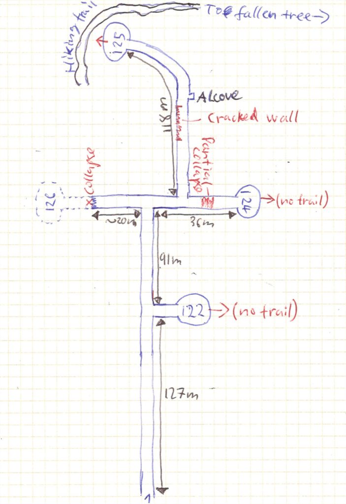 Like I said it took me two visits to explore the entire system but I finally covered it all. I also had to redraw the map several times, connecting all the tunnels in the correct way, adding in more detail and so on. I finally got a result I can be satisfied with. Here it is.