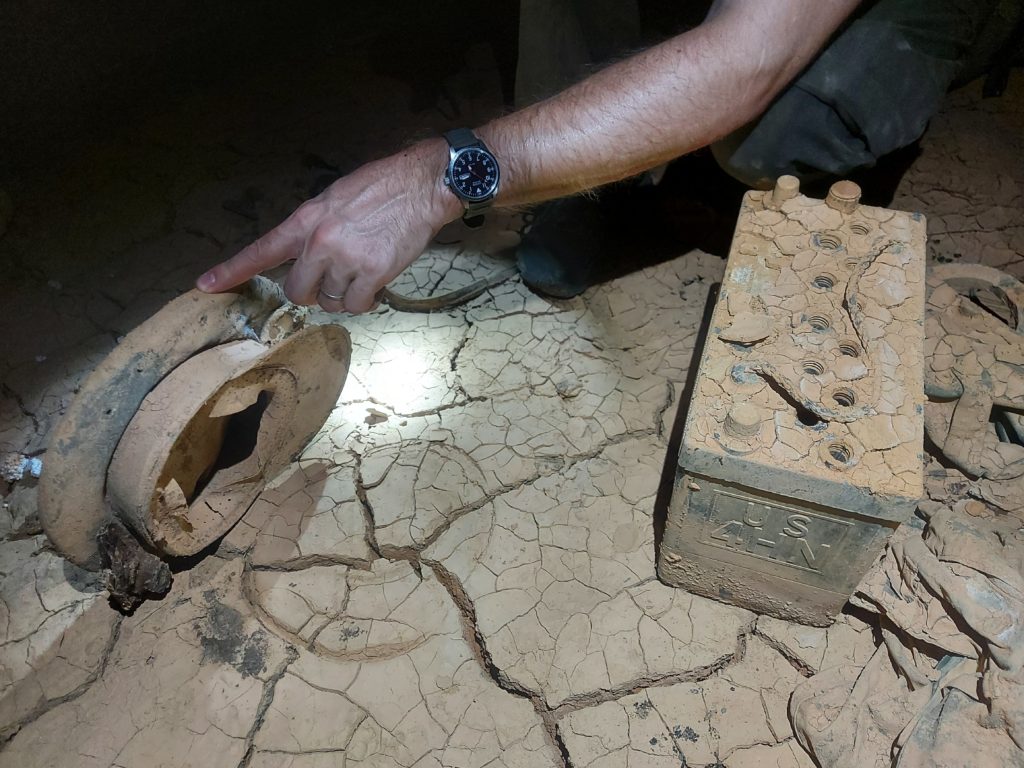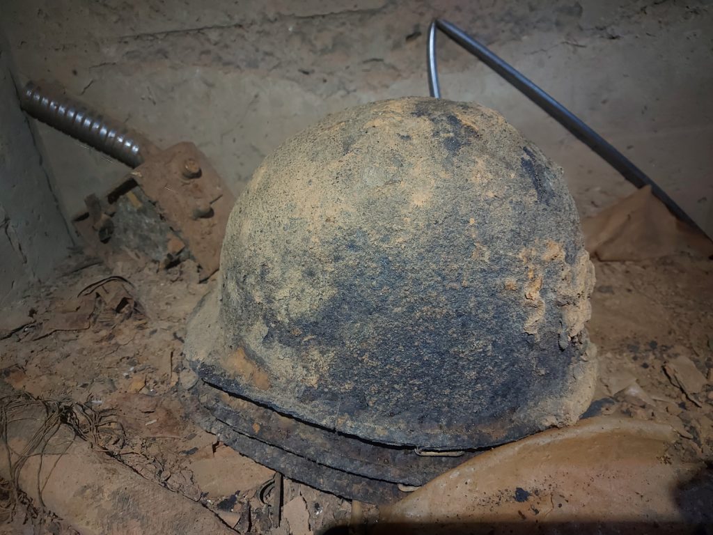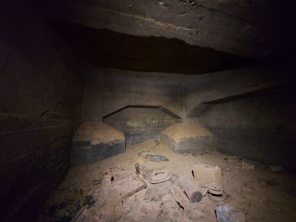 The second area that I deemed too dangerous during my solo visits was the partially mud filled rooms beneath Bunker 137. Now we really took the time to explore this area. There’s a small storage room just by the side of the tunnel and in there we found a bunch of old military equipment including helmets, a number of hats and an old battery. For all I know there could be lots of other stuff hidden under the mud. We continued further into the tunnels hoping that we could enter the second level from there. Sadly this tunnel was also blocked after a few meters. On the bright side, this meant that I had managed to fill in all the missing details on my map. You can find the complete map lower down, below the pictures.