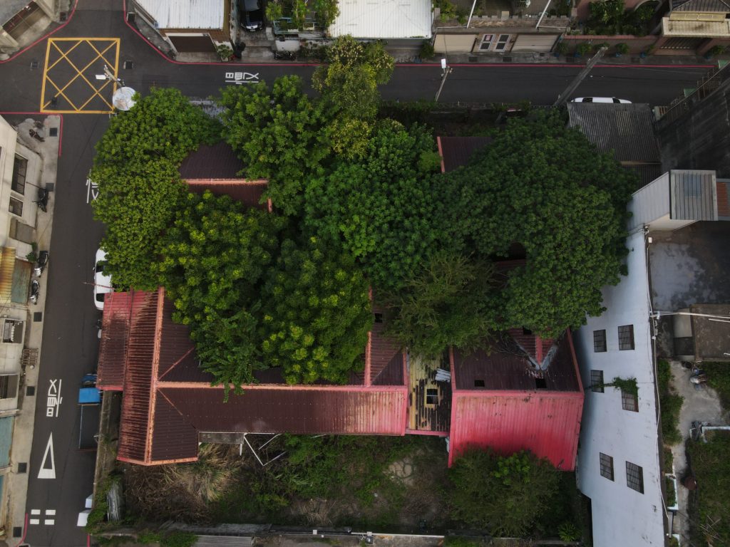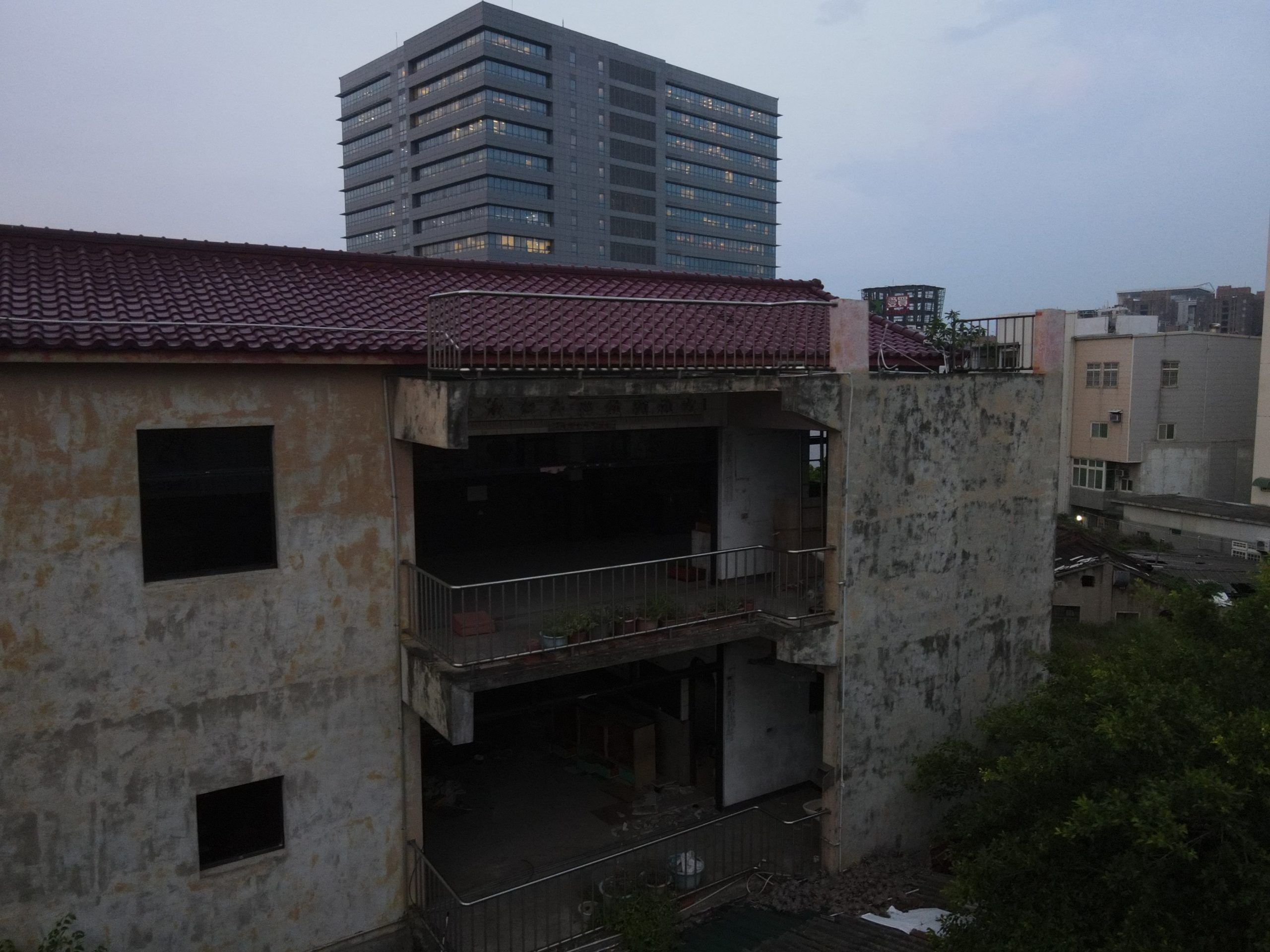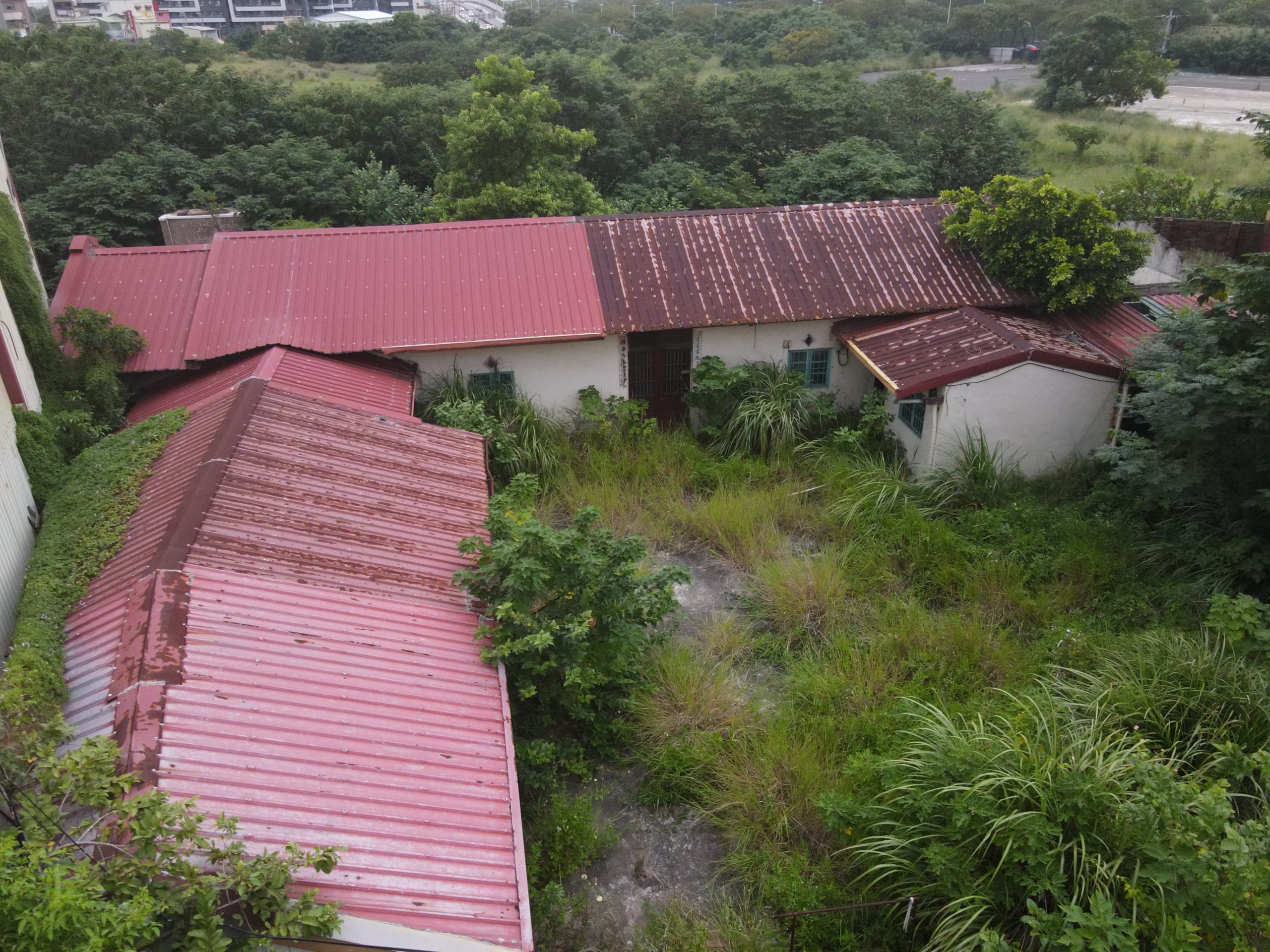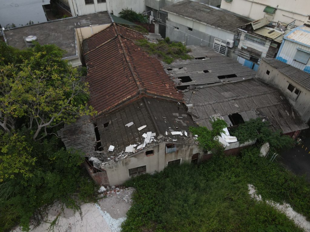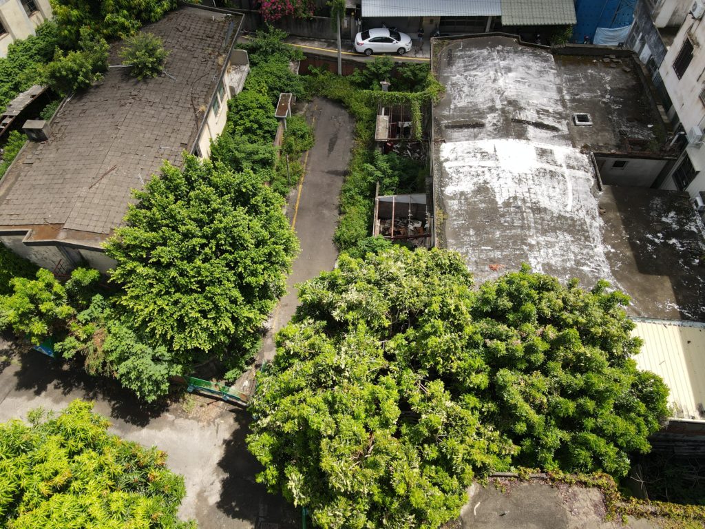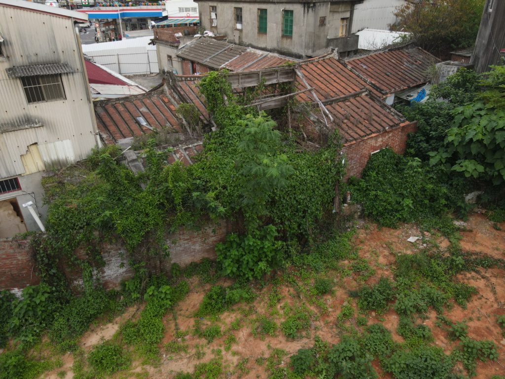 Since starting my new job I’ve been trying to find a good route to go to work in the morning. In the hopes of finding a way to bypass some of the rush hour traffic jam, I tried a bunch of small alleys and backstreets. While exploring some of these alleys I noticed a building with dark empty windows, surrounded by the type of corrugated metal fence that I’ve seen around some other ruins. Since I’ve made this particular alley part of my daily commute I’ve been able to confirm that the place is indeed abandoned. I don’t know anything about this place except that it looks very much like a traditional Taiwanese house with three buildings in a horse shoe shape around a courtyard. There are also a number of other buildings attached to it, I guess you could call it a compound. What’s interesting is that it’s right next to one of the busiest streets in the city yet it seems to have been left alone until recently when the fence was installed.