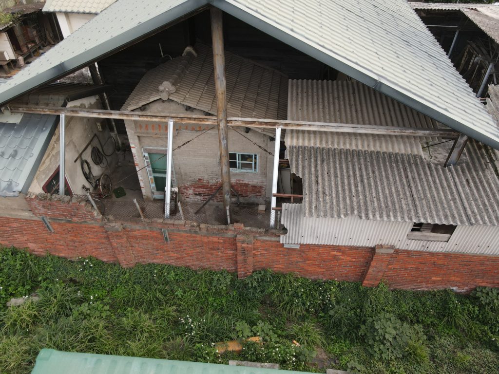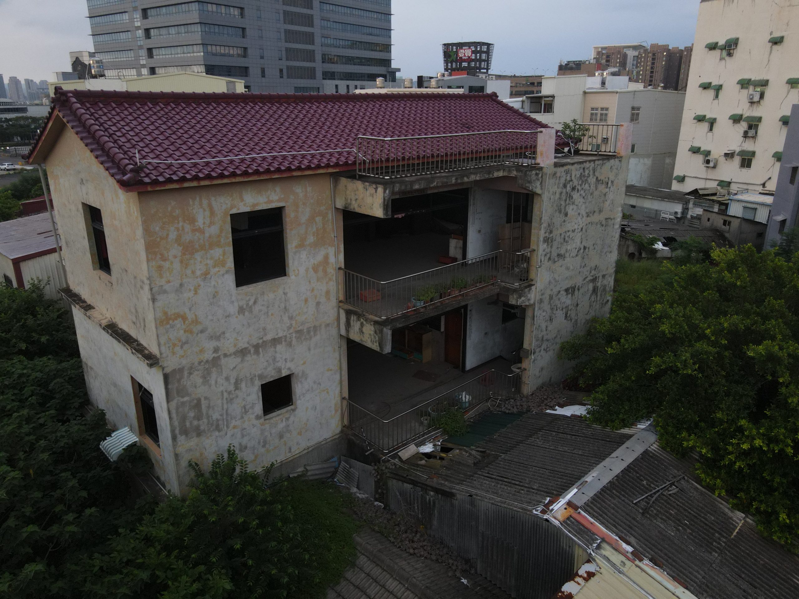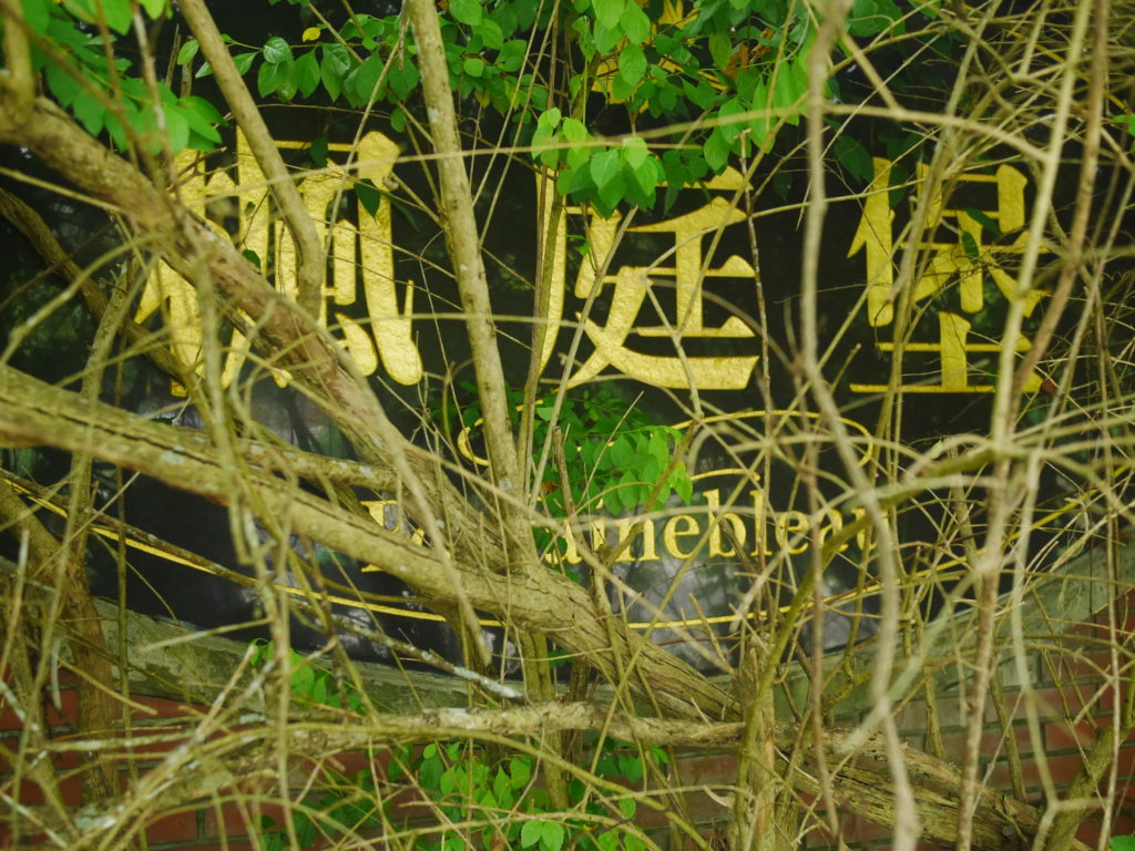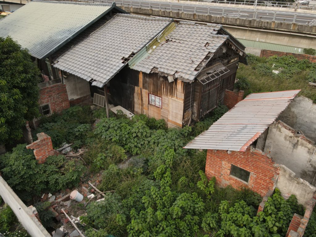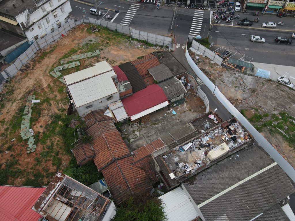 Since starting my new job I’ve been trying to find a good route to go to work in the morning. In the hopes of finding a way to bypass some of the rush hour traffic jam, I tried a bunch of small alleys and backstreets. While exploring some of these alleys I noticed a building with dark empty windows, surrounded by the type of corrugated metal fence that I’ve seen around some other ruins. Since I’ve made this particular alley part of my daily commute I’ve been able to confirm that the place is indeed abandoned. I don’t know anything about this place except that it looks very much like a traditional Taiwanese house with three buildings in a horse shoe shape around a courtyard. There are also a number of other buildings attached to it, I guess you could call it a compound. What’s interesting is that it’s right next to one of the busiest streets in the city yet it seems to have been left alone until recently when the fence was installed.