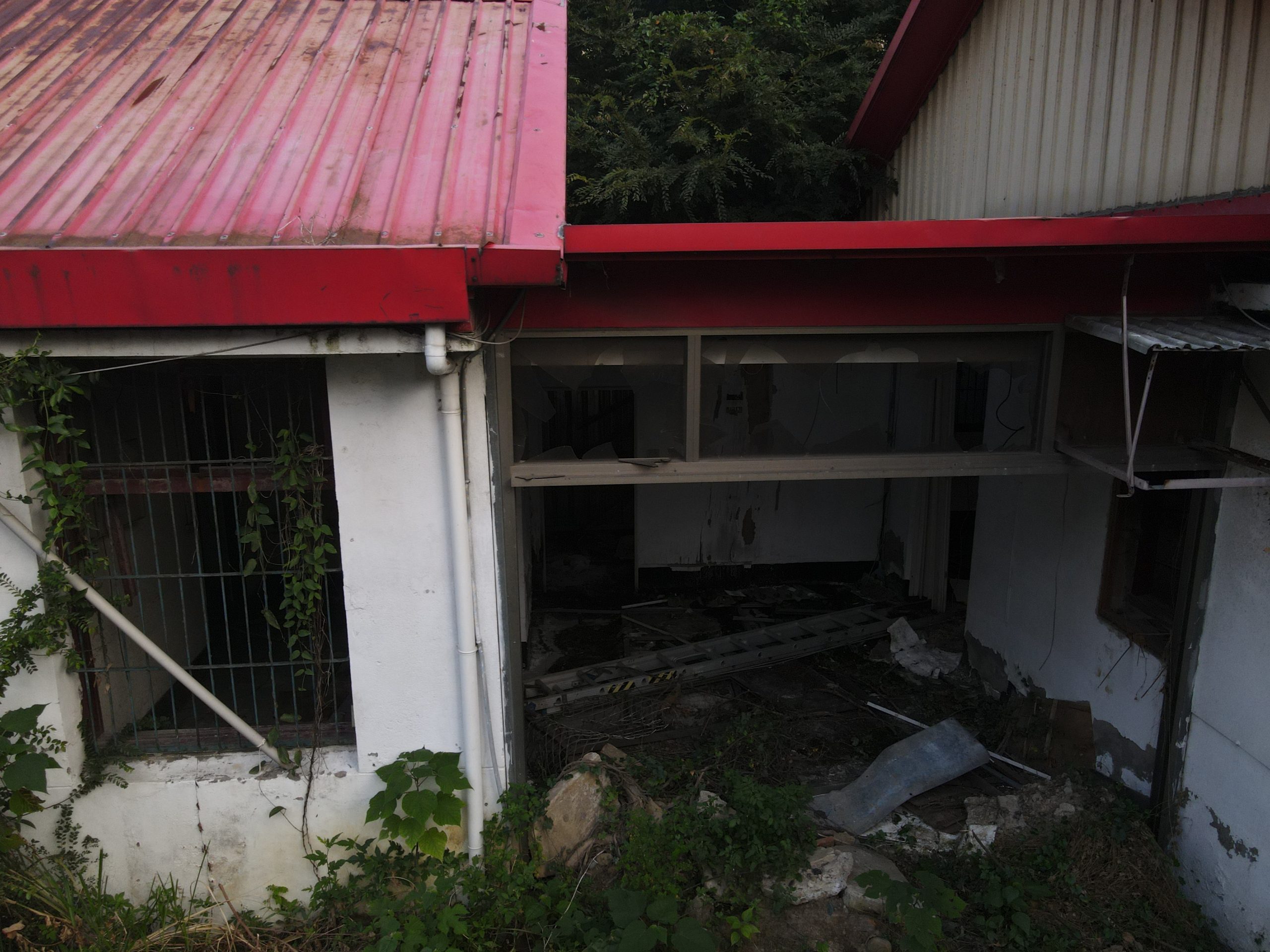 Across the street from one of the breakfast shops me and my wife used to frequent is a house that looks like it’s been untouched for years. I’ve always been curious about it but have never been able to get more than a glimpse as the concrete wall around it is high and topped with a mix of razor wire and broken glass. It feels kind of bizarre that someone would care so much about security but then just leave the place to crumble. Thanks to the drone I was able to get a better look of the other side of the wall.