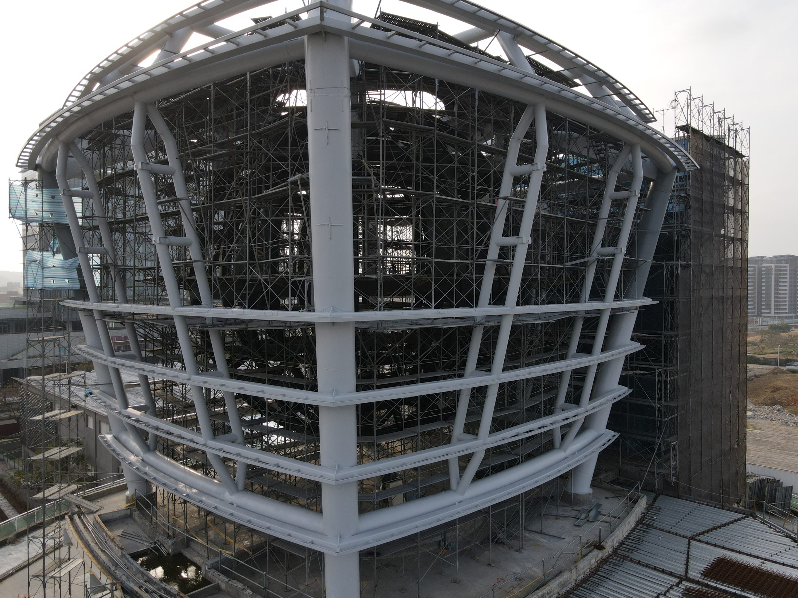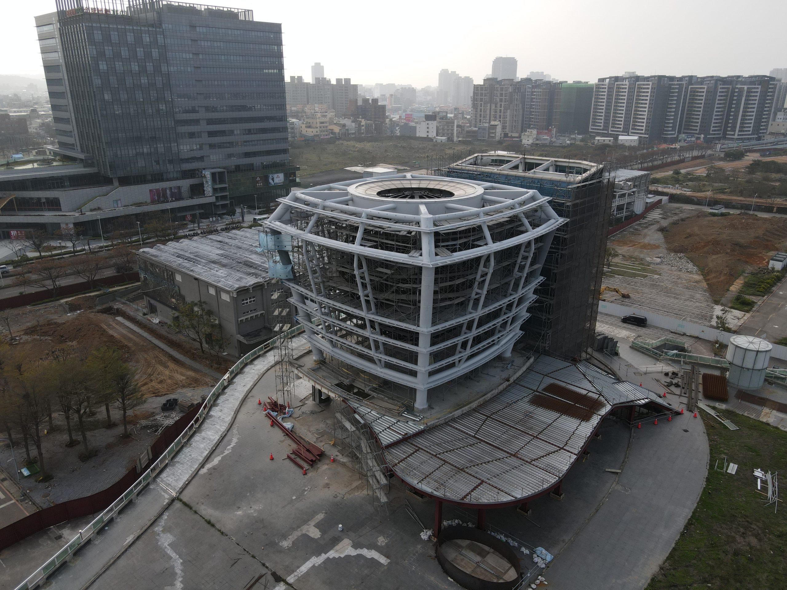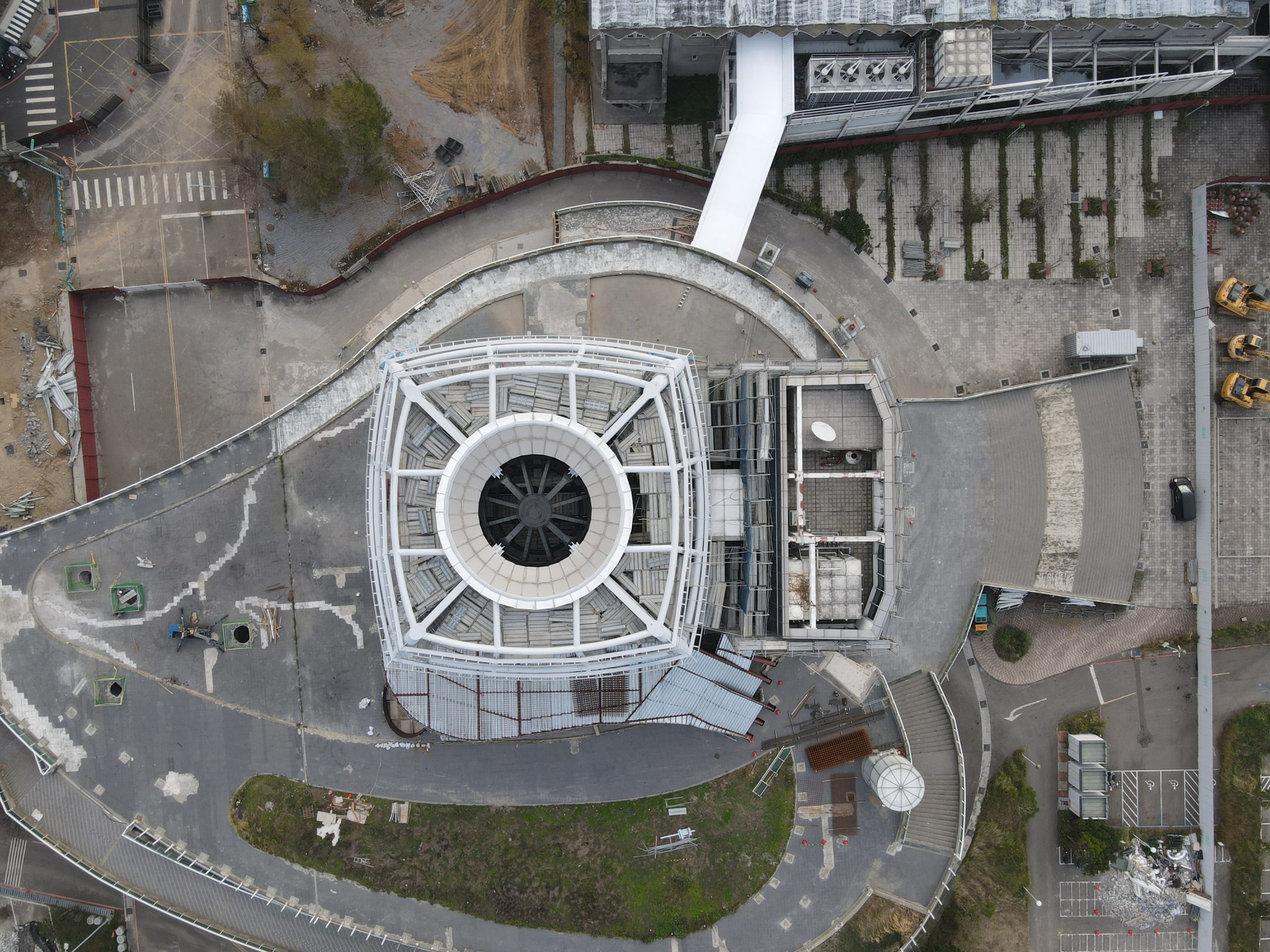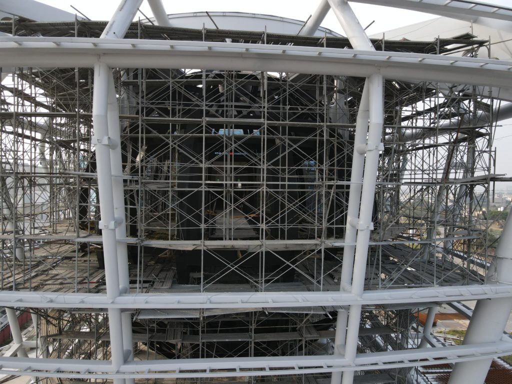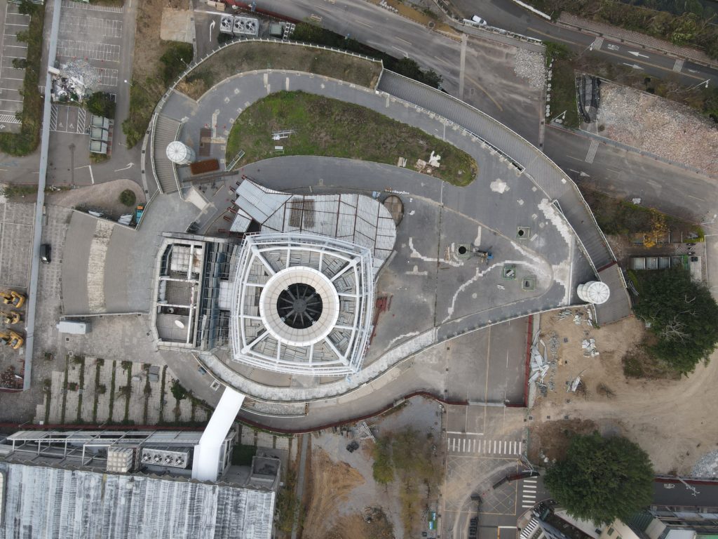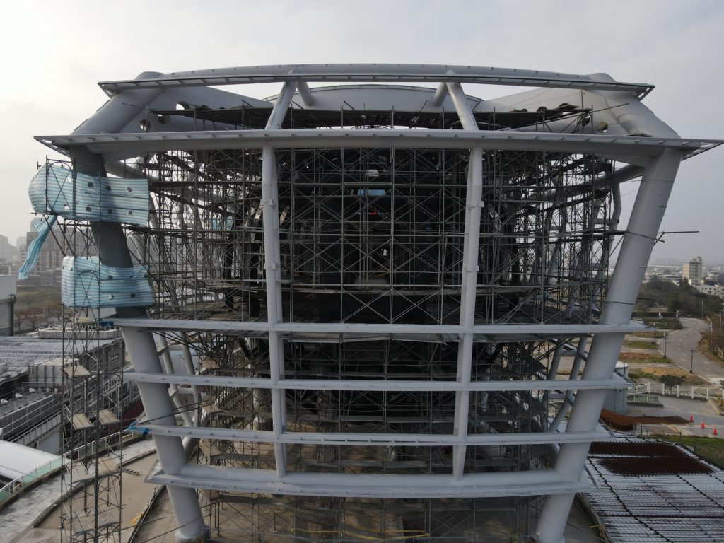 Sometime around 2012 or 2013 Hsinchu City acquired the Taiwanese pavilion from the 2010 World Expo and had it rebuilt next to one of the main roads in the city not too far from the downtown area. It is shaped like a giant floating lantern with a big sphere inside covered in screens that could project various images. At first you could only admire it from the outside but in 2015 (if memory serves) they built a big shopping mall next to it. Business was bad for whatever reason and the place closed within a year. It has been deteriorating since then. Now I’ve finally been able to explore it after it closed its doors for good.