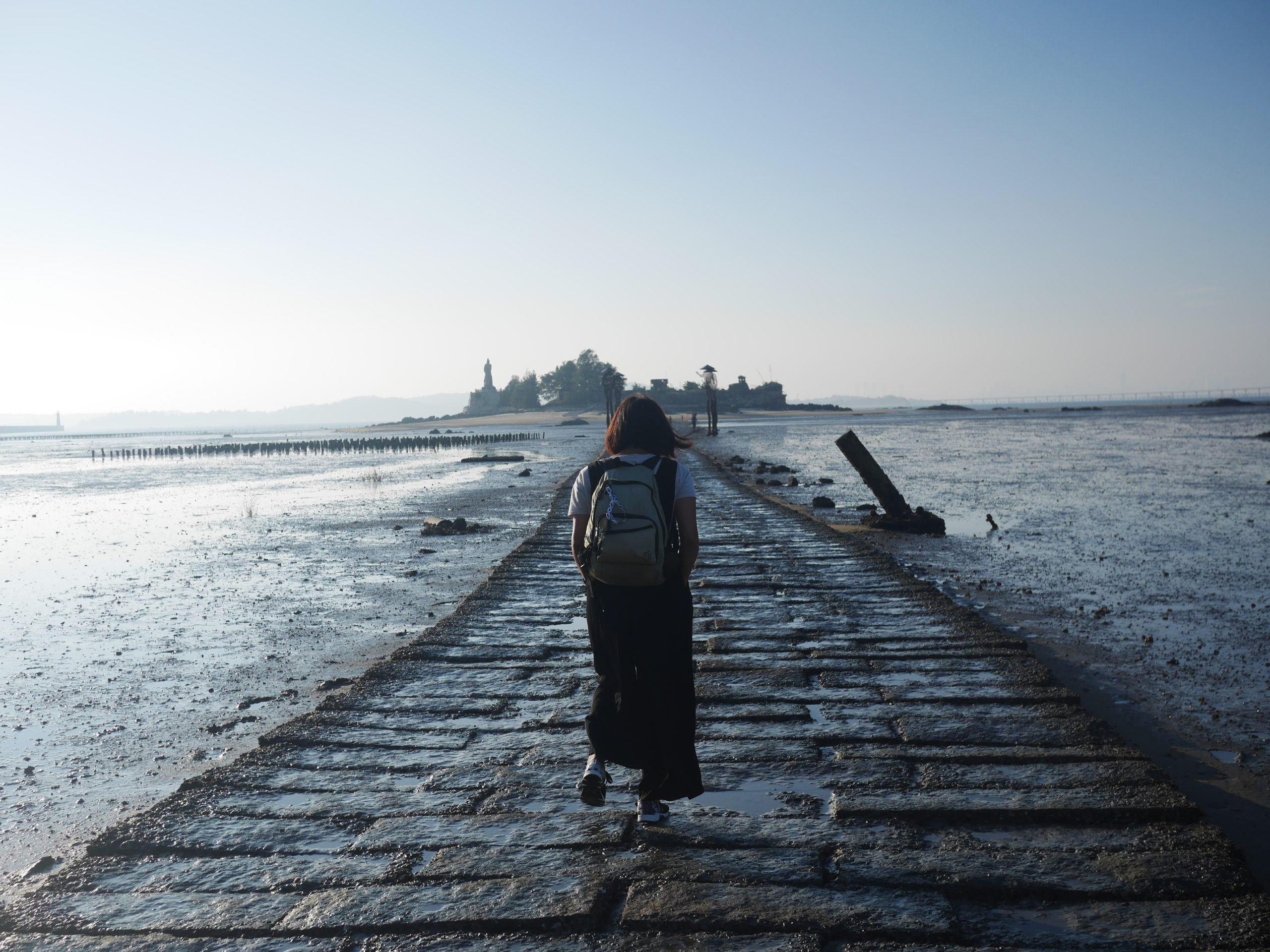 Just off the coast of the main island is a tiny little islet barely big enough for a couple of bunkers called Jiangongyu. The water here is shallow and at low tide it’s possible to walk out to the island on a walkway made from large stones. It’s kind of like Mont-Saint-Michel only much smaller, and instead of a monestary  there’s a bunch of bunkers from the 1950’s.