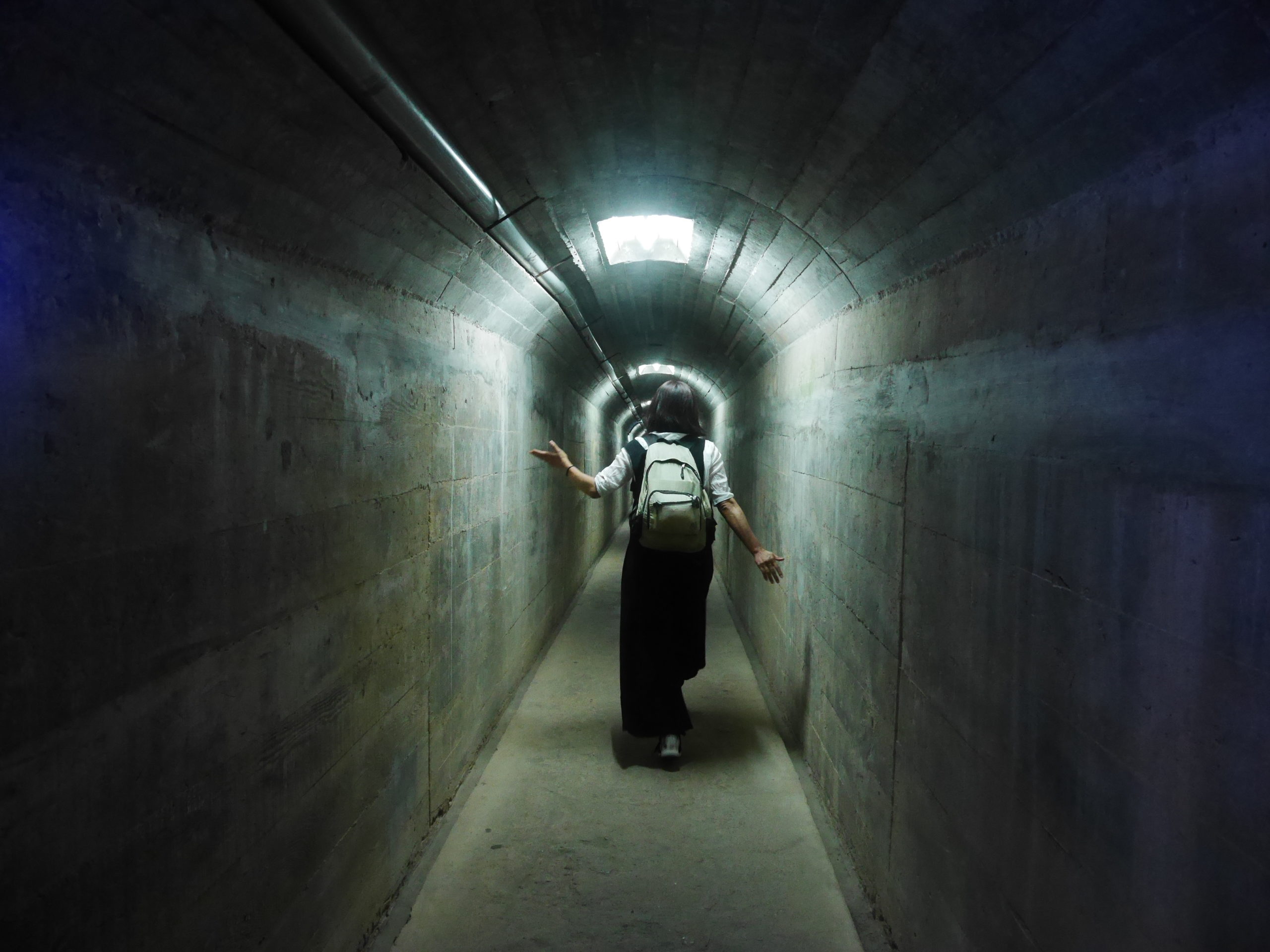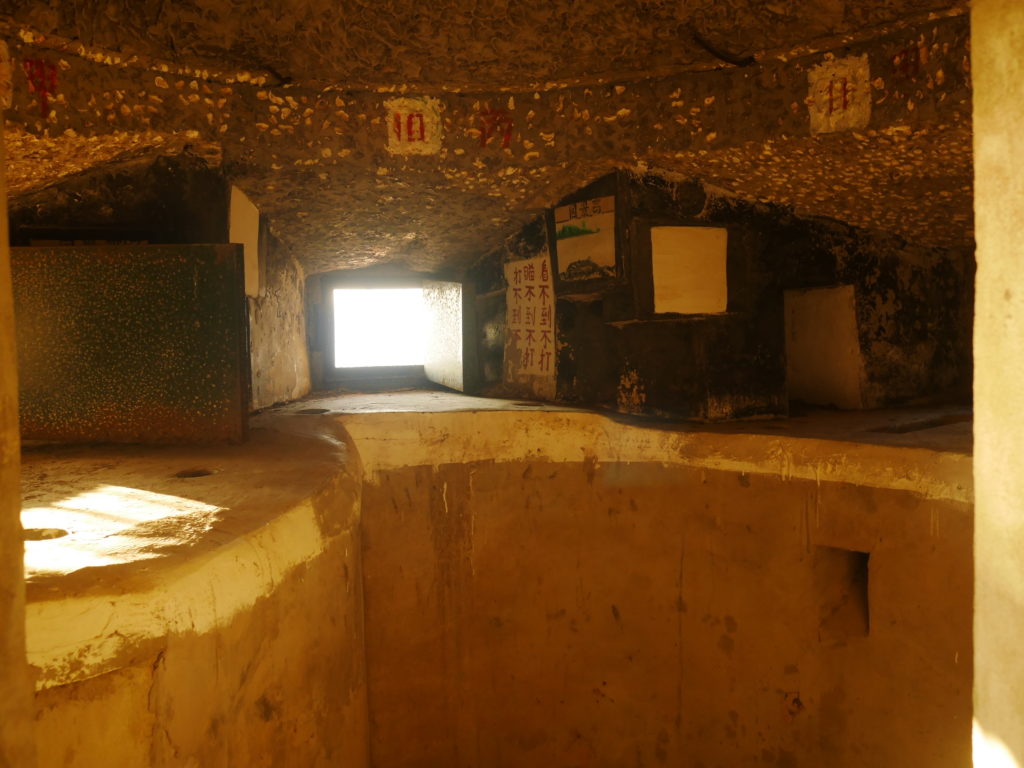 At the very tip of the northeastern end of Kinmen, as close to the Mainland as you can get, lies Mashan Observation Post. As the name indicates, this was a place where Taiwanese soldiers could observe the Chinese side and alert their commanders of any sign of an incoming attack. Nowadays tourists can use the powerful binoculars in place to observe Chinese civilians taking a stroll along the beach. Except for the actual observation bunker, there are some fortified living quarters / offices, and a tunnel connecting the two. Since you’re not forced to take a guided tour, I had the time to take some good photos down in the tunnel. I really recommend this place.
