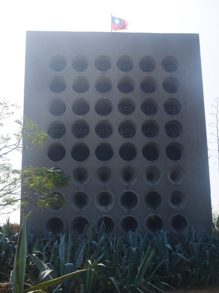 Propaganda was an important part in the struggle between Taiwan and mainland China and one of the ways the Taiwanese government sent out their messages was by a giant speaker on the coast facing the mainland. From a distance it looks sort of like a giant speaker from the 80’s, just a square gray block with a bunch of round holes one one side. It’s only when you get up close that you realize it’s made of concrete and as big as an apartment building. Unfortunately you’re not allowed to go inside to see the speakers up close but I didn’t really mind because the surrounding landscape has a certain barren beauty to it that you don’t see in mainland Taiwan.