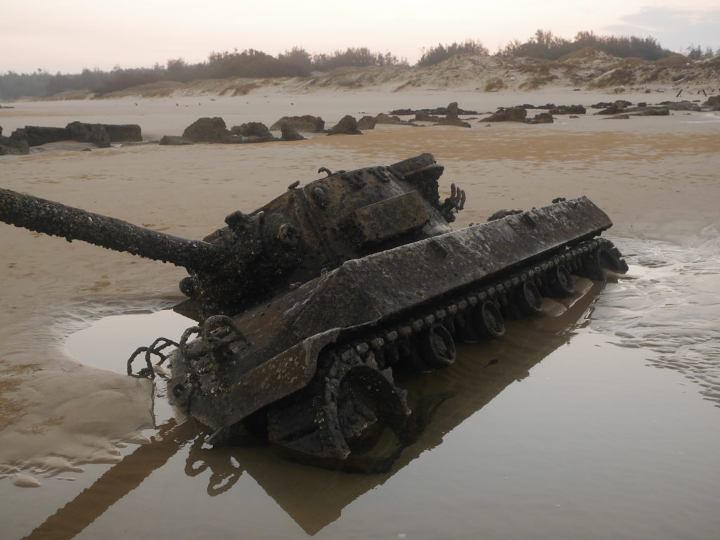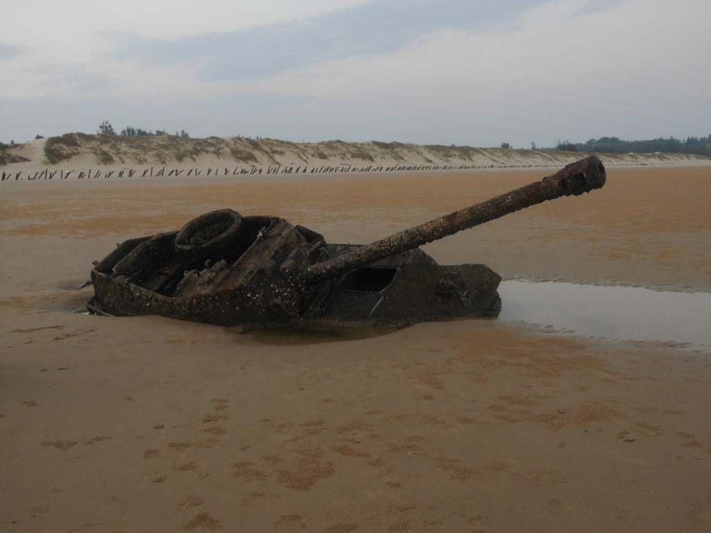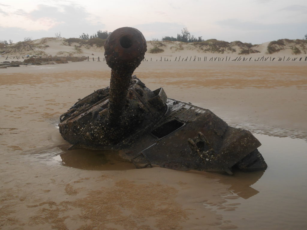 Down on Ou Cuo Beach there is an old tusted tank half buried in the sand with the track on one side visible and the other beneath the surface. Several of its hatches are gone, probably torn off by storms during the years, and what’s left of it is covered in barnacles. There are plenty of abandoned buildings on the island but this is unique. I think it’s really cool, well worth a visit for anyone interested in abandoned things or military history. On a side note, Ou Cuo Beach itself is also really nice.