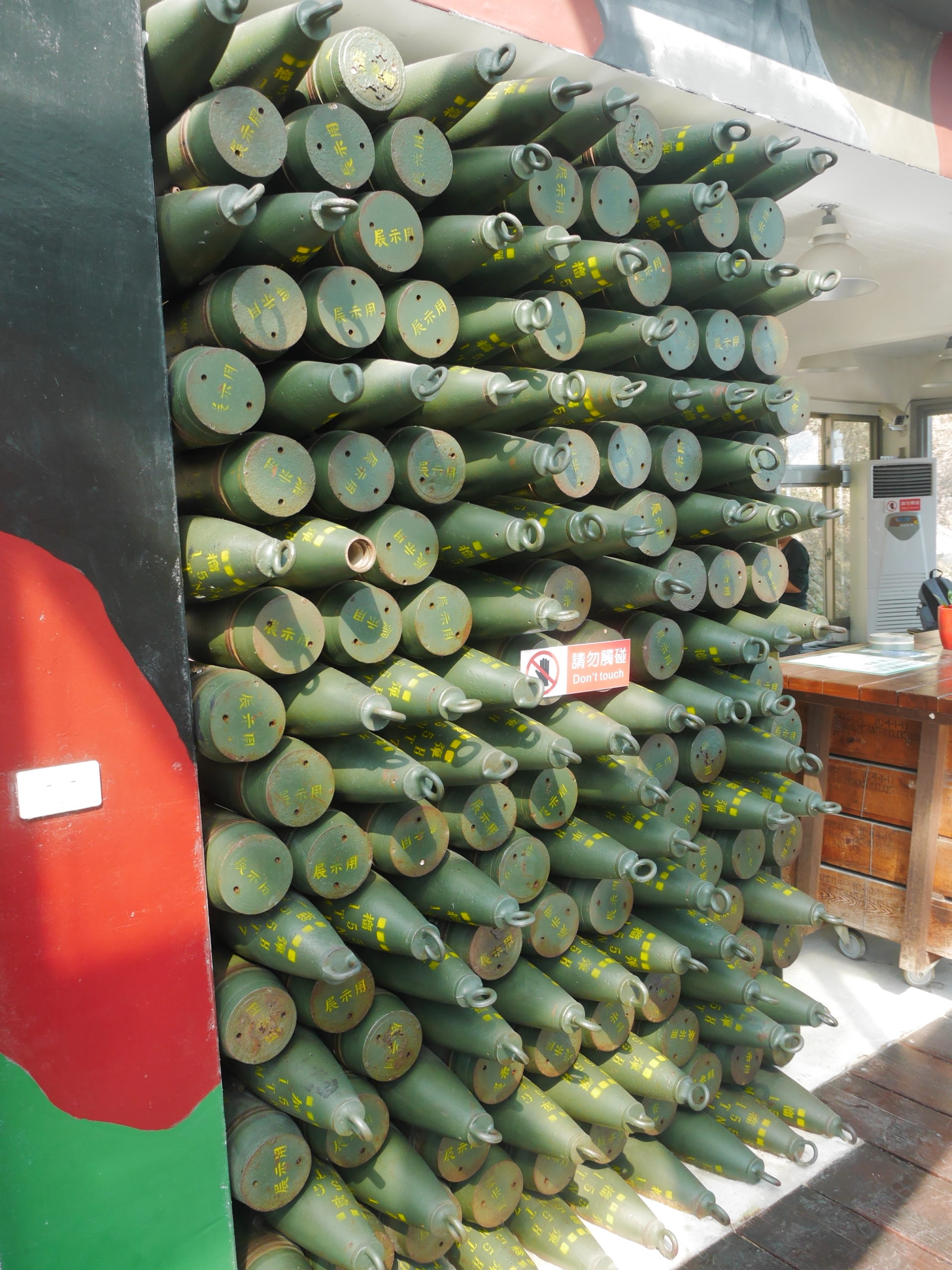 There are several places on Kinmen where you can see various tanks, canons, airplanes and other military equipment. In general, these are just static displays with an information sign in front. At Shinshan Howitzer Front however, you can get a far more immersive experience. As the name suggests, this place is an old artillery fort where they have a big 203mm Howitzer aimed at Mainland China. Every half an hour there is a kind of theatrical show where a squad of soldiers show how they load in a shell and fire it with an impressively loud bang from some kind of fire cracker; amazingly the baby didn’t get scared by it. I think this is a pretty fun experience and as a bonus, there are several other weapons on display outside the fort.