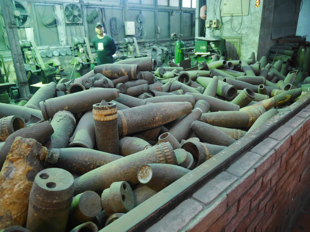 During the artillery battles of the 1950’s thousands of shells were fired on Kinmen from the Mainland side.   Many were of course turned into shrapnel but a significant portion of the bombardment was in the form of propaganda shells that exploded up in the air, spreading communist propaganda leaflets over the island. One enterprising blacksmith realized that the steel in all these artillery grenades is pretty high quality so he started using it to make knives. He turned the little family owned knife making company into  Maestro Wu Bombshell Steel Knives which has grown to be quite big with several shops on the island. The most interesting one to visit is the main shop where you can see knives being produced as well as the large quantity of bombshells that they have on stock.