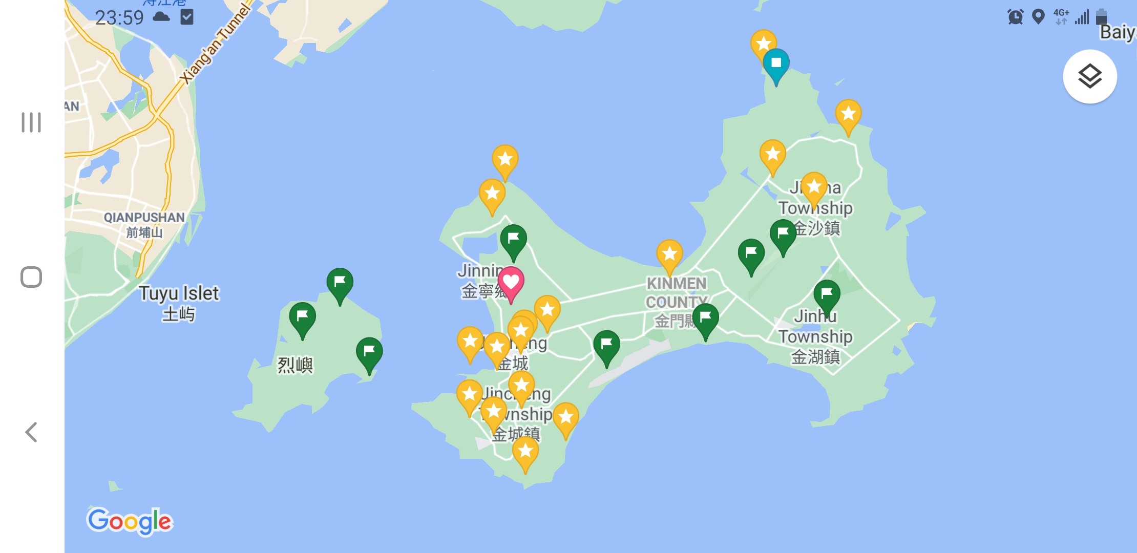 Map of Kinmen with the places we saw (starred) and the places still left to see