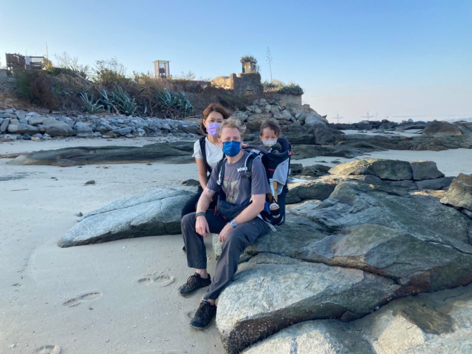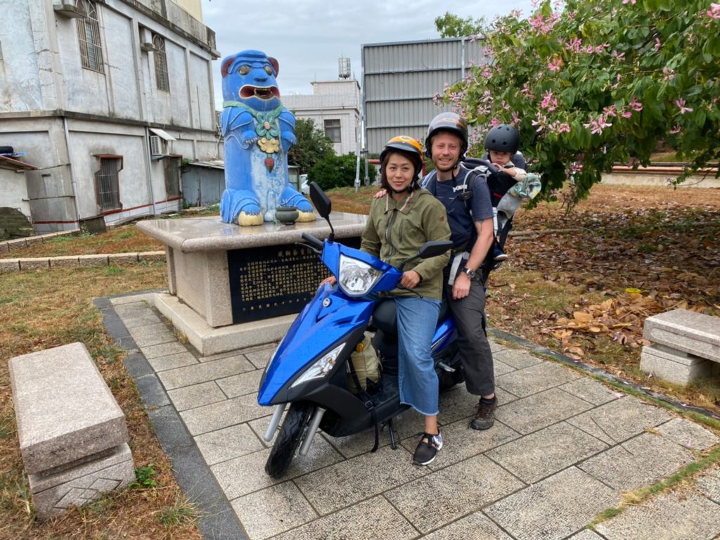 In my experience, the best way to travel around a small island like this is by renting a scooter; you are free to go wherever you like, you can make your own schedule, it’s easy to navigate in small village streets and you can park pretty much anywhere. If you know me then you know I also prefer motorbikes for longer trips but I understand that isn’t for everyone. On a small island however, there tends to be less traffic and distances are short so a scooter will work for more or less anyone. Of course, riding a scooter isn’t easy when you have a small child with you, but we found two ways around the problem, both involving the backpack carrier. At home I’ve done some shorter motorbike trips carrying the baby on my back and it works well because the carrier can be supported by the bike seat. This would require Yini to go on a separate scooter because there’s not enough space for a person behind the carrier. On Kinmen we went for another option however, Yini would sit in front driving and I would sit behind, carrying the baby in the backpack carrier. This was more tiring for me because I didn’t have much support, but it was nice because it felt like the old days when it was just me and Yini on the bike. As a bonus I was able to navigate, which wouldn’t be possible on two scooters unless we could rent one with a phone holder. Note that we brought our own helmet for the baby because rental shops rarely have good ones. Oh, and one more thing, our good friend Kai joined us for this trip which was very nice.