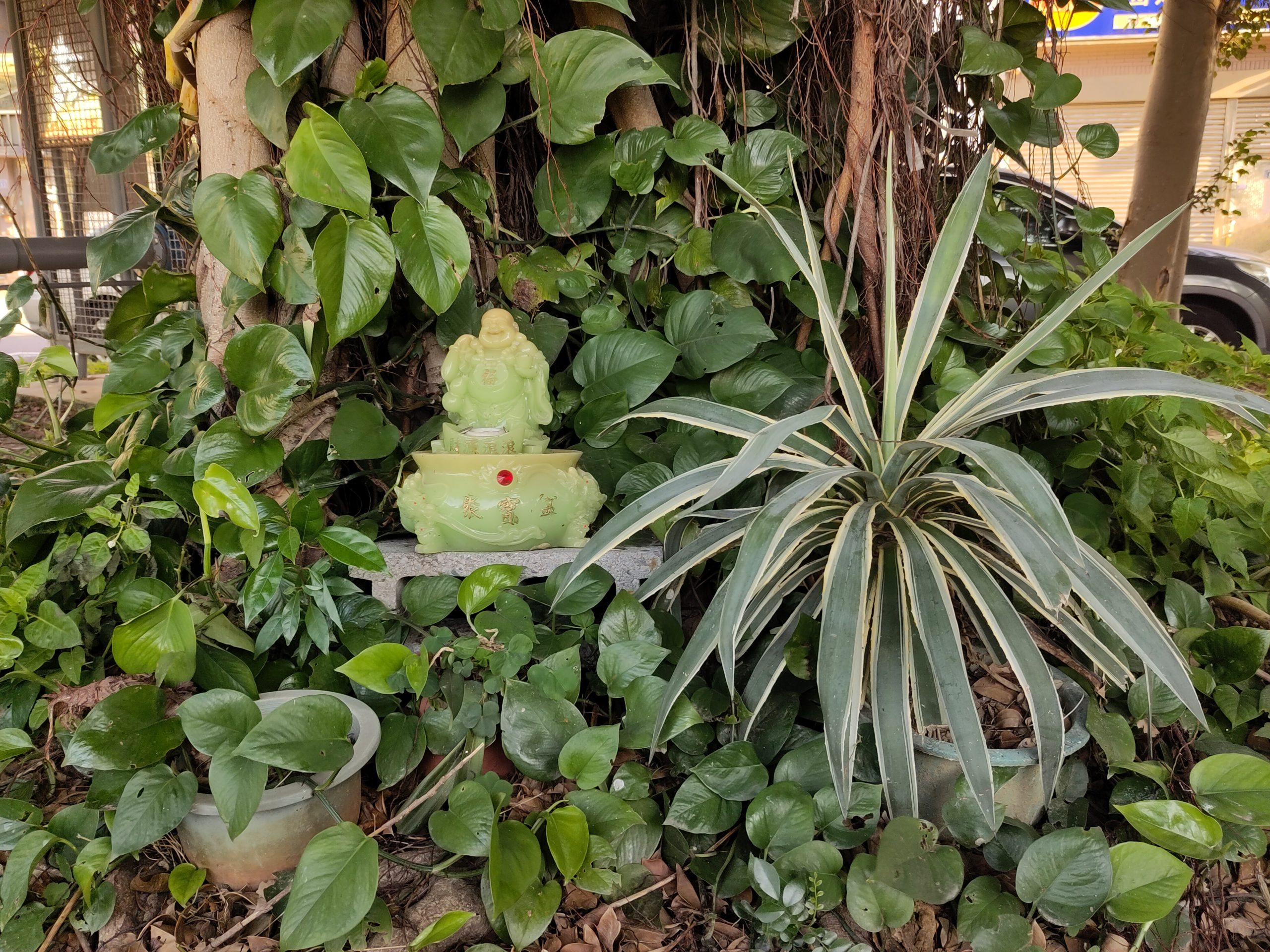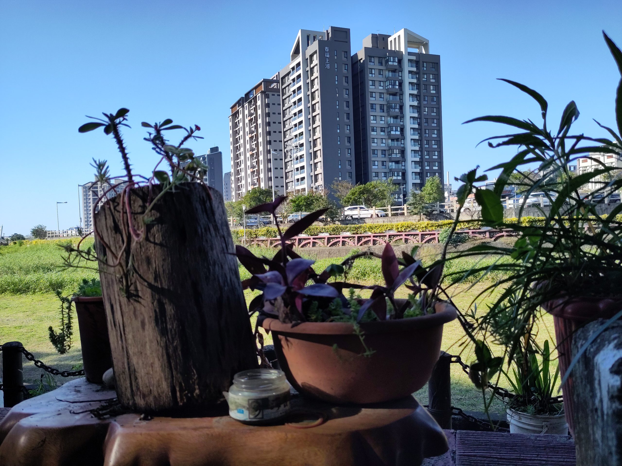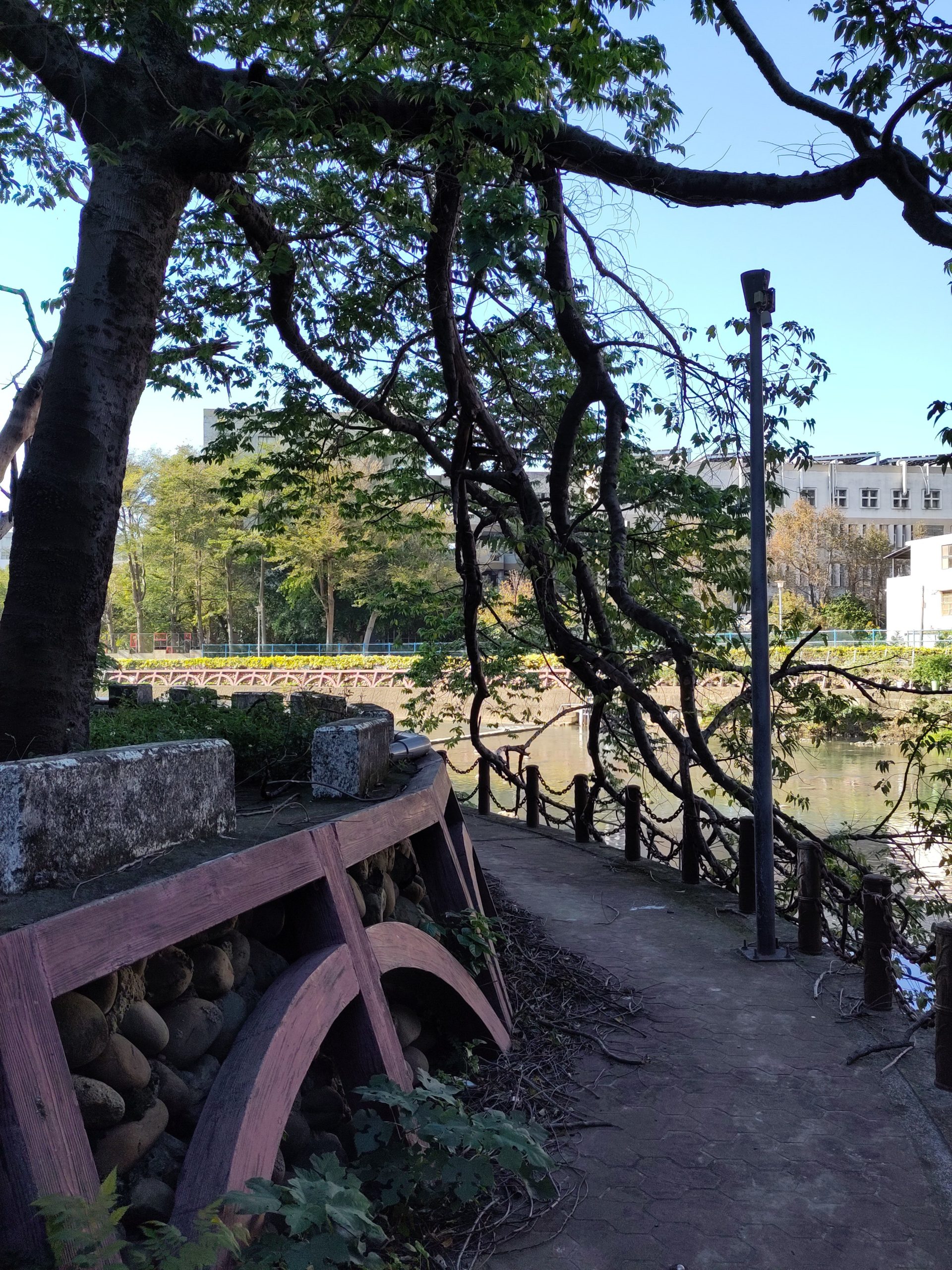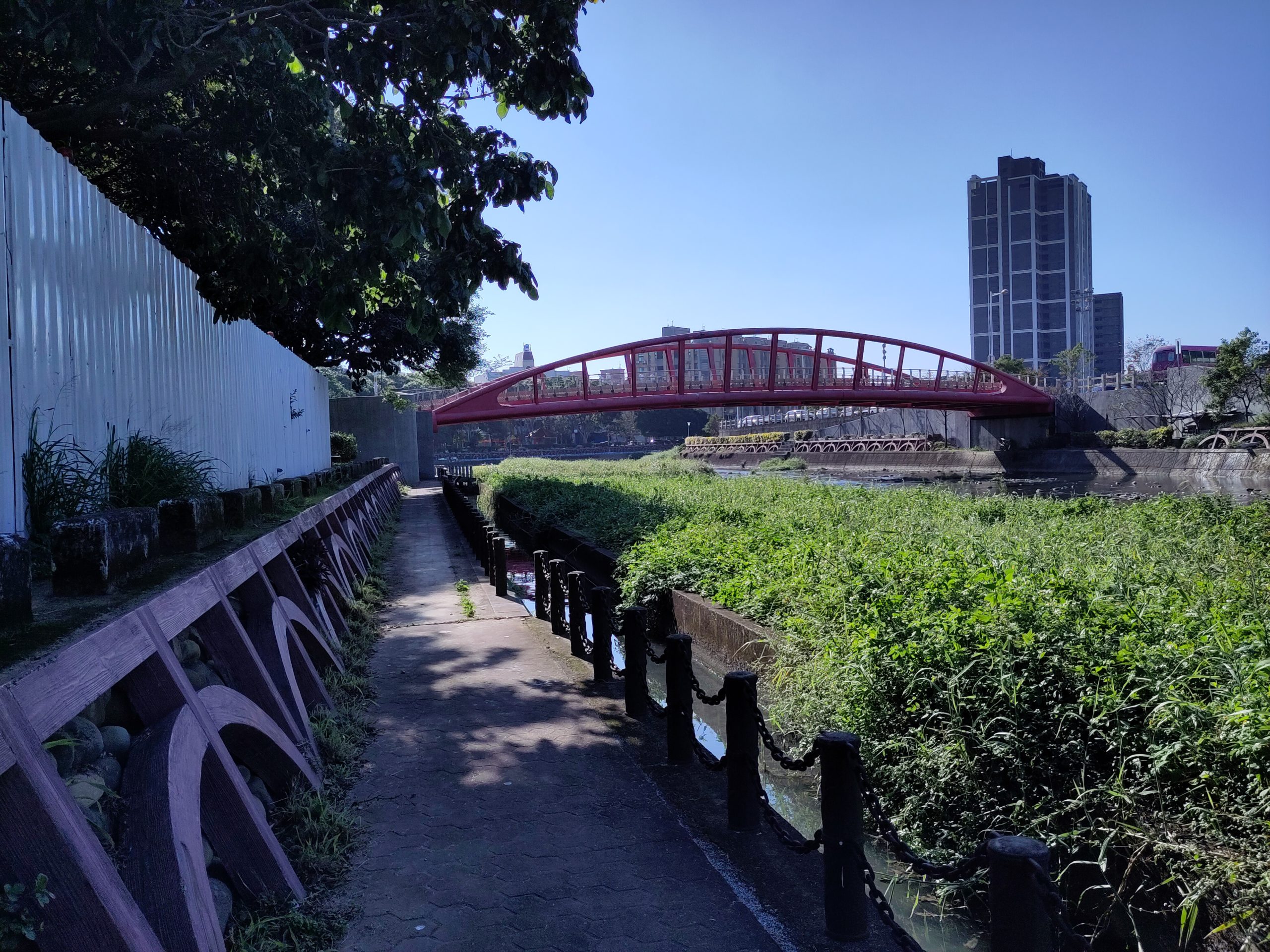 After passing under a bright red bridge I came to what can best be described as a lawn. Right there in the middle of the river is a plot of land with grass growing on it. I had planned to turn back after the bridge but this was odd enough to pique my interest and I decided to keep exploring. It was lucky I did because a short distance down the path from the red bridge is the reason this park ended up on my growing list of strange places in Taiwan: a seemingly random collection of pot plants. There’s every kind of pot you can imagine, from discarded old paint buckets to Styrofoam boxes to glazed ceramic ones, and they’re lined up along both sides of the path. The plants in them are just as varied as the pots, from snake plants to roses and everything in-between. There wouldn’t be anything strange about it in someone’s backyard but here in a public park it feels extremely out of place.