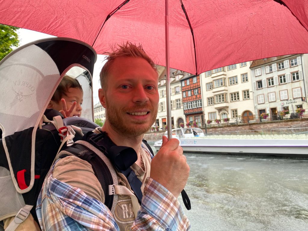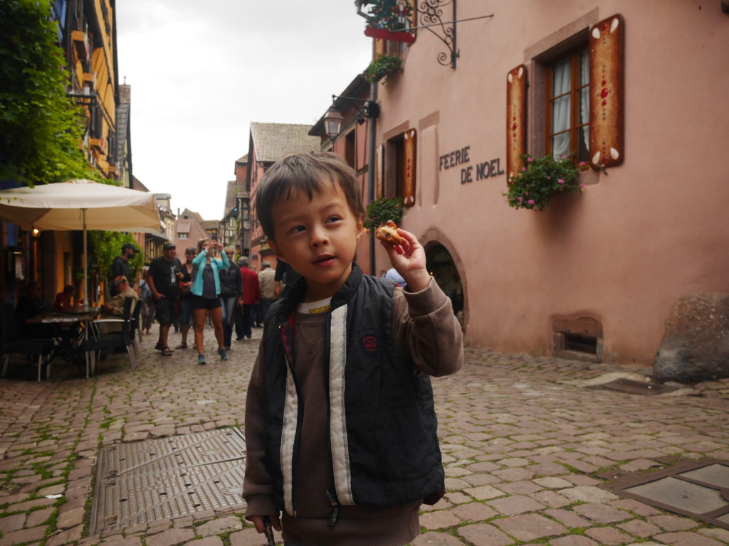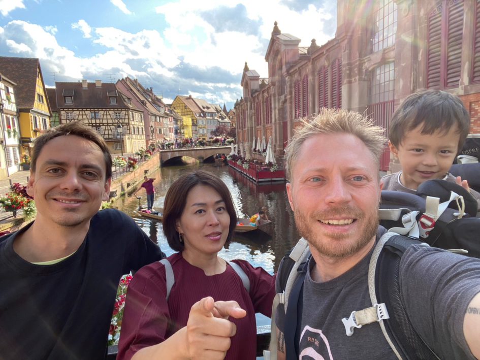 A good friend of mine, Jean, who left Taiwan more than a year ago lives near Strasbourg in north east France, so although the main goal of the trip was to go back to Sweden, we figured it would be a good chance to visit him before heading north. Another friend, Alex and his family drove up from Switzerland while Yini’s friend Naomi and her boyfriend came down from Belgium and we all gathered in Jeans house. It was really great to see all our friends again and we had a lot of fun sitting and chatting at the dinner table. Unfortunately the weather was not on our side so we spent three days sightseeing in the cold and rain (a few glimpses of sun here and there). Tantan wasn’t particularly keen on walking around in the rain looking at old buildings, so I had to carry him for much of the time but that was sort of expected and it worked out pretty well in the end.