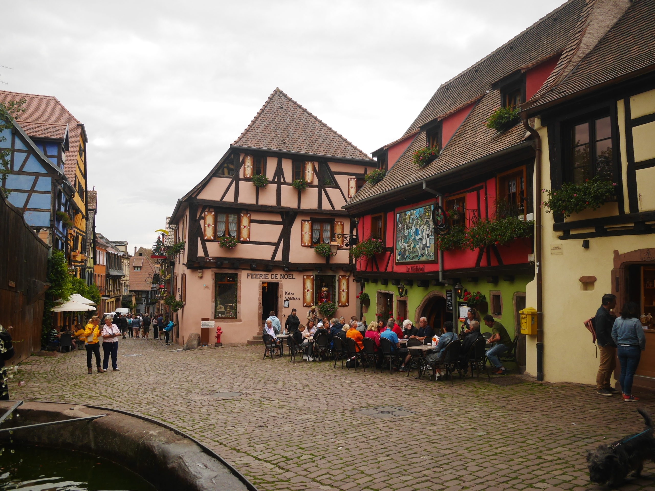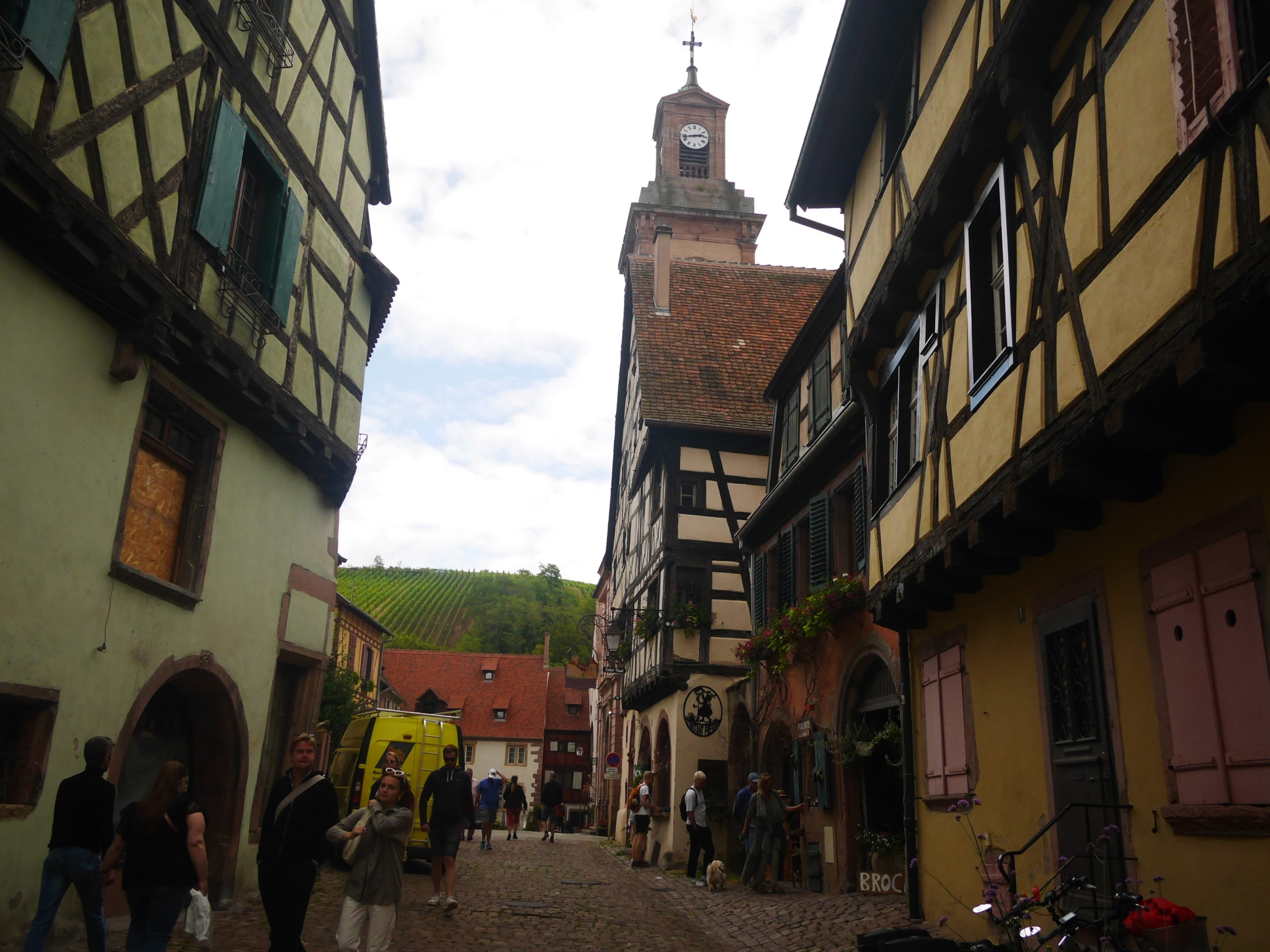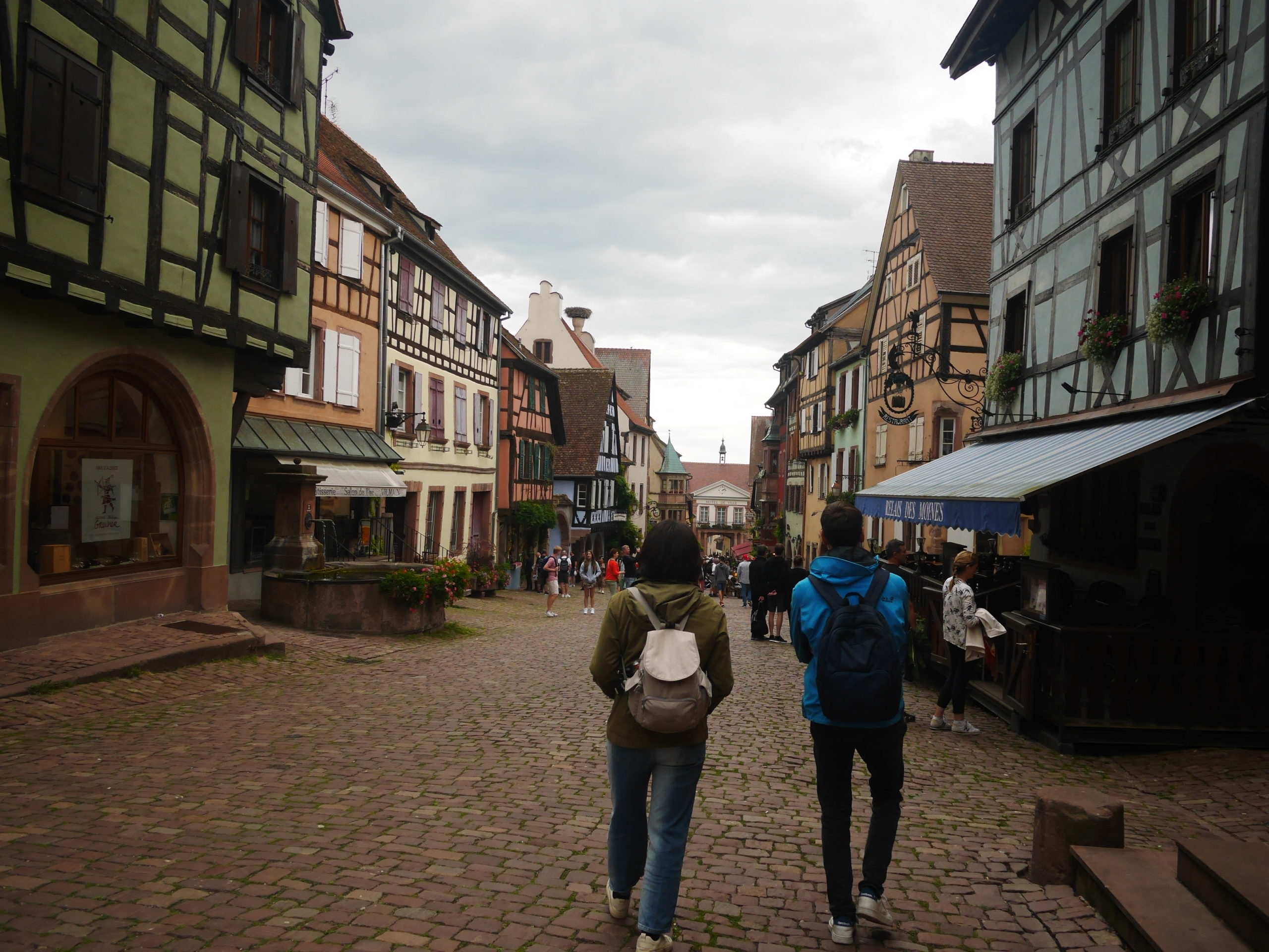 The day after visiting the bunker the weather was slightly better so we went to Colmar and the nearby small town of Riquewihr. Both were very picturesque and pleasant to stroll around in. They are also on something called the Alsace Wine Route, a sort of pilgrimage route for people who enjoy good wine and picturesque views. Neither me nor Yini drink a lot of wine but we had to try one glass, just for the thing of it. I have to admit, sitting in the sun by a small square, drinking a glass of Muscat is a excellent way to spend a couple of hours.