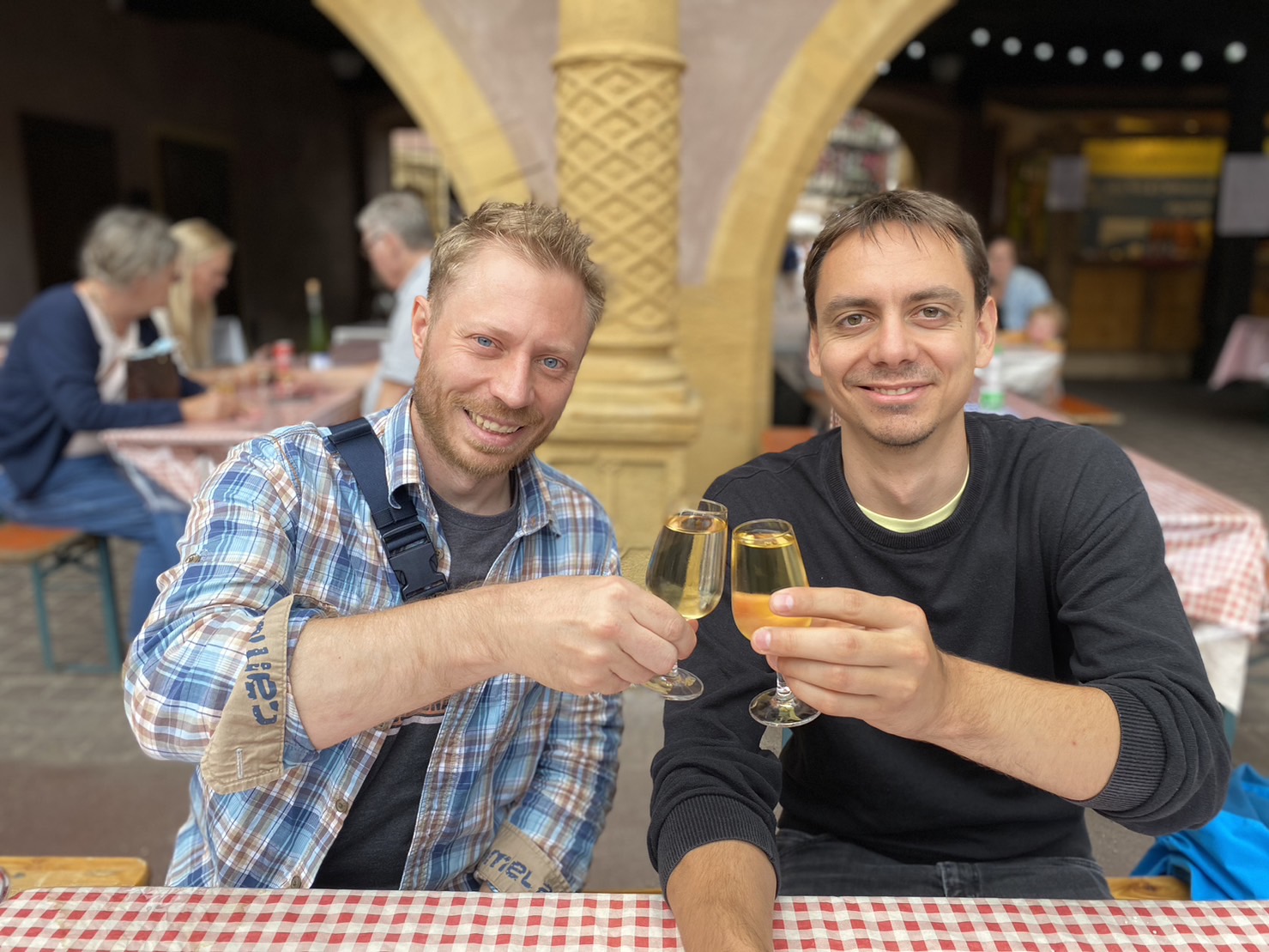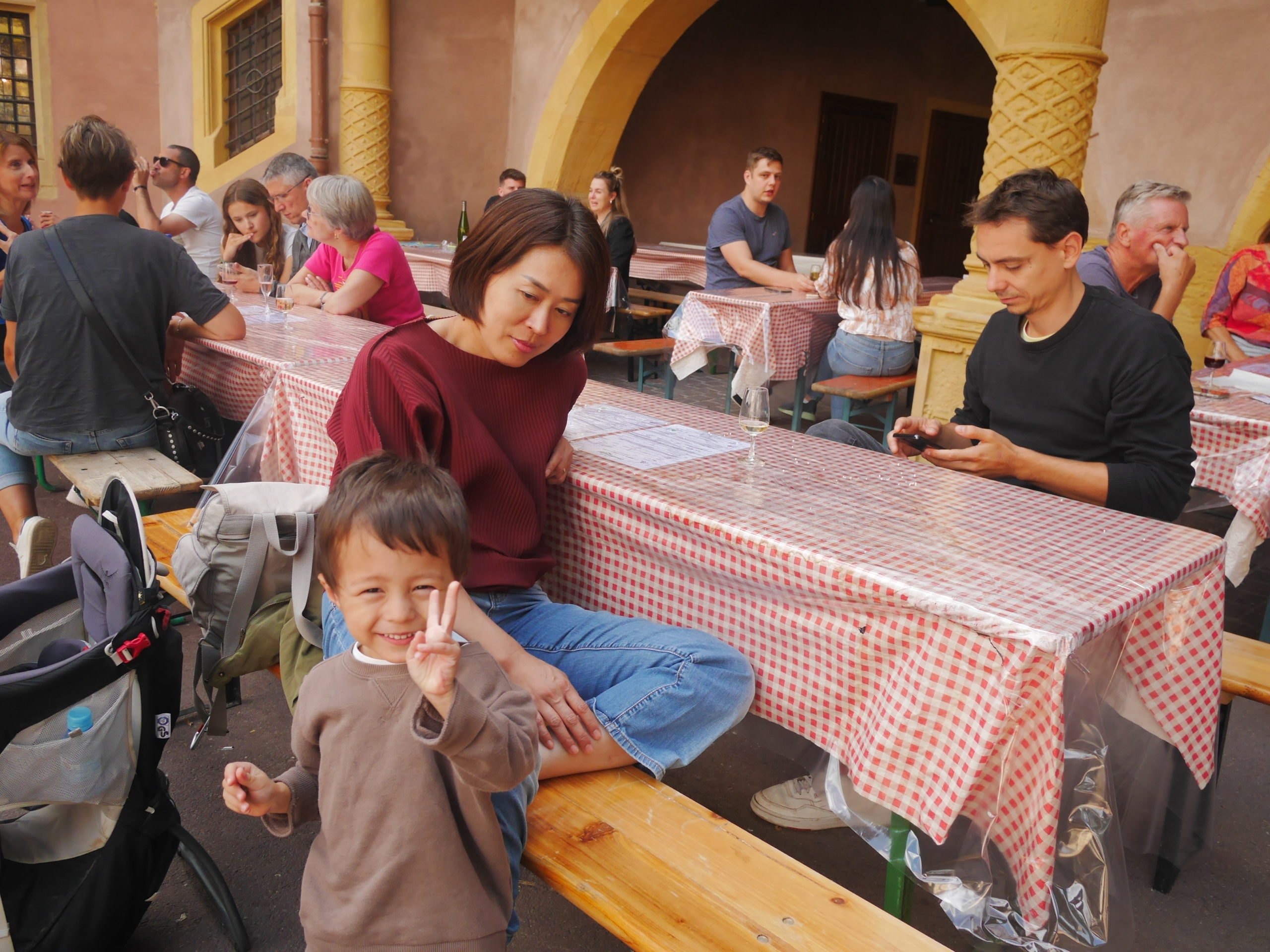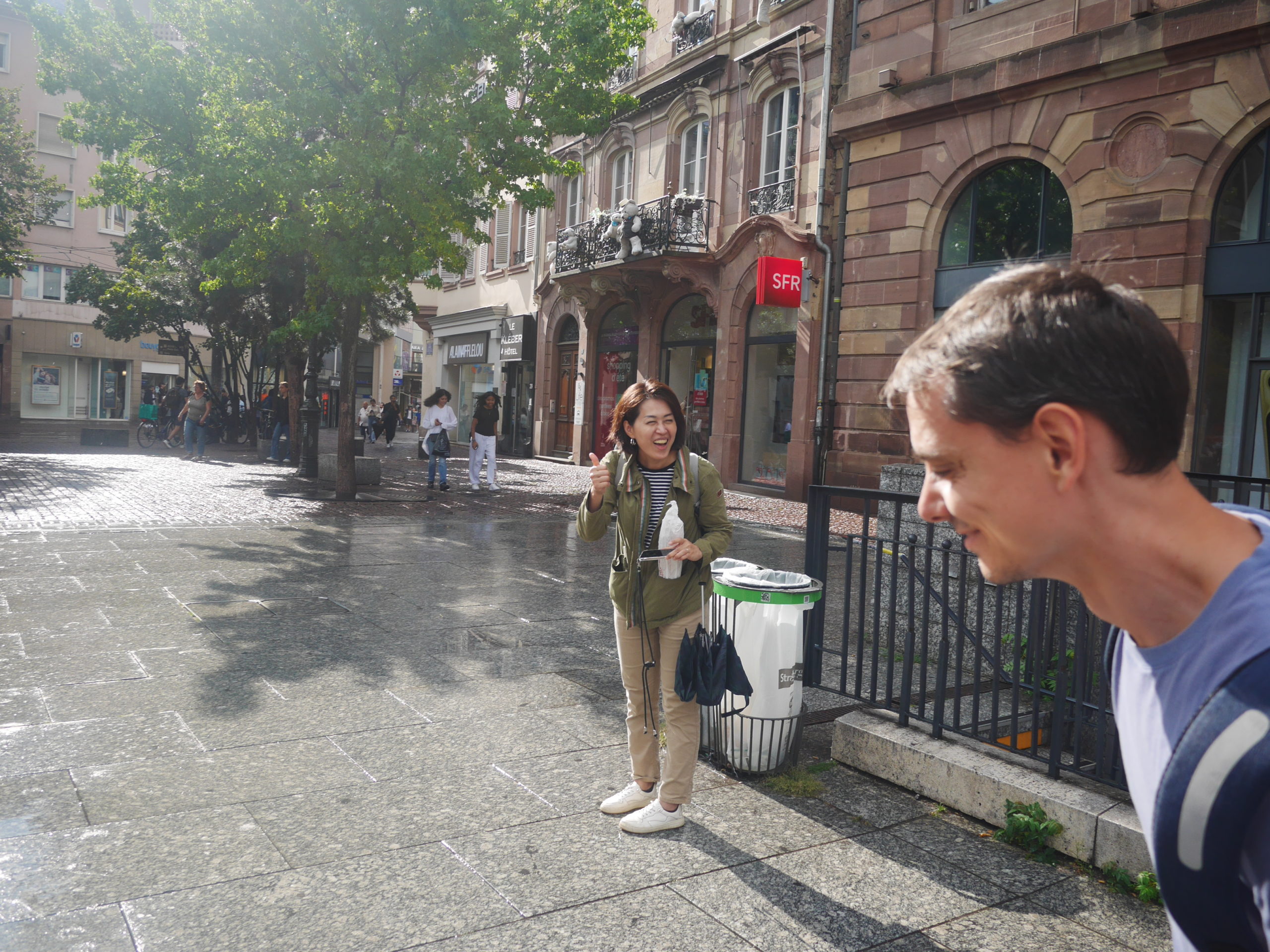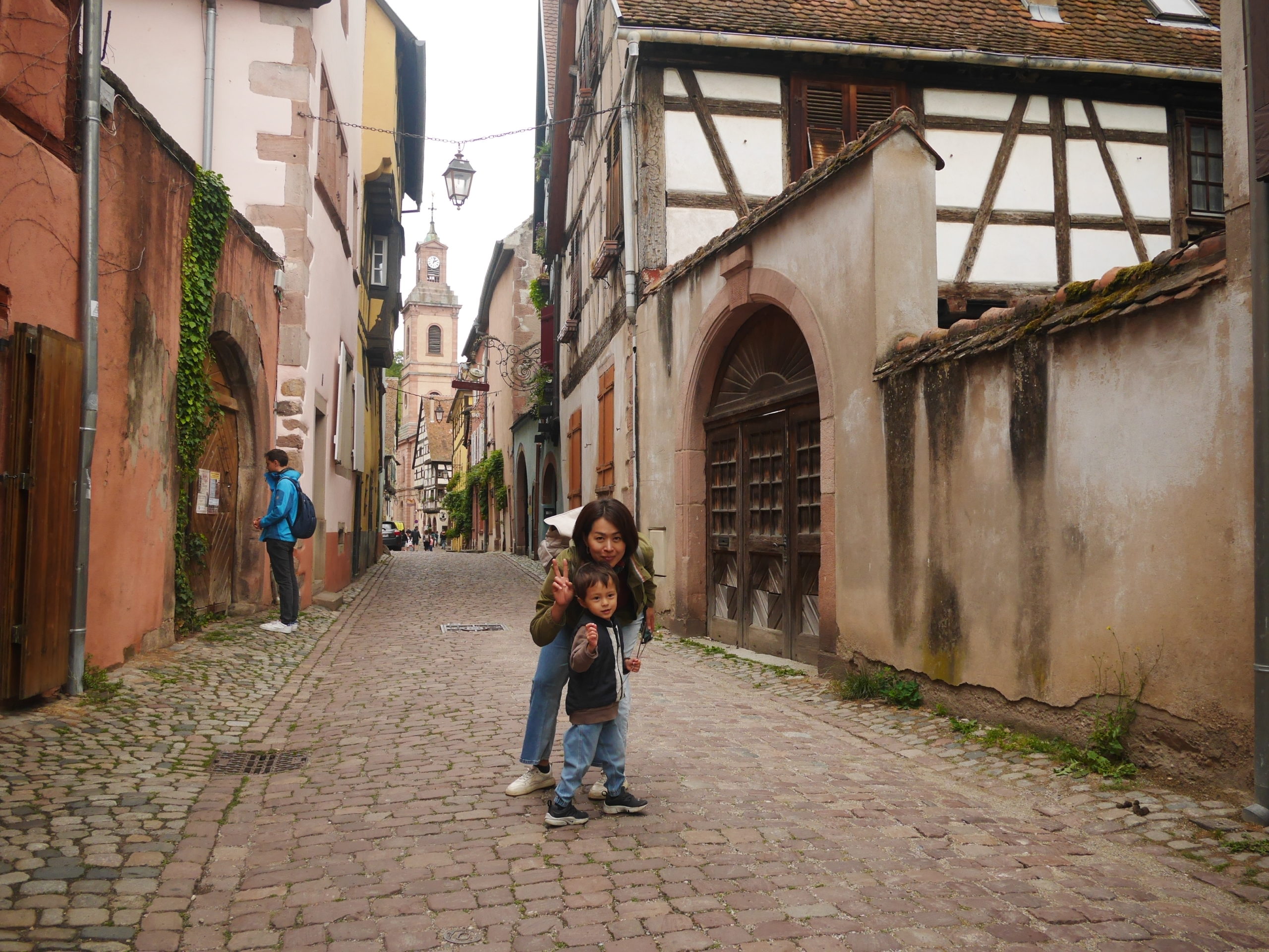 The day after visiting the bunker the weather was slightly better so we went to Colmar and the nearby small town of Riquewihr. Both were very picturesque and pleasant to stroll around in. They are also on something called the Alsace Wine Route, a sort of pilgrimage route for people who enjoy good wine and picturesque views. Neither me nor Yini drink a lot of wine but we had to try one glass, just for the thing of it. I have to admit, sitting in the sun by a small square, drinking a glass of Muscat is a excellent way to spend a couple of hours.