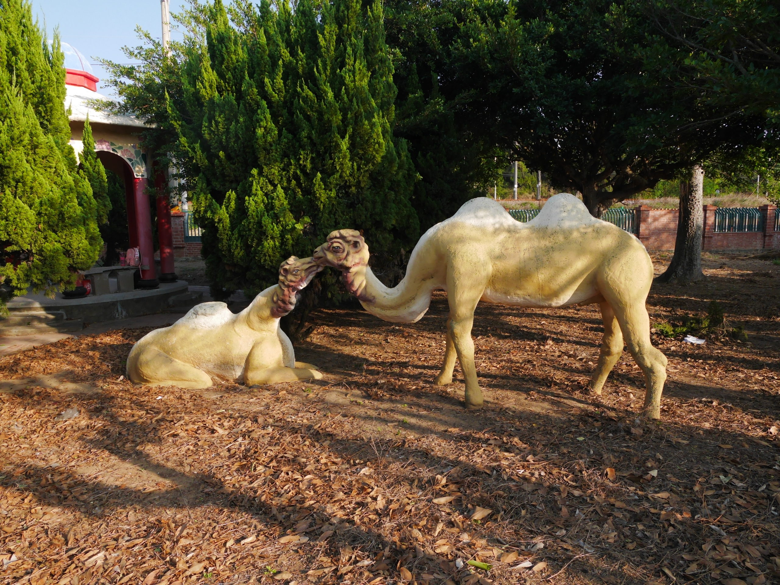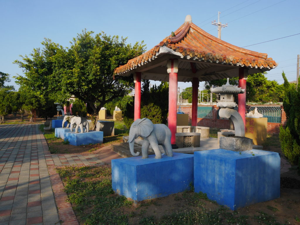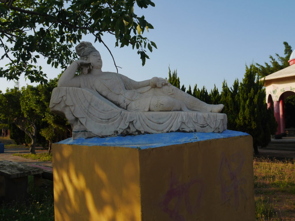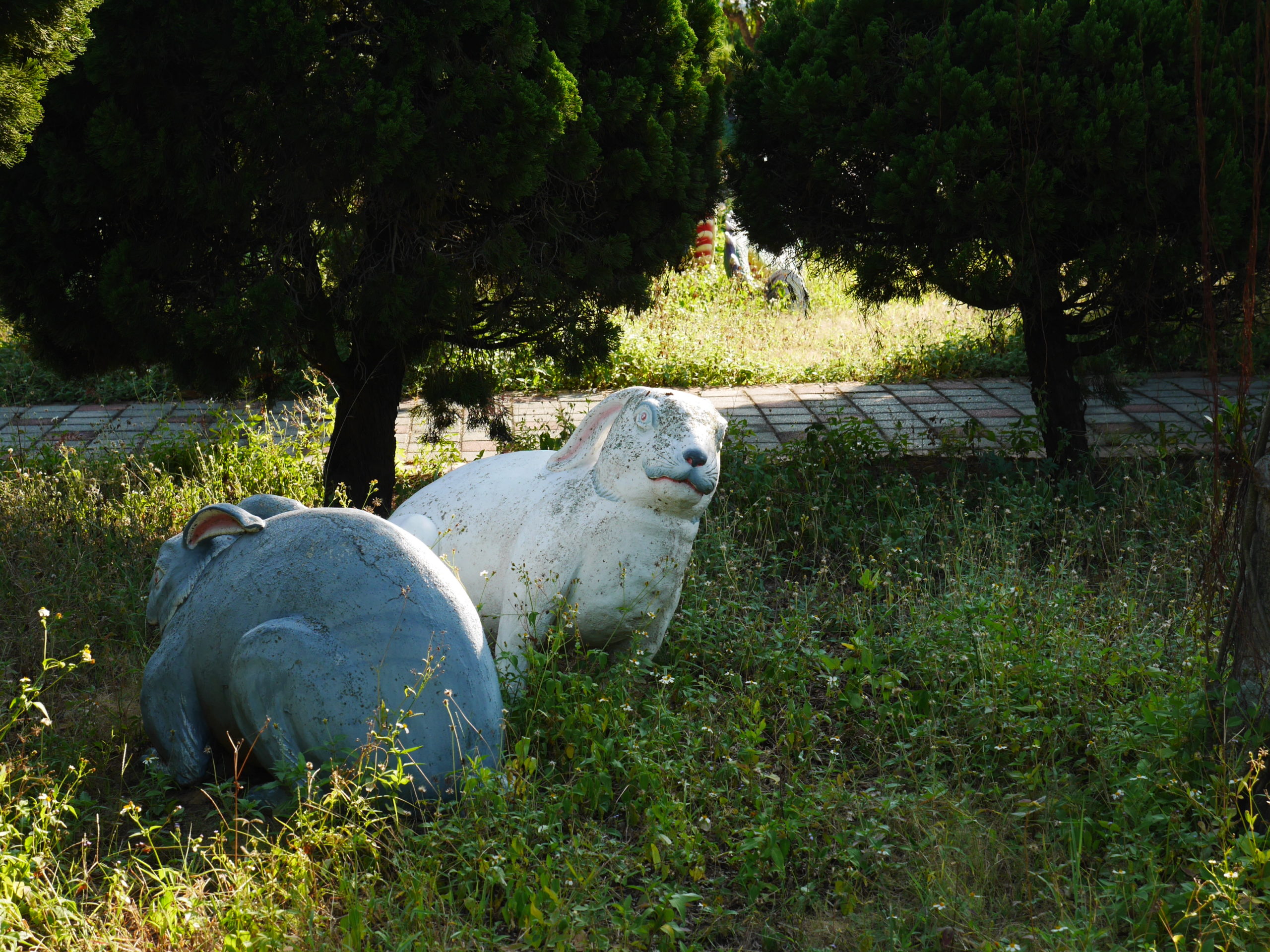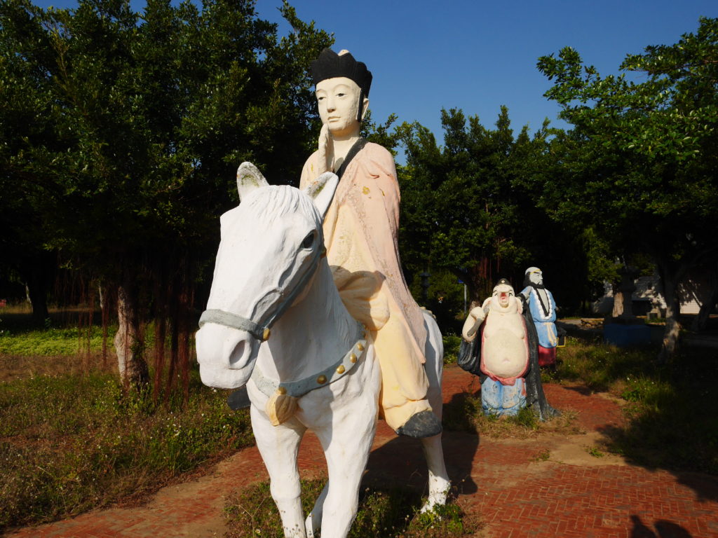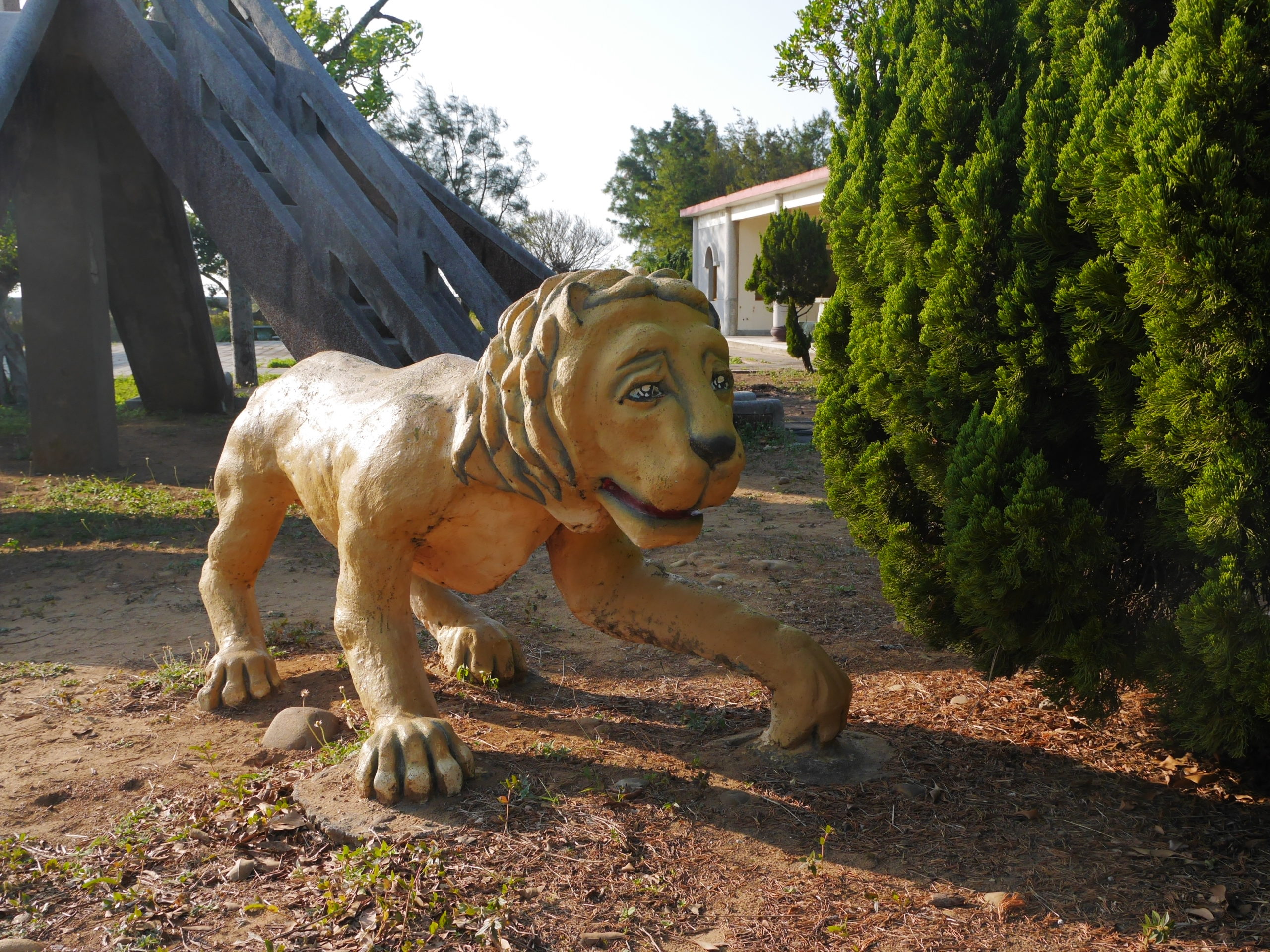 One such place is Qiumaoyuan statue park. As you can see from the map link, it is marked as a tourist spot, but you have to zoom in a fair bit in order for it to show up. There are a couple different aspects that make it really odd and, as you can guess, worth visiting for anyone with even a passing interest in such things. First is that the collection of statues it houses is so incongruous; there’s a wild mix of everything from Buddha to Jesus to animals to political propaganda and anything in between – there’s even a random cowboy for some reason. Second is the low quality of the statues. Many of them have been made with fiber glass, a material which is really not suitable Taiwan’s climate. Moreover, their design is rather sub-par, with many of the them – especially the animals – having a facial expression that makes them look either surprised and/or dumb. Third is that there are a number of temples inside the park that all have the same general size and shape, but are clearly meant for worshiping different gods; sort of “select your preferred religion”. Fourth is the fact that the place is in a state of neglect. Some parts of it are overgrown with weeds, several of the statues are cracked and broken, and there’s a general feeling about the whole place that they do just enough maintenance to keep it from falling into ruin completely. At this point I think it’s time to show some pictures so you can see for yourself.