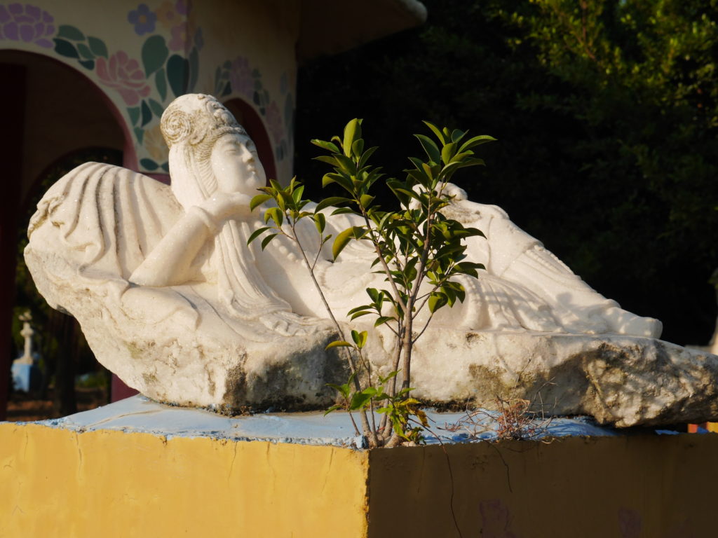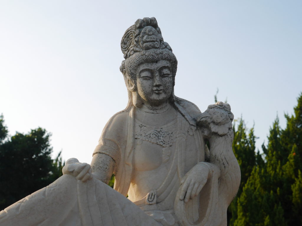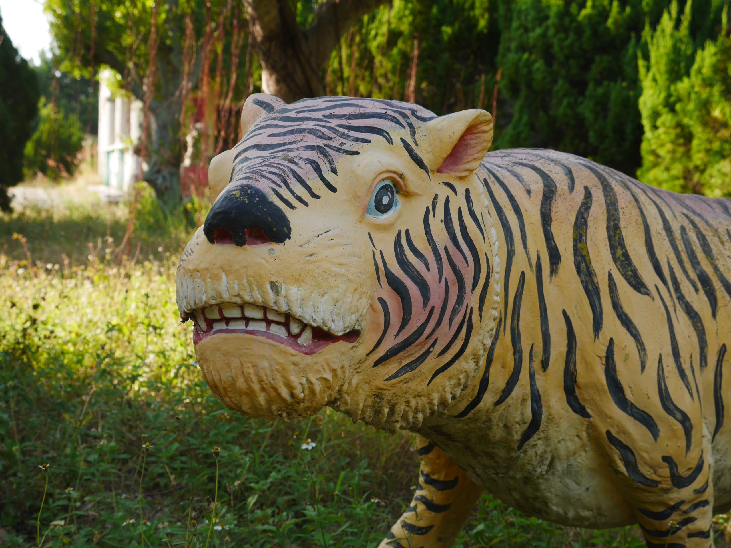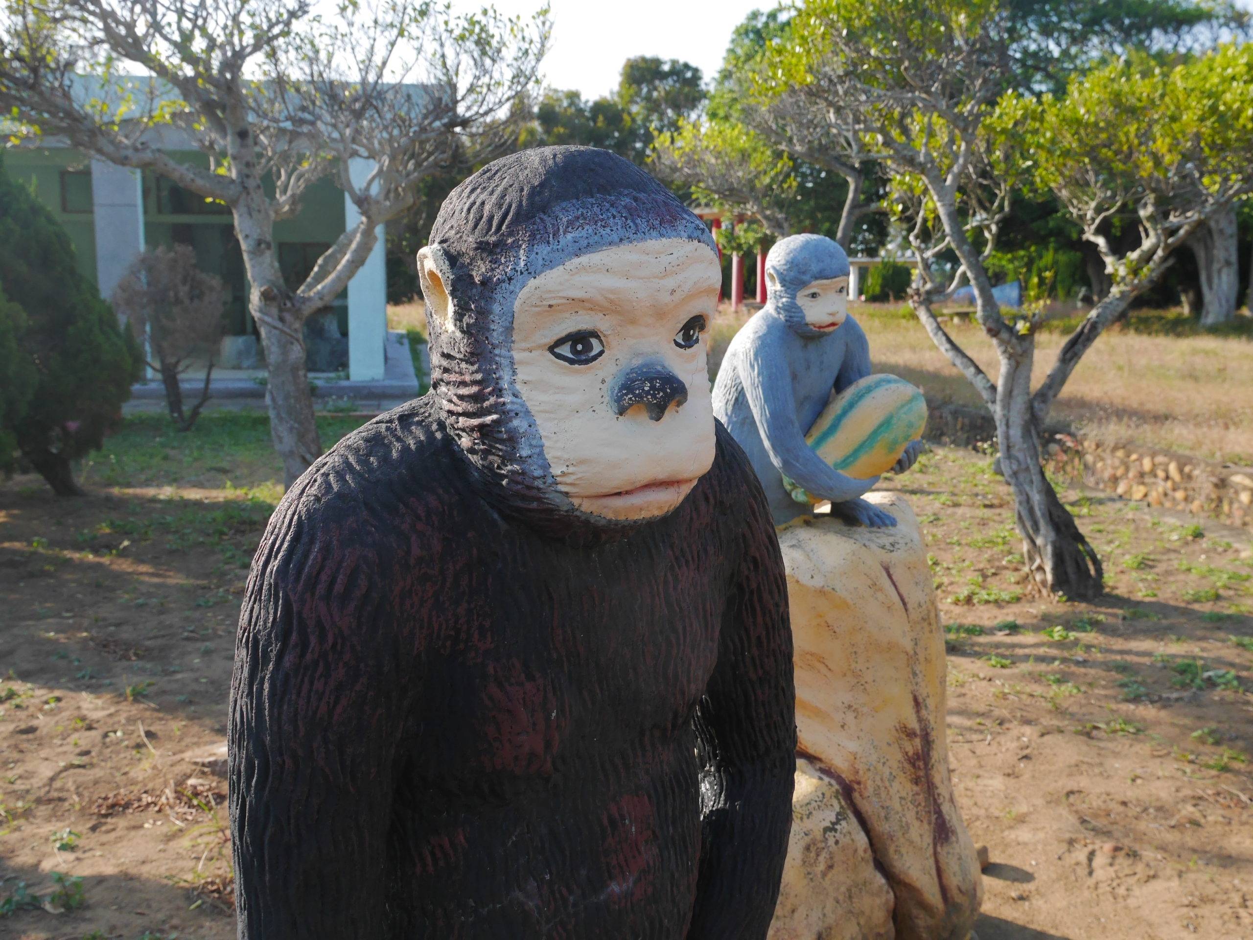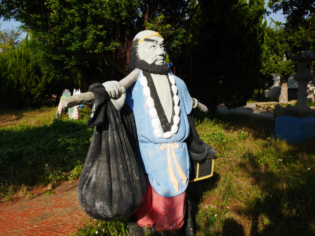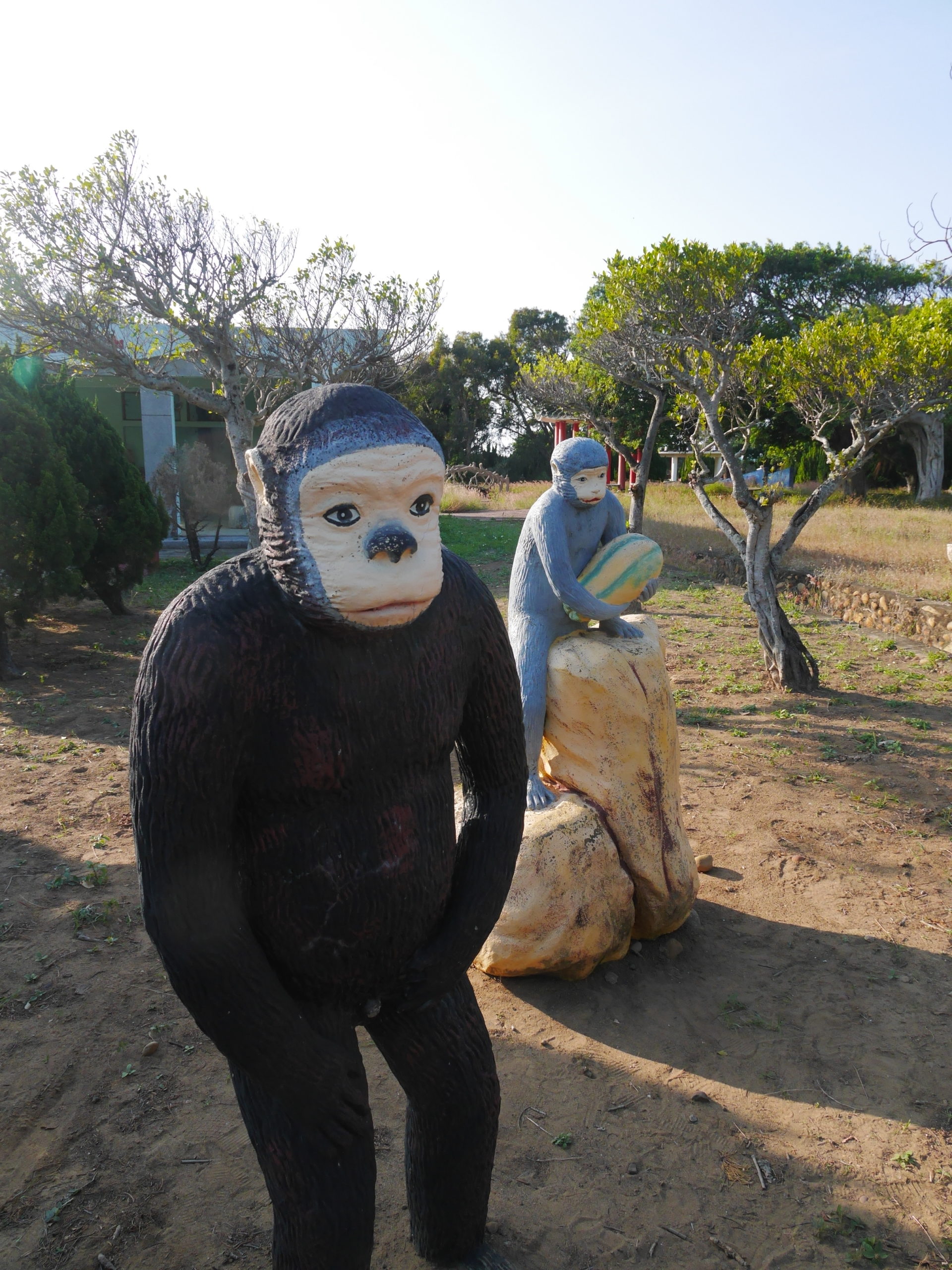 One such place is Qiumaoyuan statue park. As you can see from the map link, it is marked as a tourist spot, but you have to zoom in a fair bit in order for it to show up. There are a couple different aspects that make it really odd and, as you can guess, worth visiting for anyone with even a passing interest in such things. First is that the collection of statues it houses is so incongruous; there’s a wild mix of everything from Buddha to Jesus to animals to political propaganda and anything in between – there’s even a random cowboy for some reason. Second is the low quality of the statues. Many of them have been made with fiber glass, a material which is really not suitable Taiwan’s climate. Moreover, their design is rather sub-par, with many of the them – especially the animals – having a facial expression that makes them look either surprised and/or dumb. Third is that there are a number of temples inside the park that all have the same general size and shape, but are clearly meant for worshiping different gods; sort of “select your preferred religion”. Fourth is the fact that the place is in a state of neglect. Some parts of it are overgrown with weeds, several of the statues are cracked and broken, and there’s a general feeling about the whole place that they do just enough maintenance to keep it from falling into ruin completely. At this point I think it’s time to show some pictures so you can see for yourself.