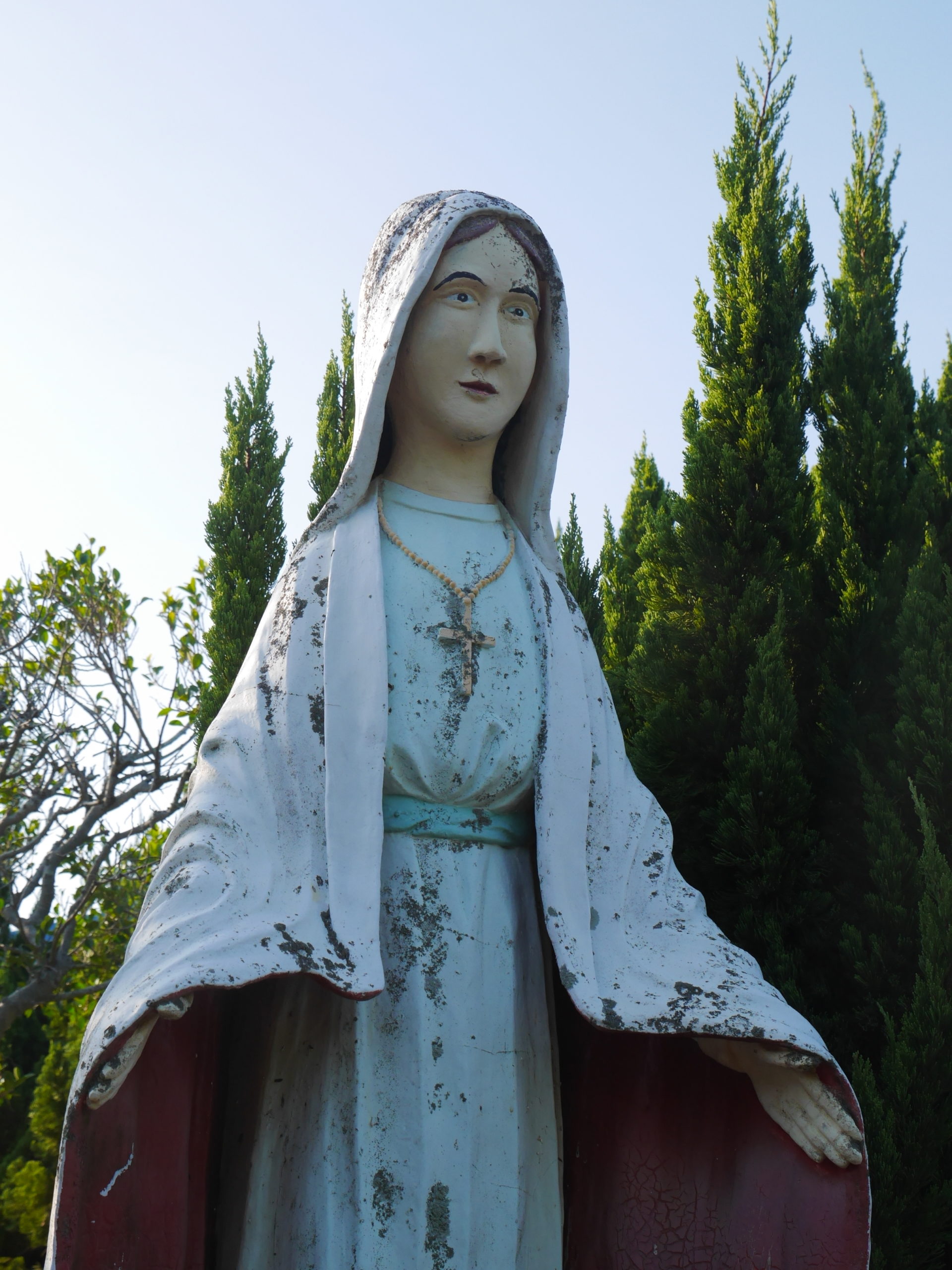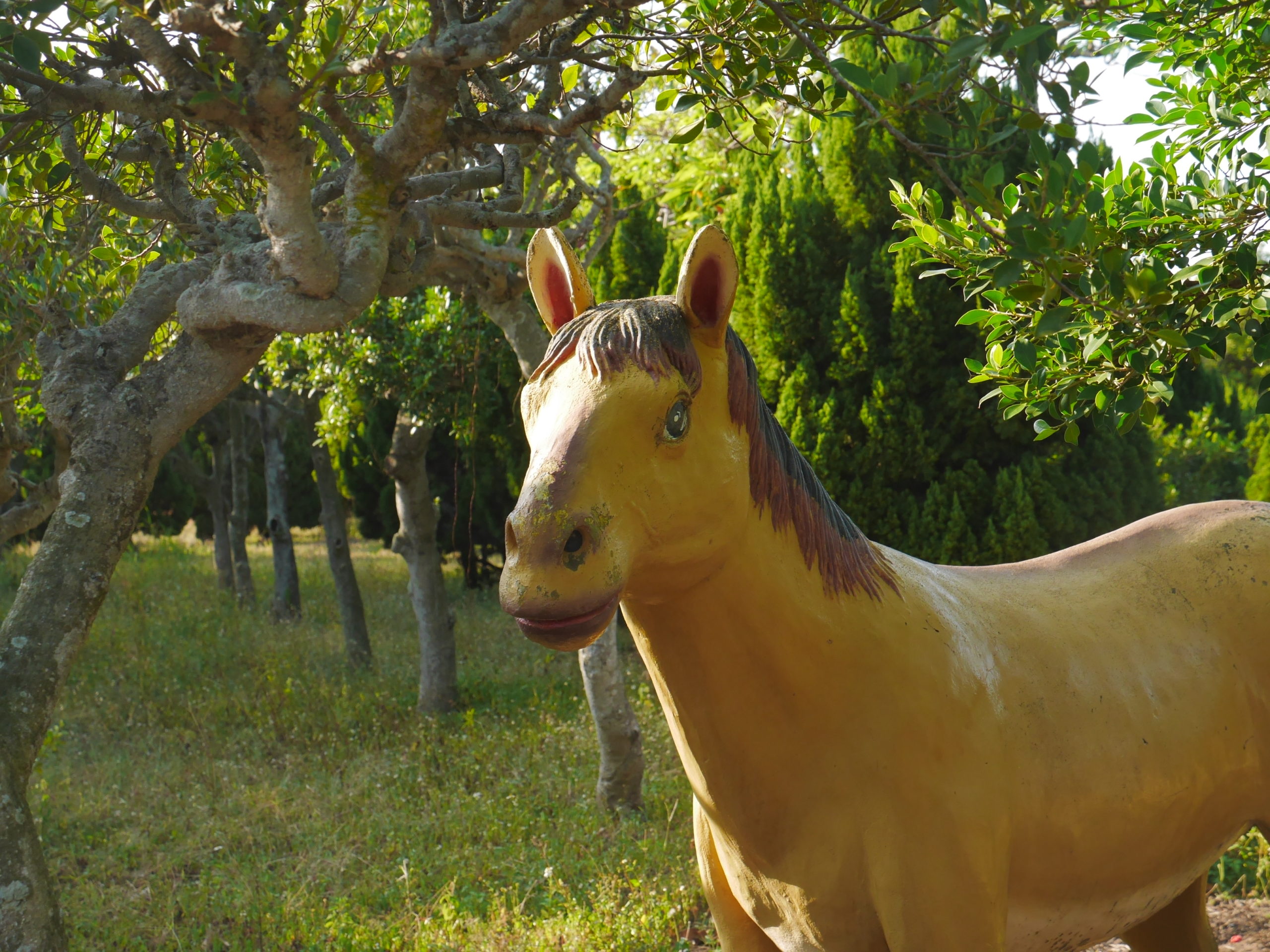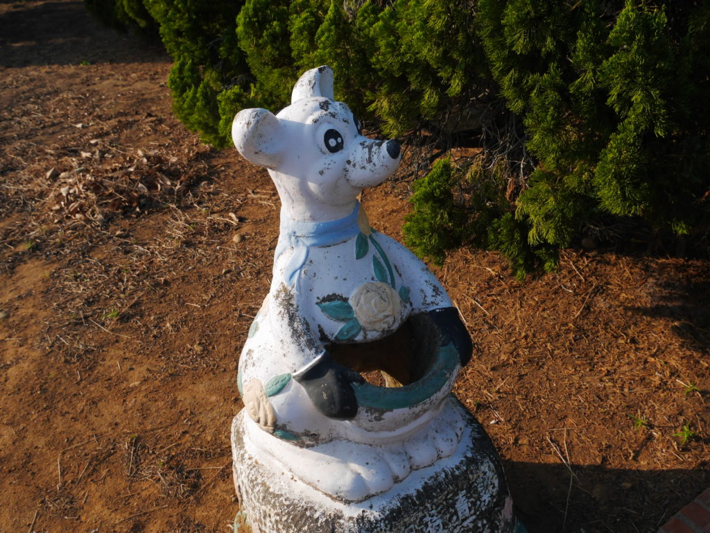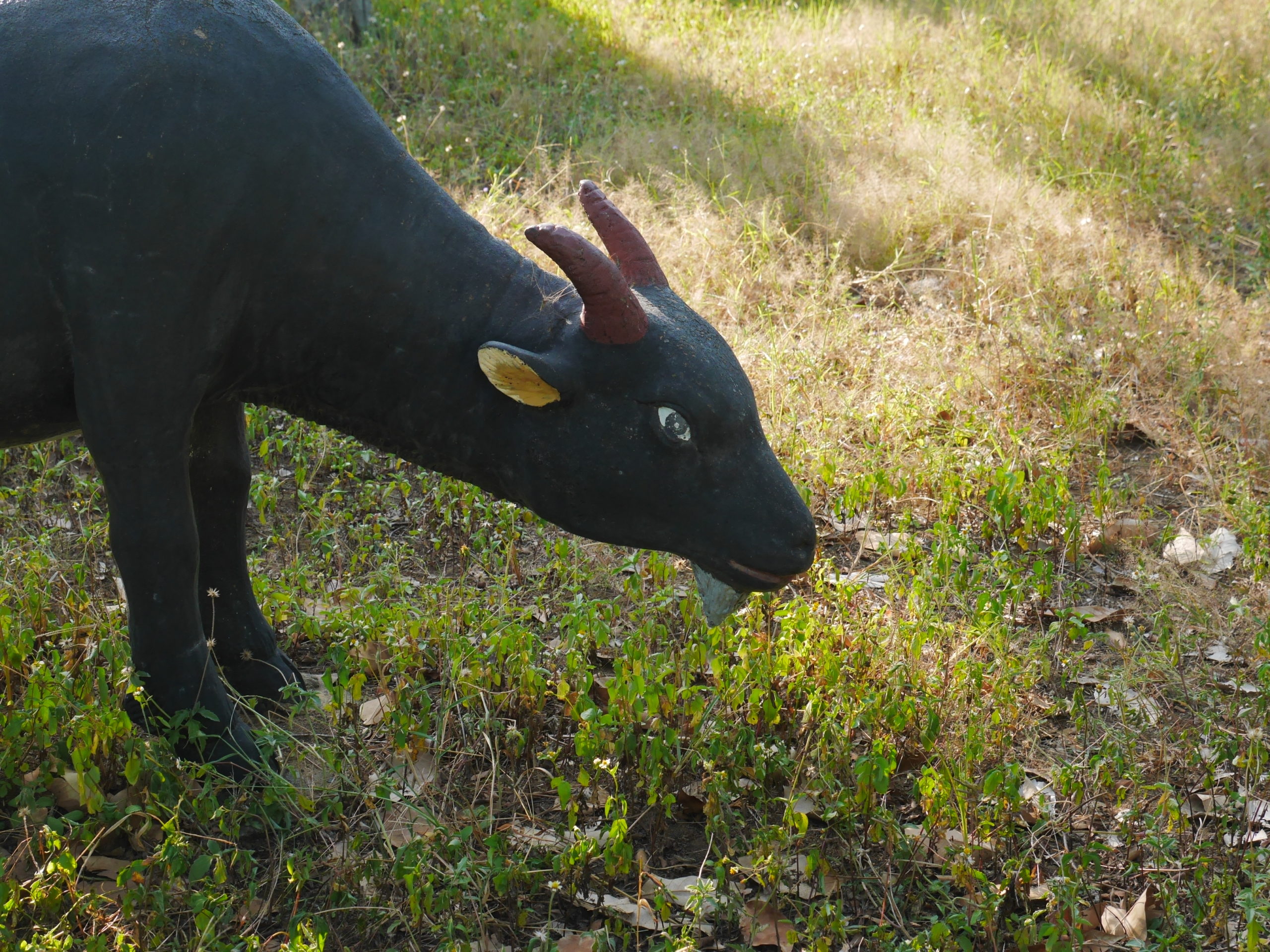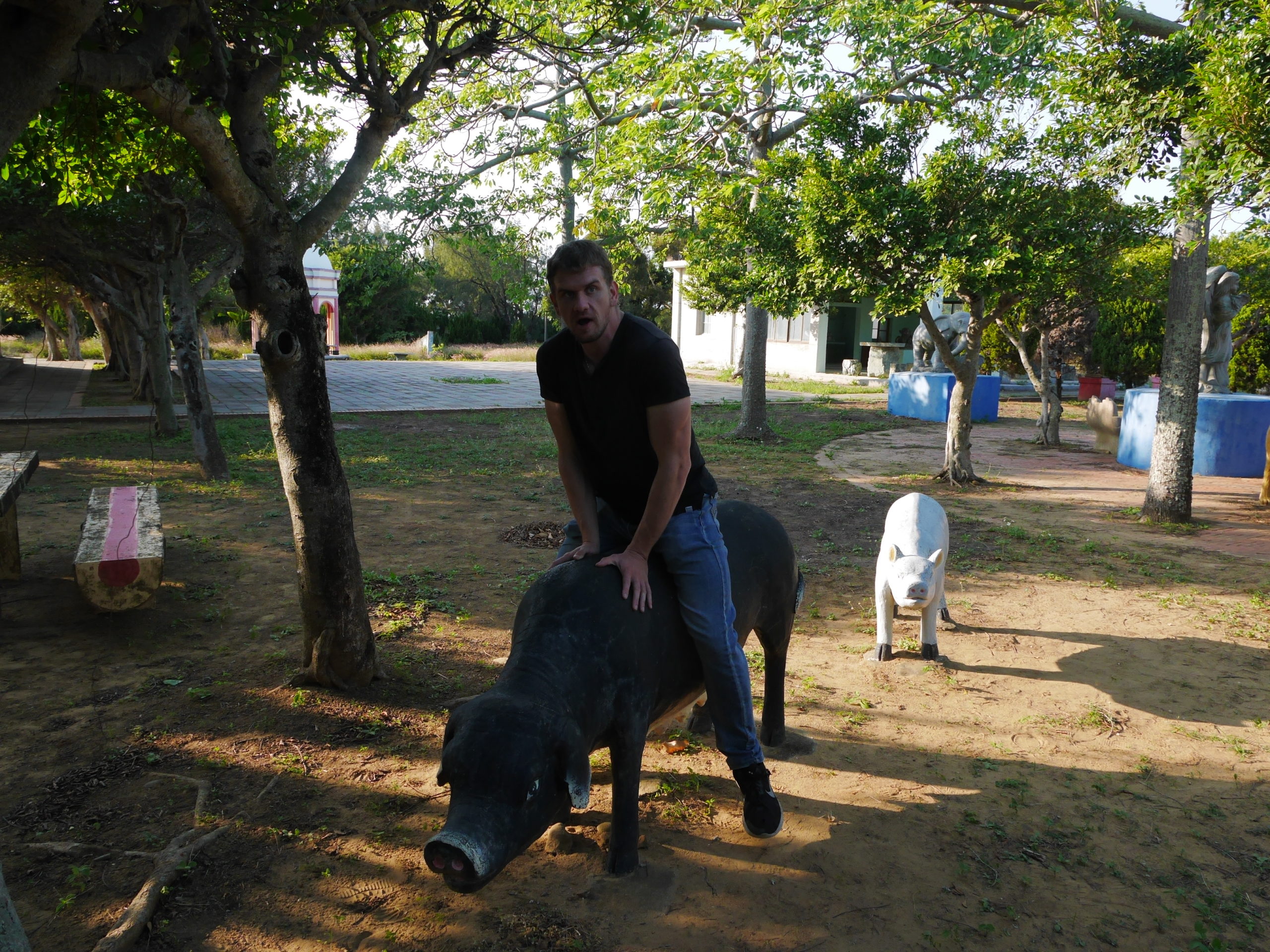 One such place is Qiumaoyuan statue park. As you can see from the map link, it is marked as a tourist spot, but you have to zoom in a fair bit in order for it to show up. There are a couple different aspects that make it really odd and, as you can guess, worth visiting for anyone with even a passing interest in such things. First is that the collection of statues it houses is so incongruous; there’s a wild mix of everything from Buddha to Jesus to animals to political propaganda and anything in between – there’s even a random cowboy for some reason. Second is the low quality of the statues. Many of them have been made with fiber glass, a material which is really not suitable Taiwan’s climate. Moreover, their design is rather sub-par, with many of the them – especially the animals – having a facial expression that makes them look either surprised and/or dumb. Third is that there are a number of temples inside the park that all have the same general size and shape, but are clearly meant for worshiping different gods; sort of “select your preferred religion”. Fourth is the fact that the place is in a state of neglect. Some parts of it are overgrown with weeds, several of the statues are cracked and broken, and there’s a general feeling about the whole place that they do just enough maintenance to keep it from falling into ruin completely. At this point I think it’s time to show some pictures so you can see for yourself.