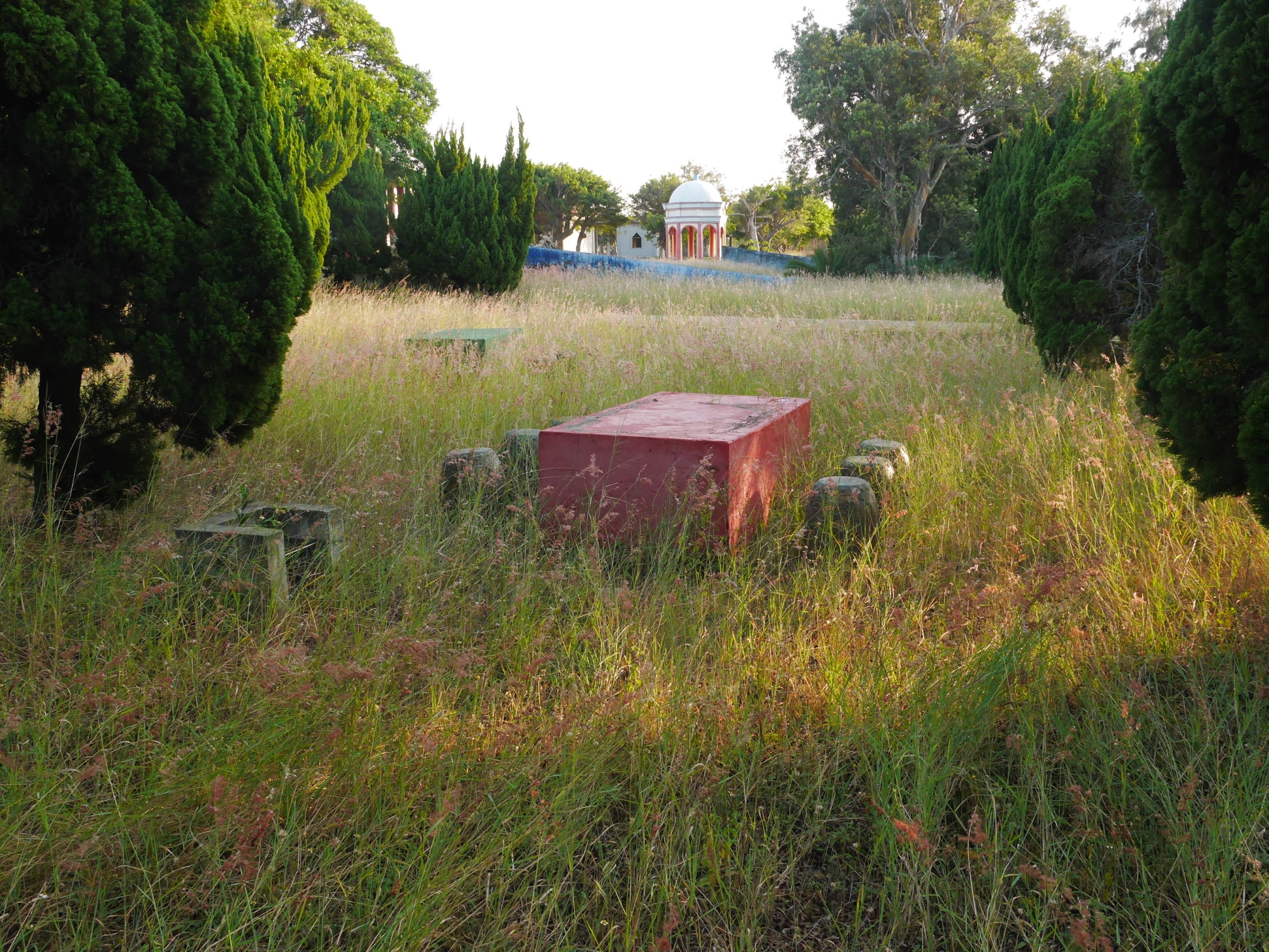 At the very end of the park is this half-globe domed roof pavilion. It is surrounded by a bunch of the amusement park reject statues.